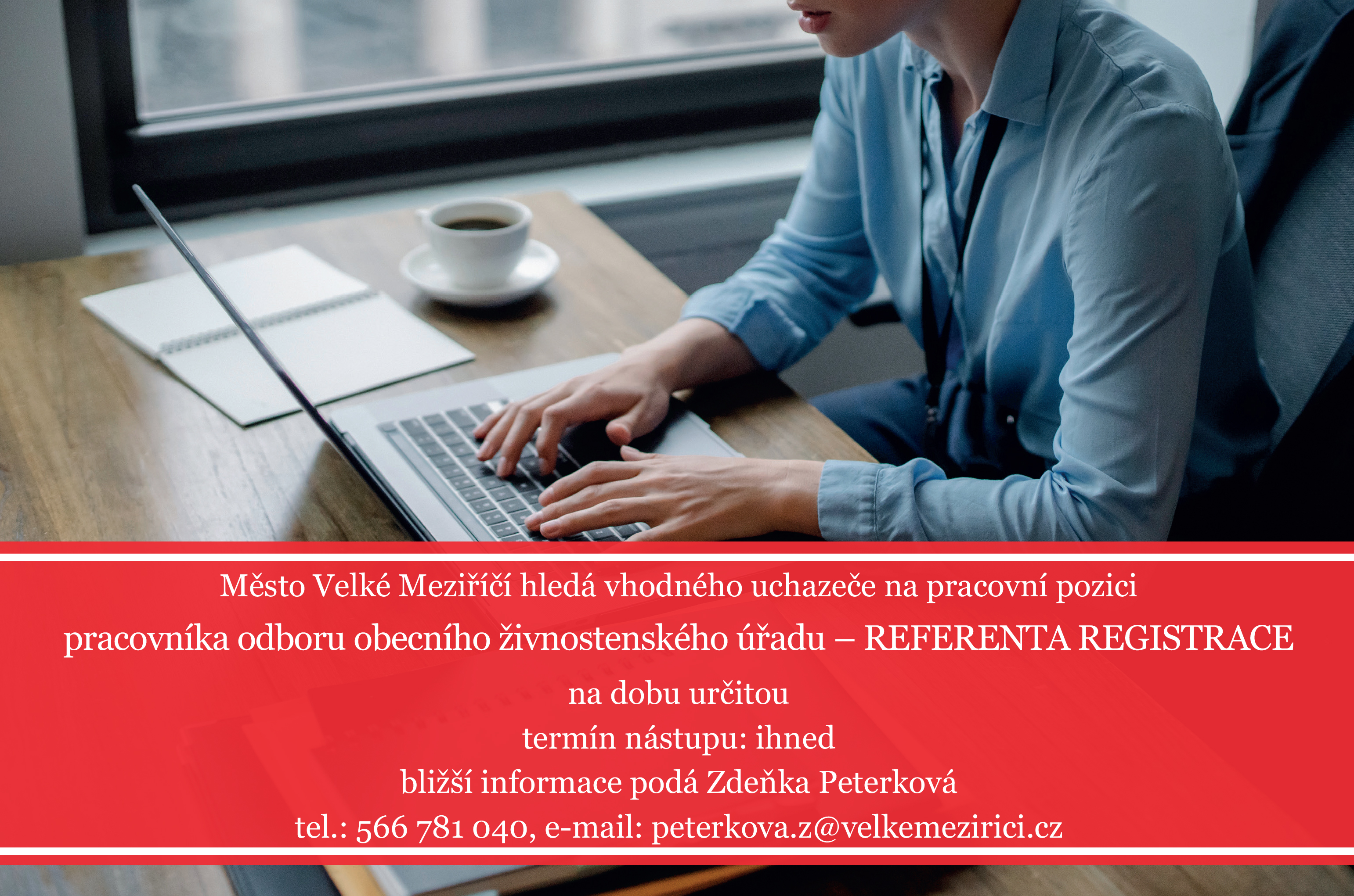 Tajemník Městského úřadu Velké Meziříčí vyhlašuje výběrové řízení na pozici pracovníka odboru obecního živnostenského úřadu – referenta registrace.