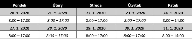 Provozní doba finančních úřadů od 20. 1. do 31. 1. 2020:
