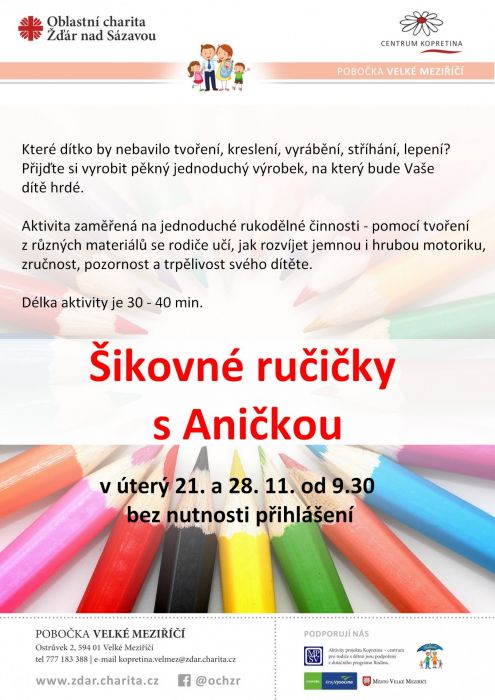 Aktivita zaměřená na jednoduché rukodělné činnosti. Rodiče se učí, jak rozvíjet jemnou i hrubou motoriku, zručnost, pozornost a trpělivost svého dítěte.