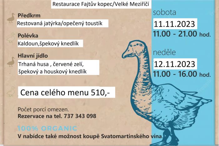 Všichni jste srdečně zváni na Svatomartinské posezení v sobotu 11.11. od 11 do 21 hod. a neděli 12.11. od 11 do 16 hod.