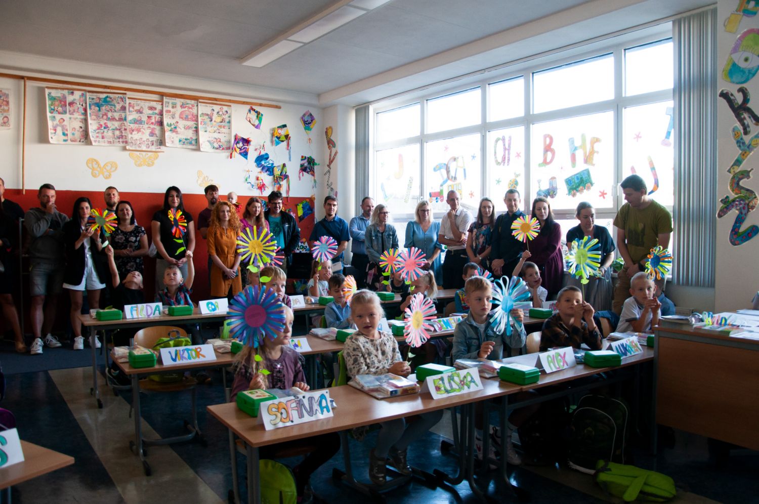 Na Základní škole Oslavická vítala dvě první třídy ředitelka školy Eva Bednářová, ke které se připojil starosta města Alexandros Kaminaras a krajská koordinátorka BESIPu Veronika Vošická Buráňová. Všichni dětem přáli, aby byla jejich minimálně devítiletá školní cesta úspěšná a bavila je.