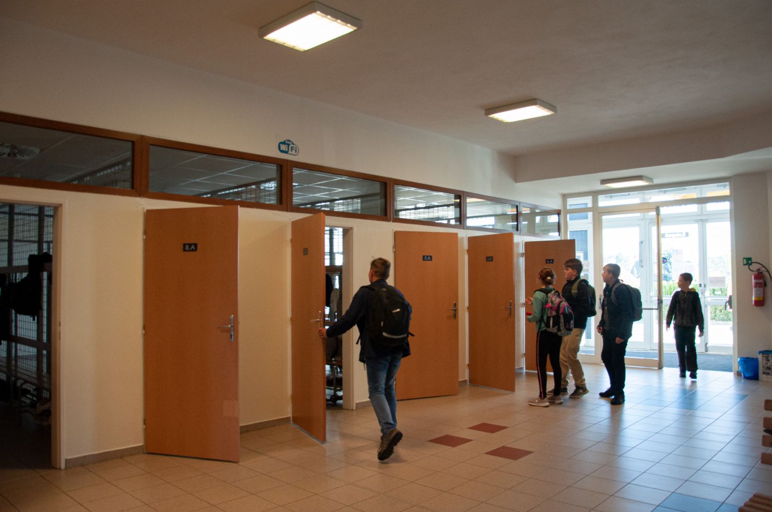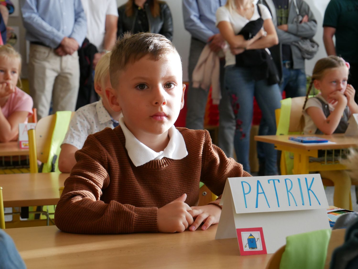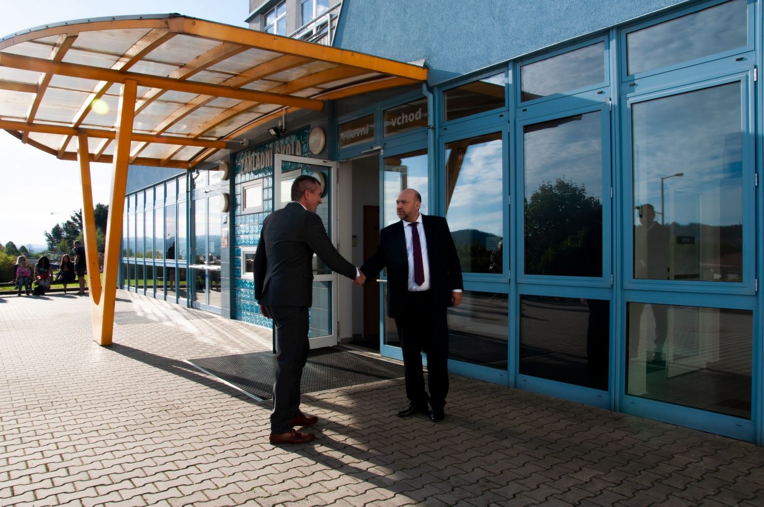Prvňáčky na Základní škole Školní (ZŠ Školní) přivítal ředitel školy Petr Blažek spolu s radním města Ivo Šulcem. Oba dětem popřáli mnoho úspěchů, a rodičům zase pevné nervy. Pan ředitel dětem slíbil, že se přijde přibližně za měsíc podívat do některé z jejich vyučovacích hodin a zkontroluje, jak se pilně učí.