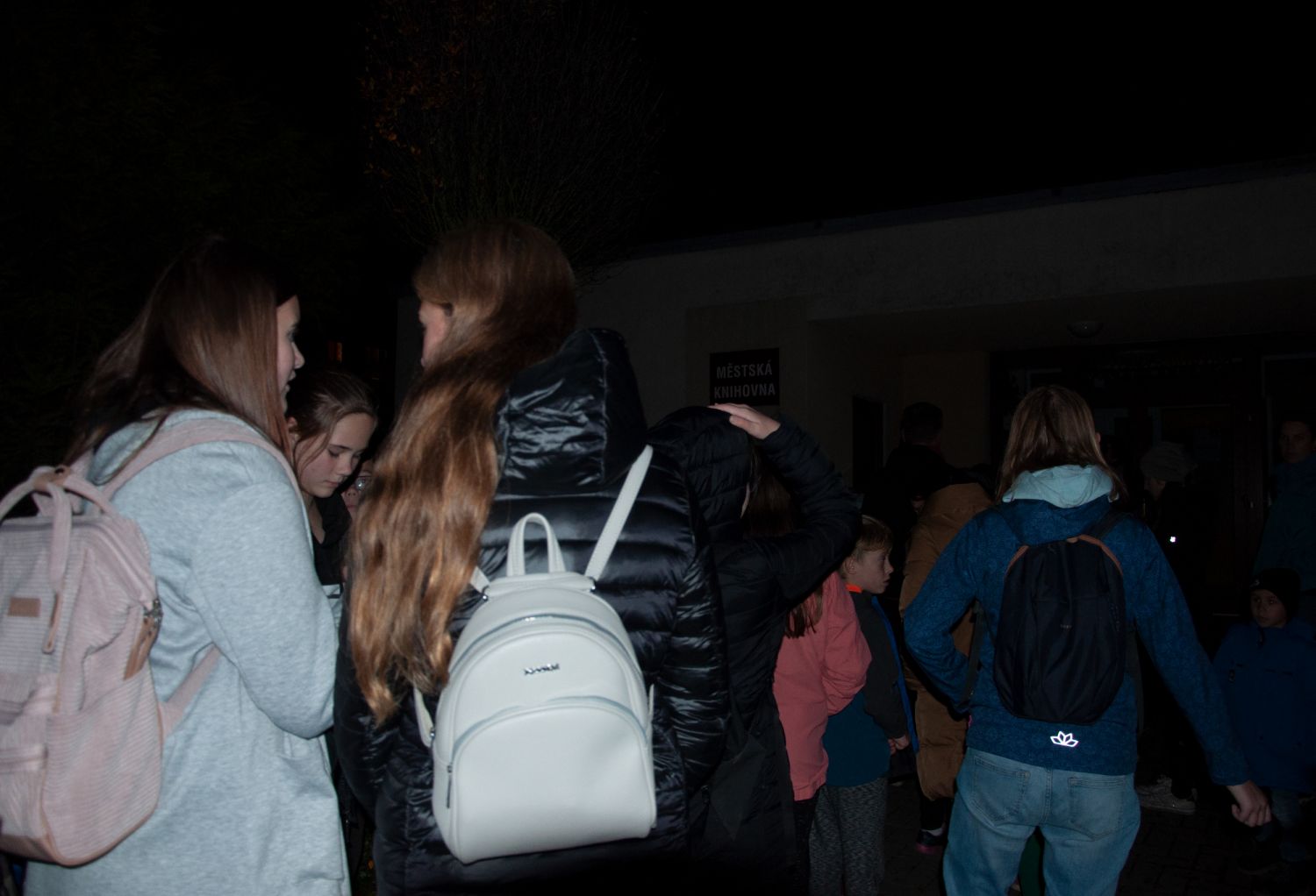 Krátce před sedmou hodinou večerní se před budovou MK shromáždil veliký dav nadšenců. Ti se již nemohli dočkat až strašidelná cesta, kterou si pro ně připravila ředitelka knihovny Ivana Vaňková se svými pomocníky, započne. Čekalo je sbírání zlatých peněz, zkouška paměti nebo například úkol související s kreslením.