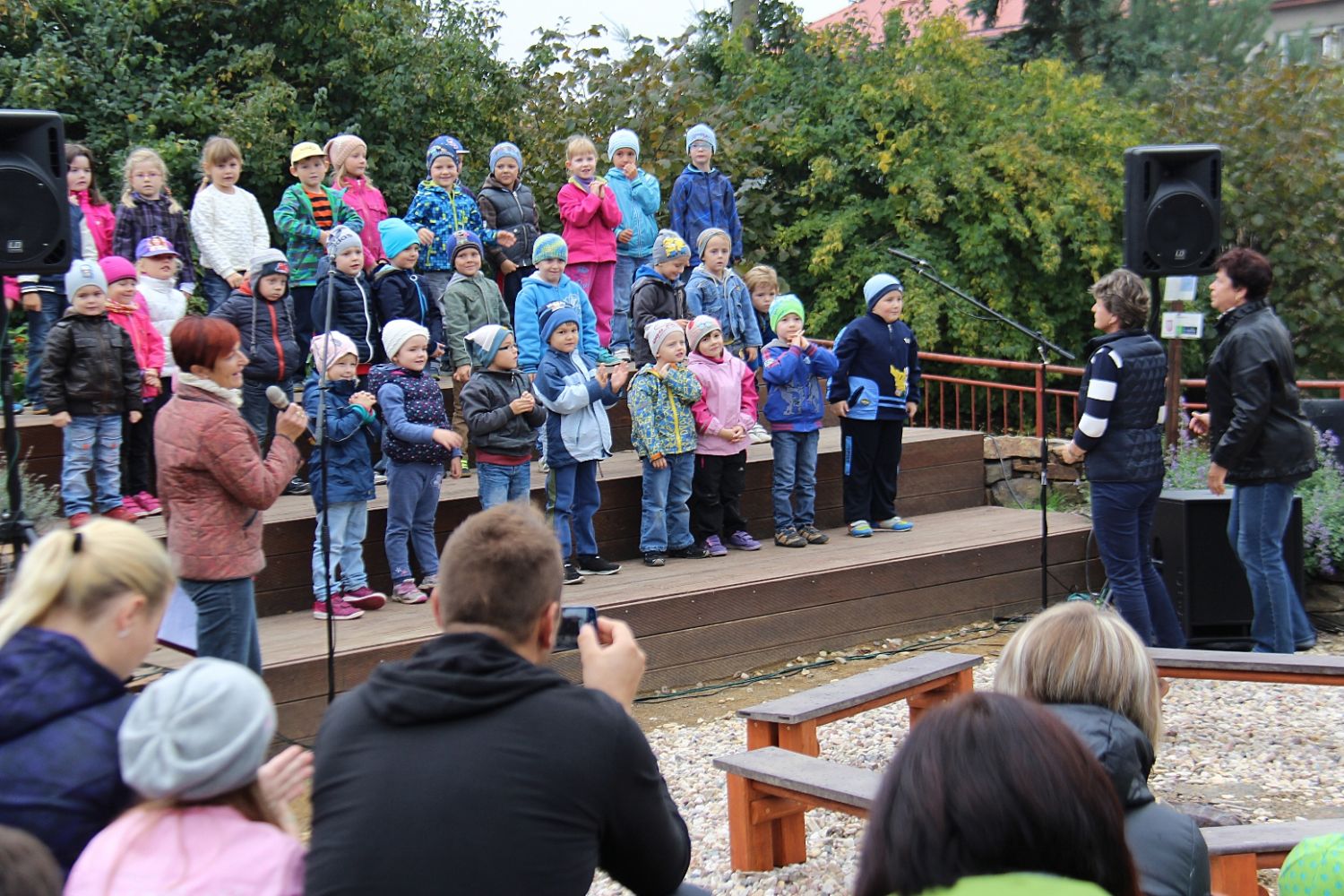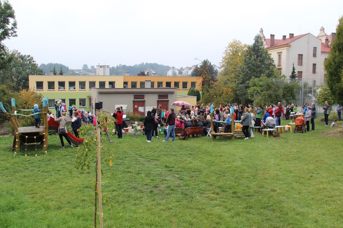 Děti s učitelkami, rodiče, prarodiče a další hosté se sešli v přírodní zahradě mateřské školy Sokolovská v úterý 6. října, aby společně strávili příjemné odpoledne. Děti přítomné potěšily kulturním vystoupením a k pohodě přispěl i malý táborák a opékání špekáčků. Důvodem malé slavnosti bylo to, že se jim daří jít ruku v ruce s přírodou. Stejný název nese i projekt, na nějž školka získala grant z programu Kraje Vysočina Životní prostředí 2015.