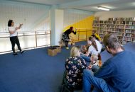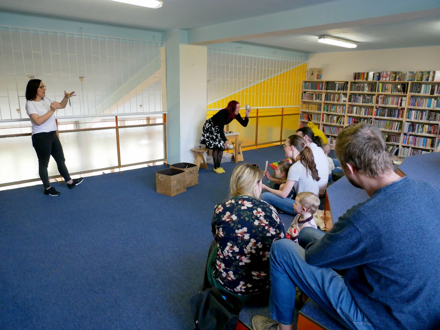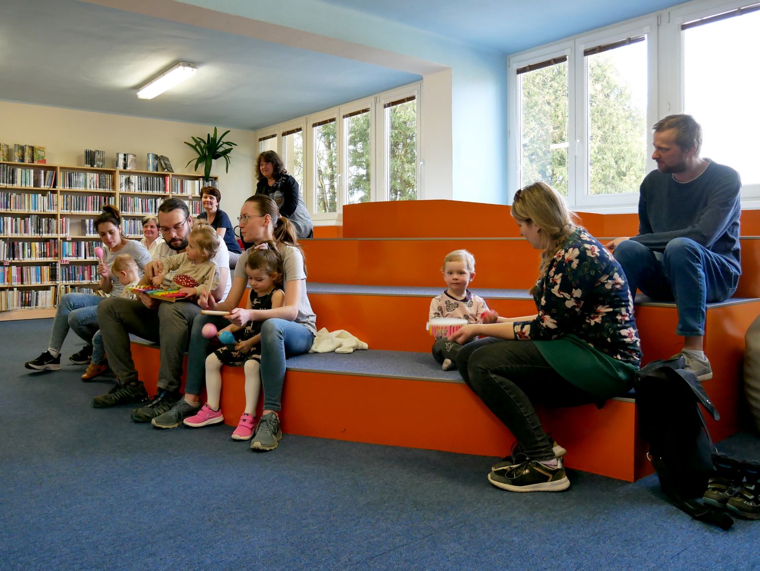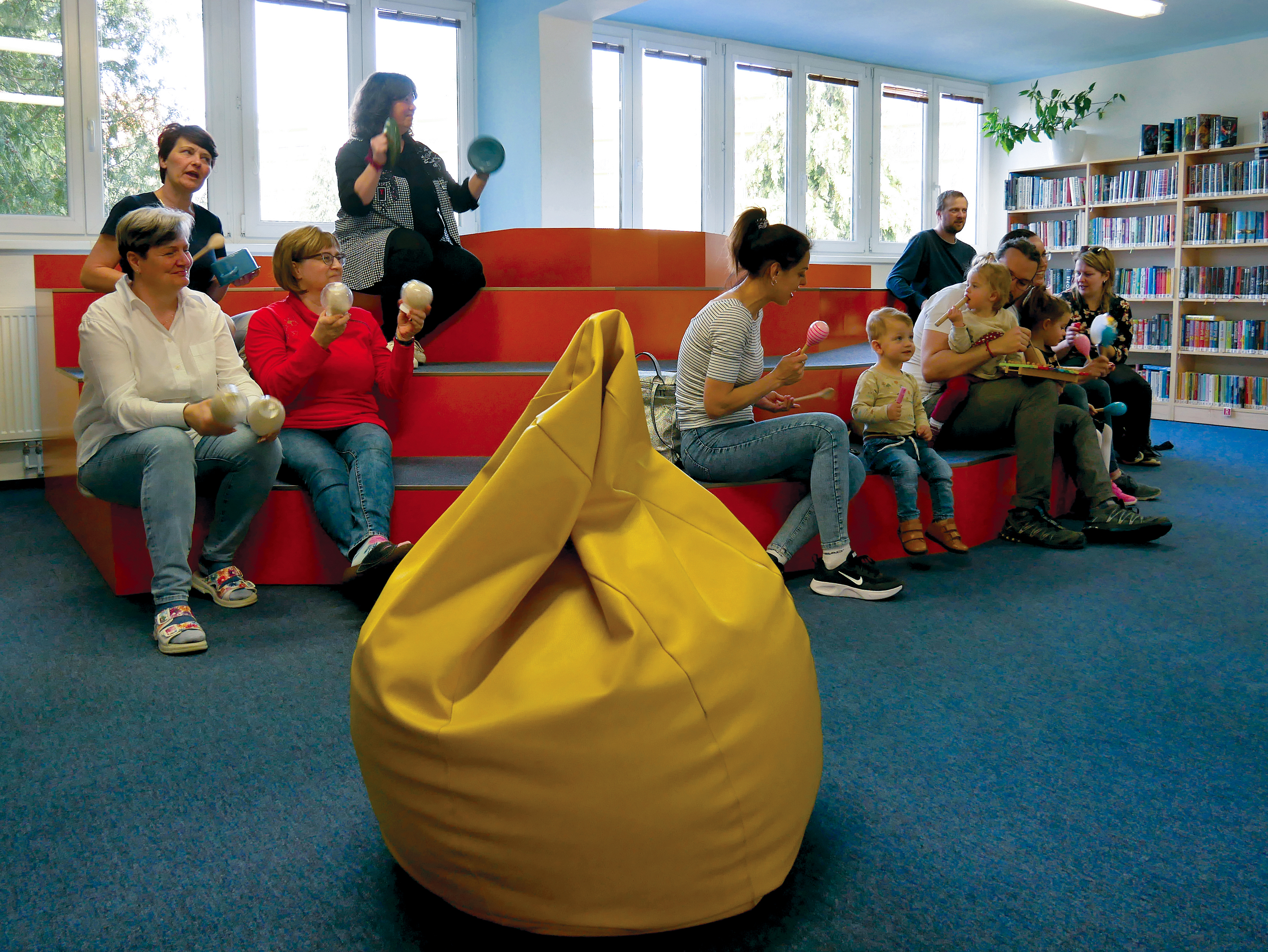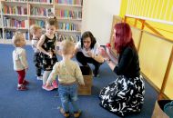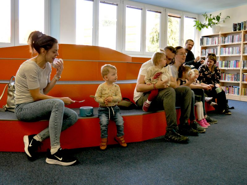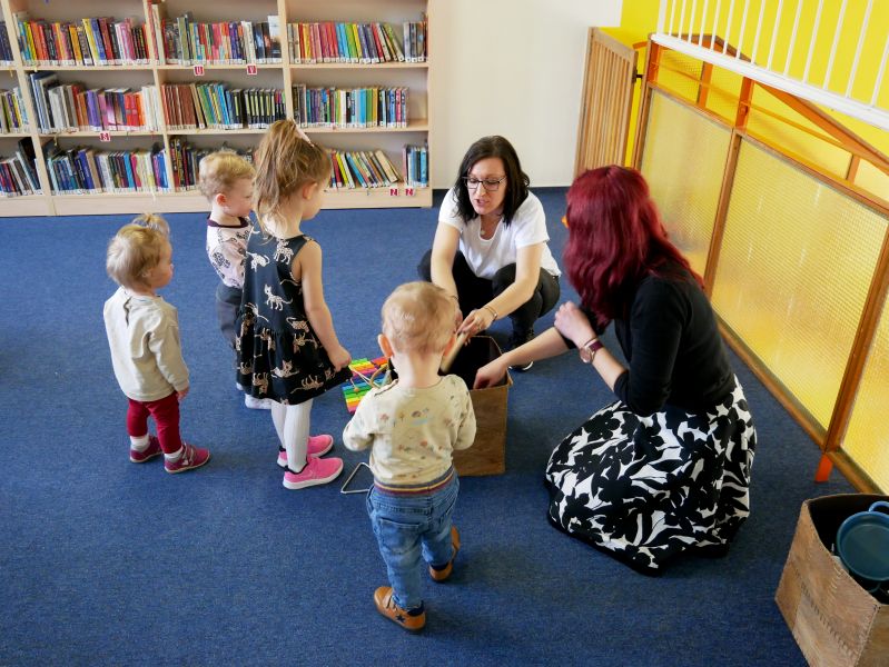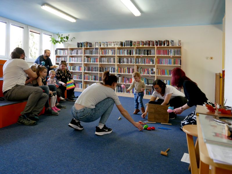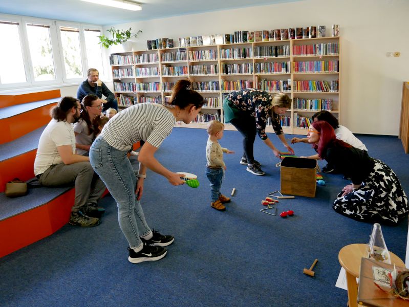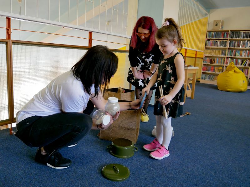 Děti společně s rodiči si za pomoci rendlíků, vařeček, pokliček a jiných „hudebních nástrojů" vytvořili kapelu a pod vedením knihovnických lektorek se pustili do nacvičování. A byl to koncert! Nebo rachot? Obojí. V další části dostala kapela k dispozici skutečné rytmické nástroje a nácvik pokračoval.