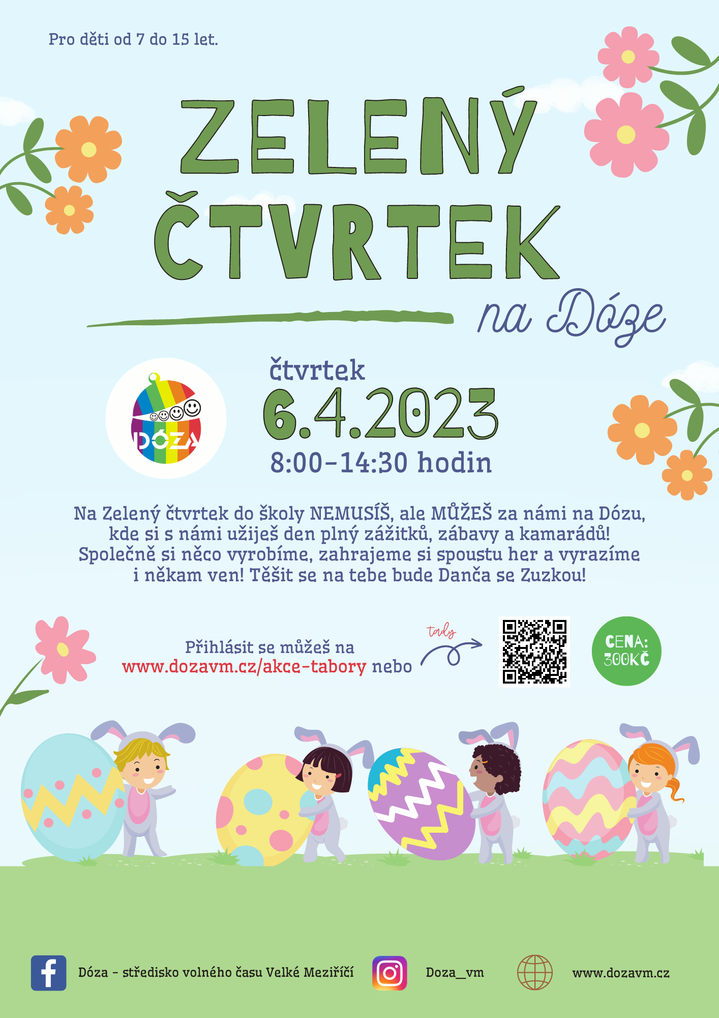 Dóza – středisko volného času Velké Meziříčí pořádá akci s názvem Zelený čtvrtek na Dóze.