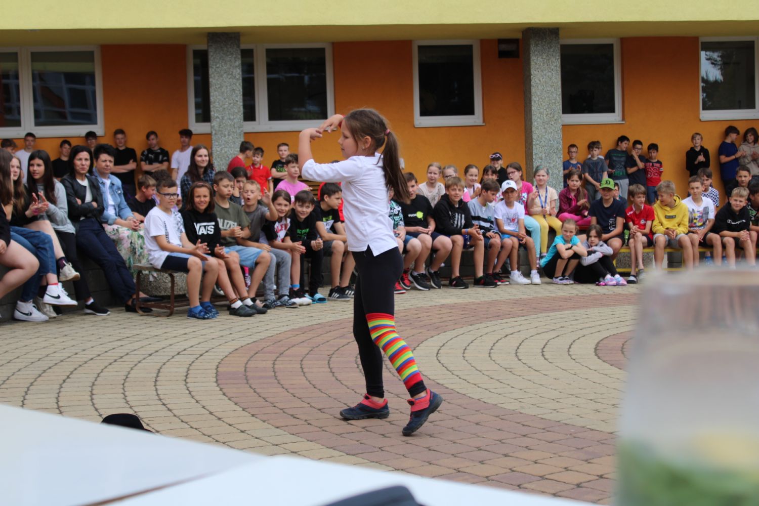 Nechybělo samozřejmě ani finále, ve kterém soutěžilo celkem 14 týmů – skupin i jednotlivců. Každý tým si připravil vlastní choreografii. Den také zpestřilo vystoupení učitelek, které sklidilo velký potlesk. Celou soutěž hodnotila porota v čele s panem Michalem Janákem.