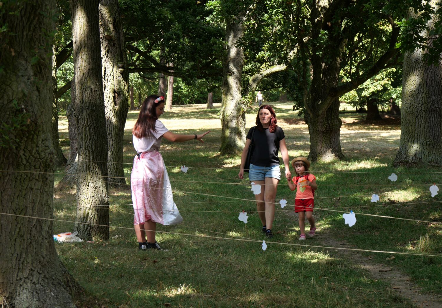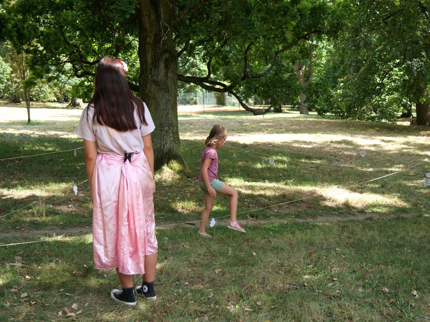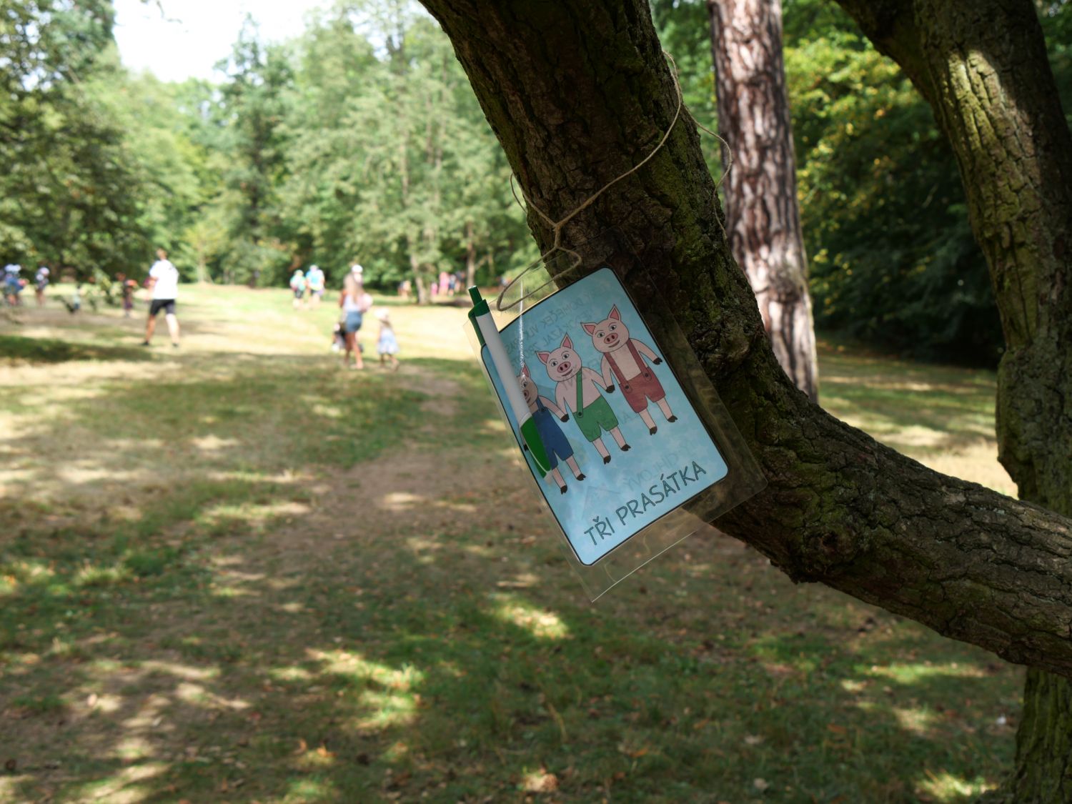 V parku byla rozmístěna různá stanoviště, ale i hádanky k samostatnému plnění. Směr hry značily proužky růžového krepového papíru, které byly rozvěšeny na větvích stromů. Některé doplnily soutěžní otázky a hádanky.