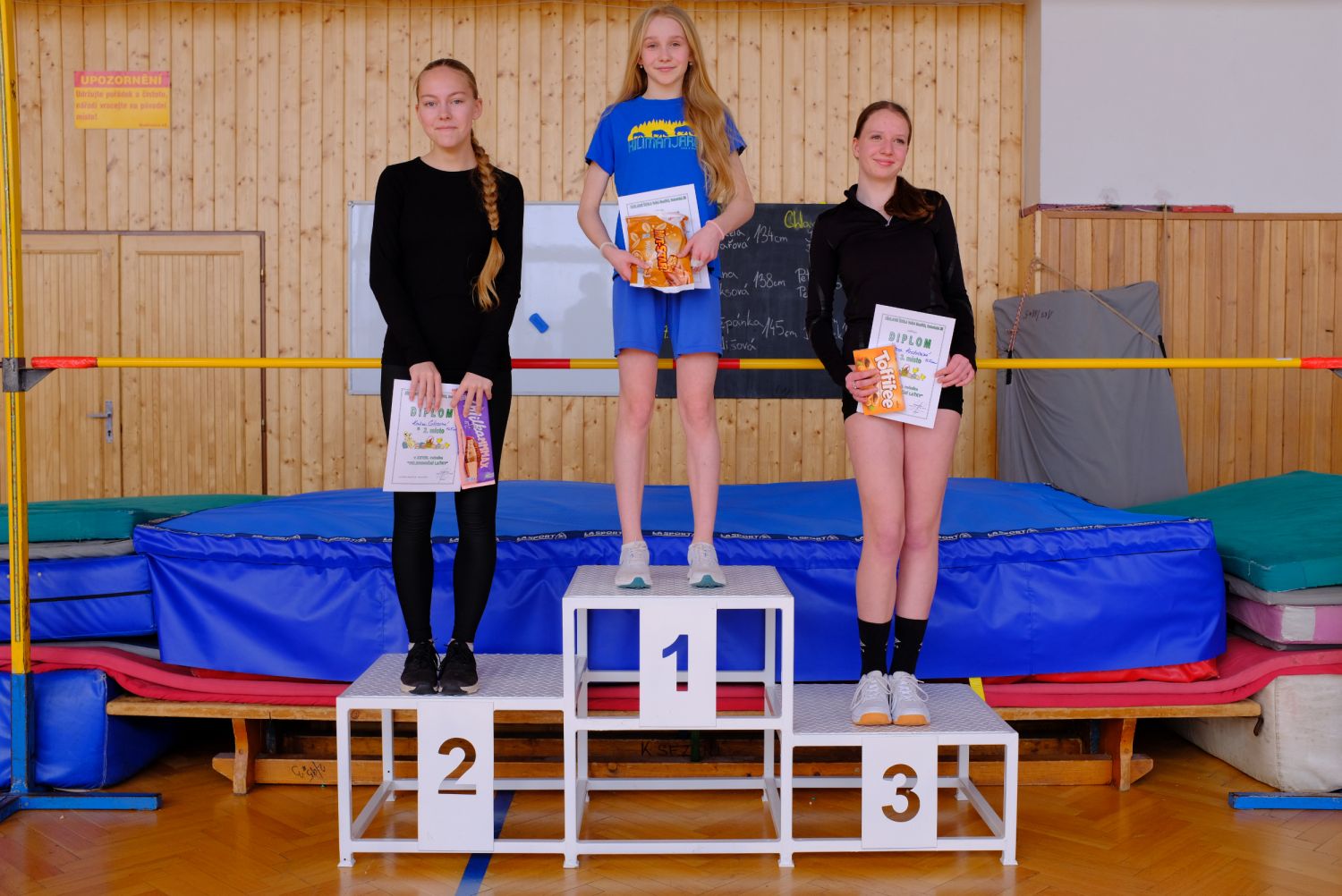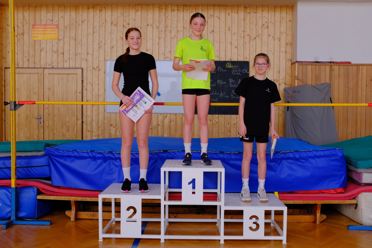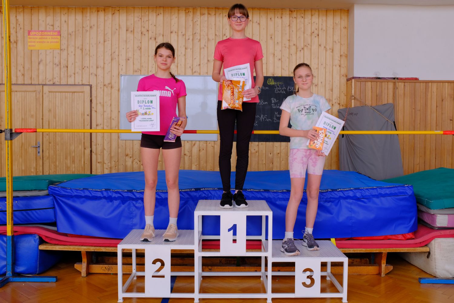 Kategorie dívek 5. tříd měla suverénní vítězku v podobě Vanesy Prokopové, která výkonem 130 cm předčila v pořadí druhou Sáru Urbánkovou 125 cm, třetí místo za výkon 110 cm získala Silvie Matušíková. Mezi šesťačkami nejlépe skákala Nela Fňukalová 125 cm, ta byla o 5 cm lepší než loňská vítězka Silvie Podsedková, třetí místo brala Isabela Navrátilová za 115 cm. Loňské prvenství u kategorie sedmaček obhájila Linda Hladíková 130 cm, o druhé a třetí příčce pak při rovnosti skočené výšky 125 cm rozhodovaly neúspěšné pokusy. Lépe na tom byla a druhé místo získala Kateřina Glosová, třetí v pořadí pak byla Štěpánka Krchňavá.