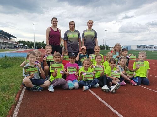 Do projektu Atletika pro děti jsme vybrali dvě skupinky našich mladých atletů - minipřípravku a mladší přípravku. Nejprve jsme do tréninku zapojili závodní disciplíny, což byla pro děti i trenéry příjemná změna. Na konci května jsme několik tréninků věnovali závodění a soutěžení v následujících disciplínách - hod raketkou z místa, překážkový běh, štafetový běh, chůze 200 m a skok do dálky. Děti byly nadšené z diplomů, medailí a dárečků, které jsme v rámci projektu Atletika pro děti získali od Českého atletického svazu.