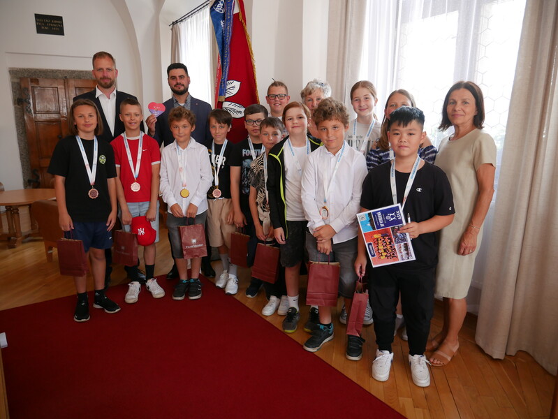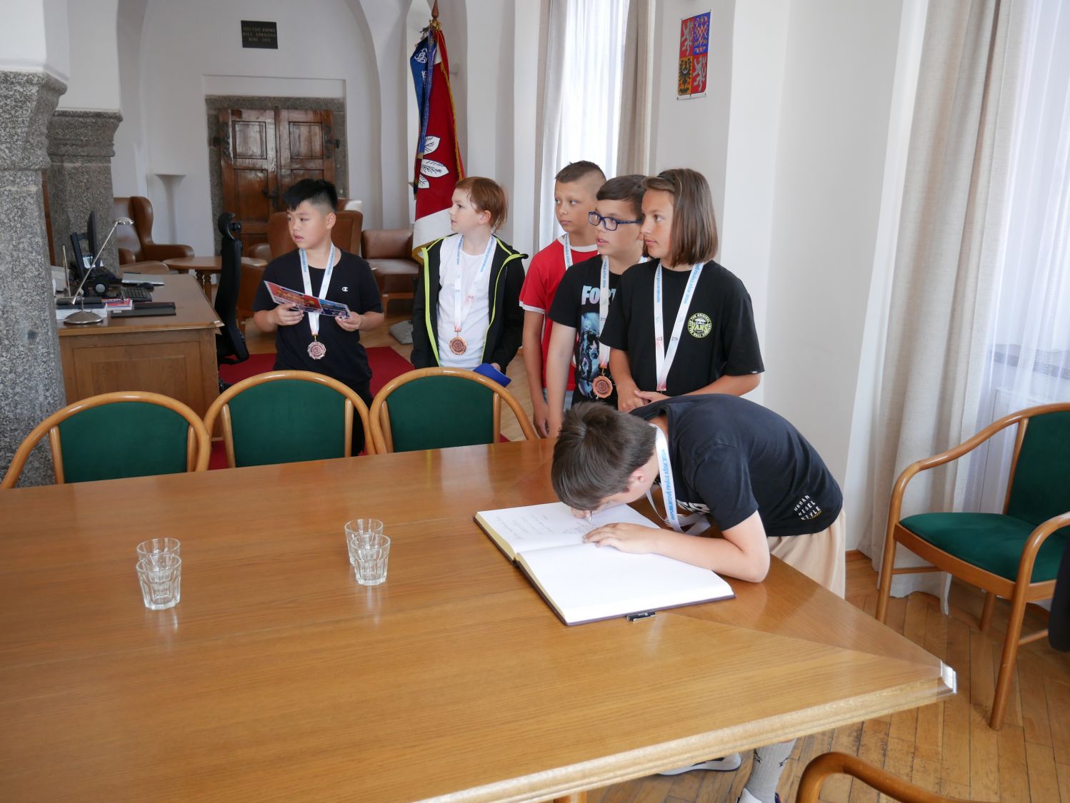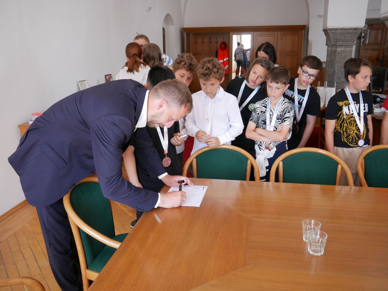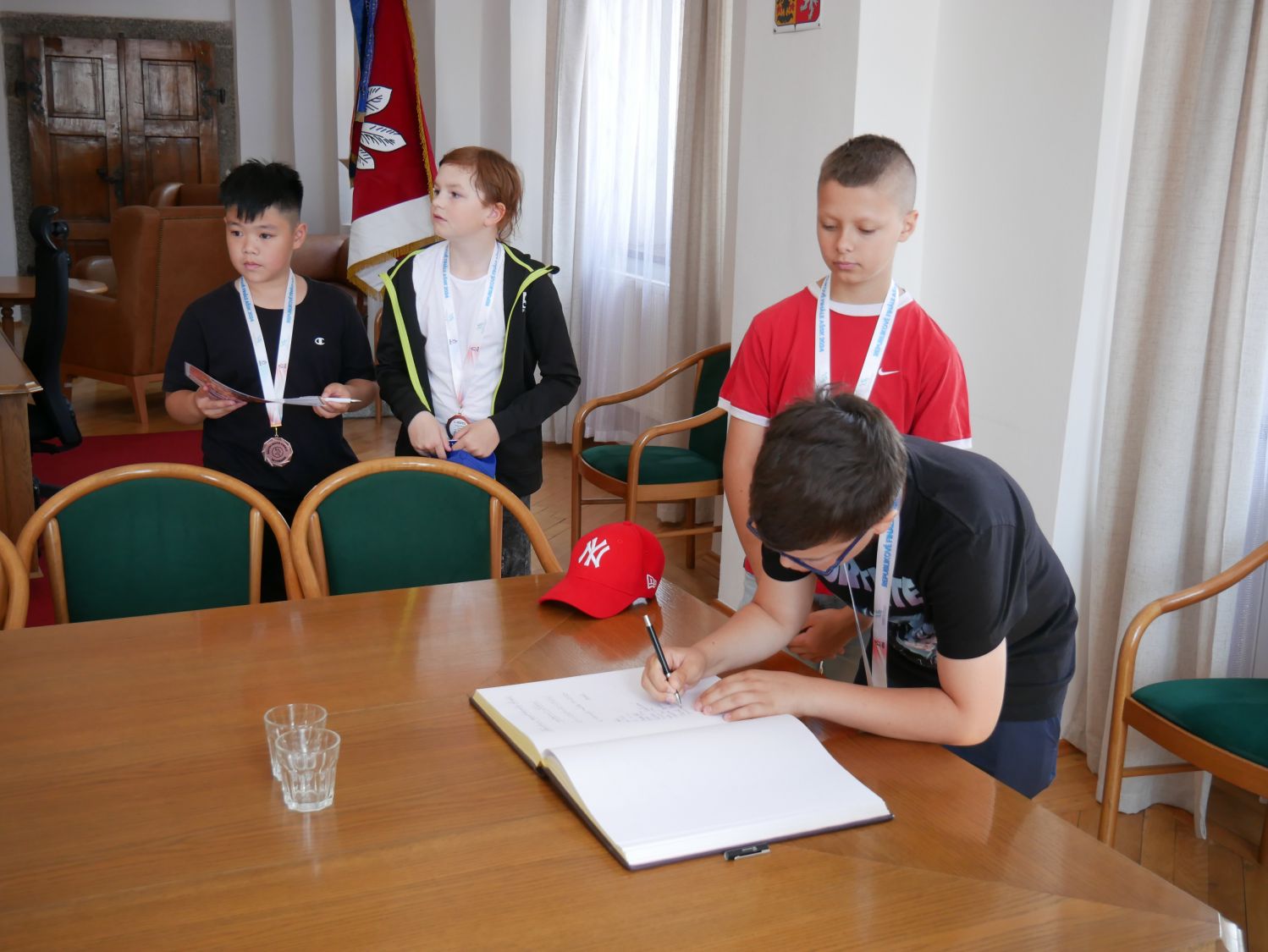 Úspěšní reprezentanti města se nakonec podepsali do pamětní knihy a od starosty a místostarosty si převzali drobné dárky.