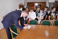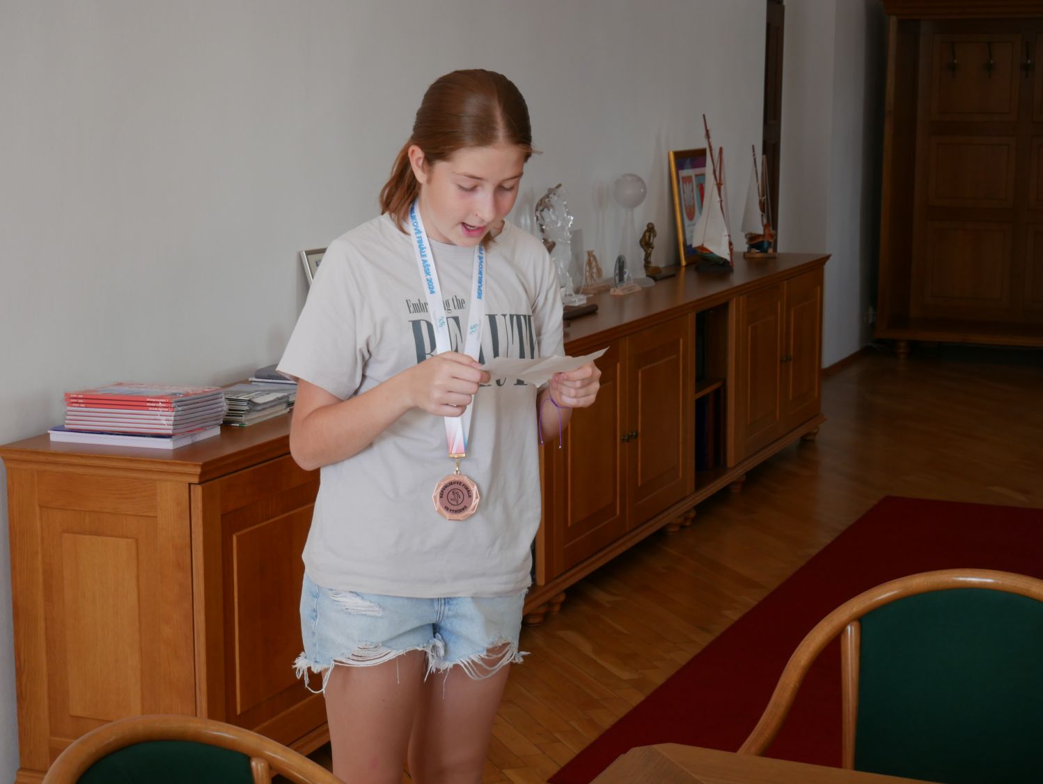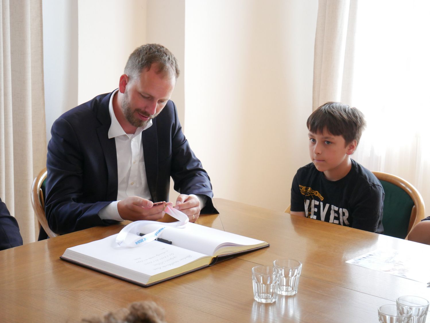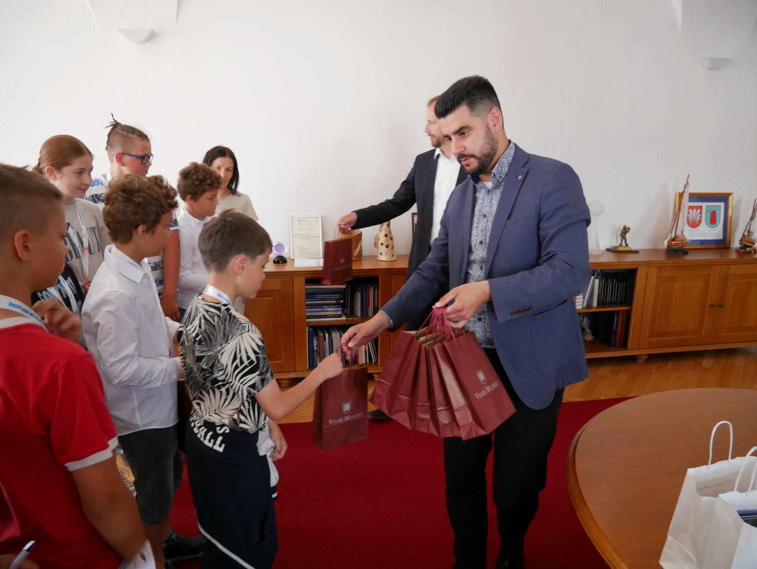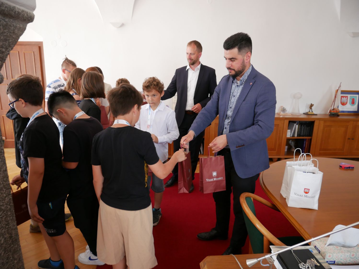 Úspěšní reprezentanti města se nakonec podepsali do pamětní knihy a od starosty a místostarosty si převzali drobné dárky.