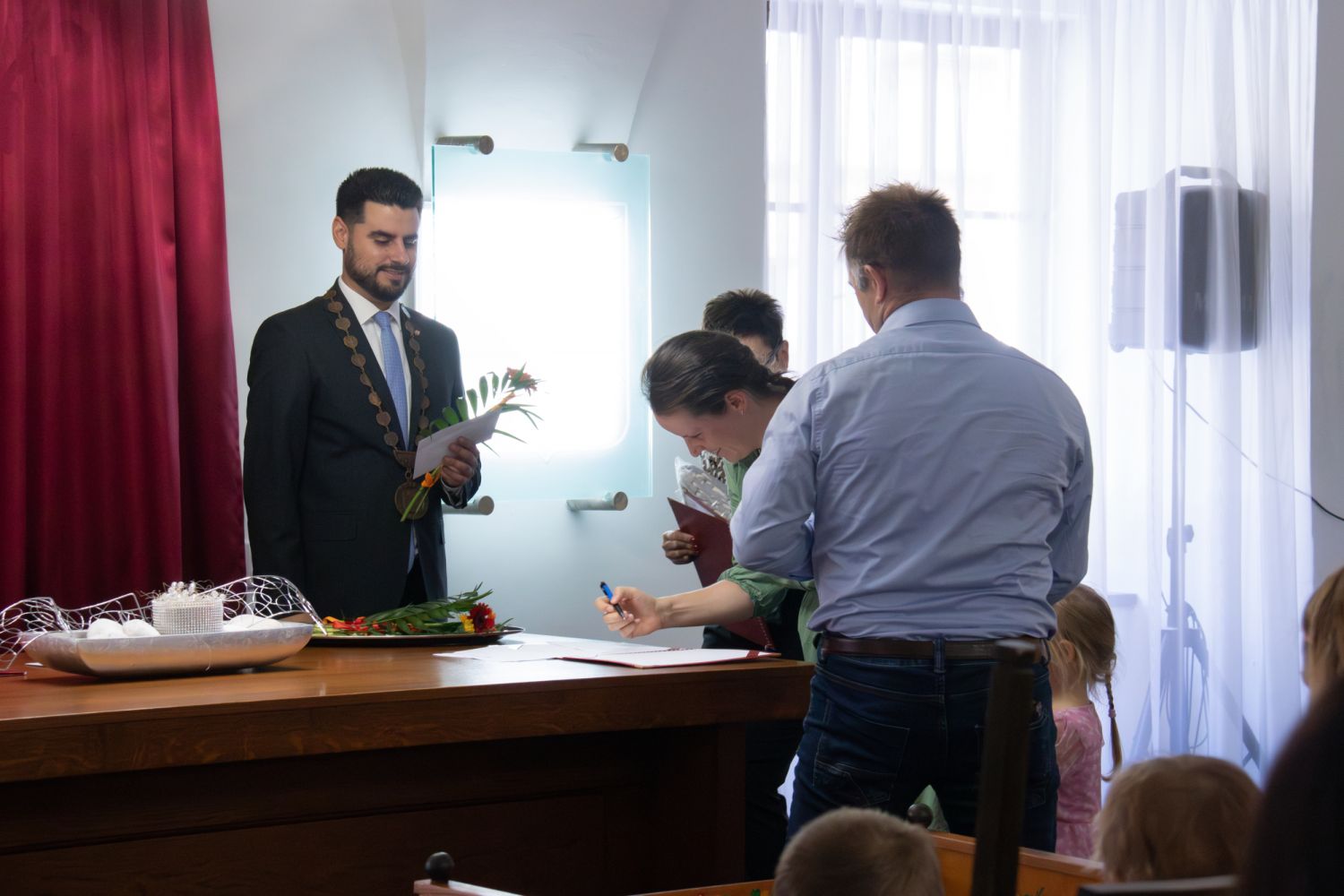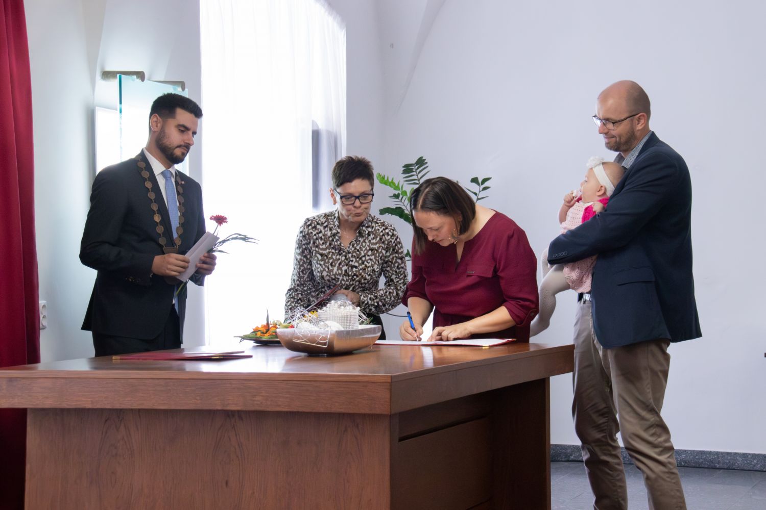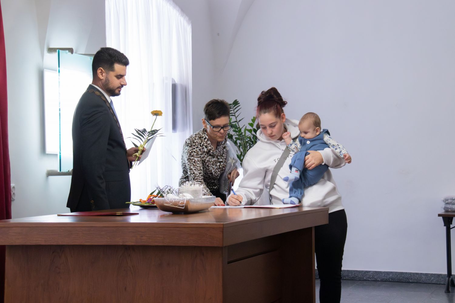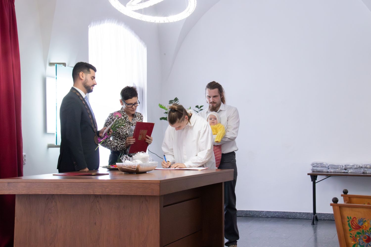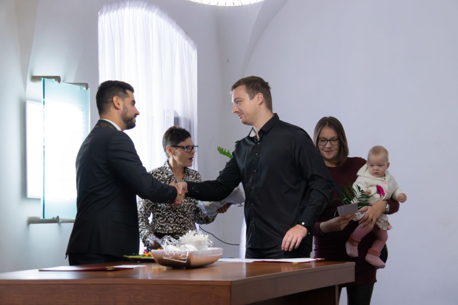 V sobotu 28. září se v obřadní síni velkomeziříčské radnice konalo vítání občánků. Po úvodních slovech starosty Alexandros Kaminaras, které doprovázela hra na piano, si každá rodina přišla pro gratulace, měkký dáreček a symbolický finanční dar od města. Celkem bylo přivítáno 20 miminek narozených od konce loňského roku až do posledního března letošního roku.