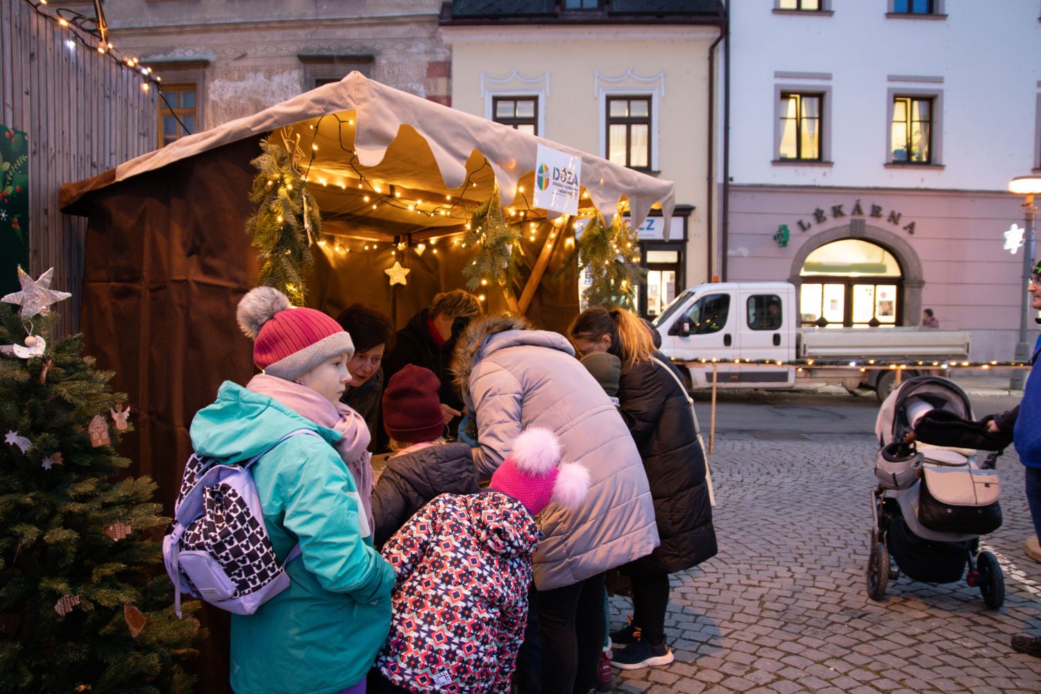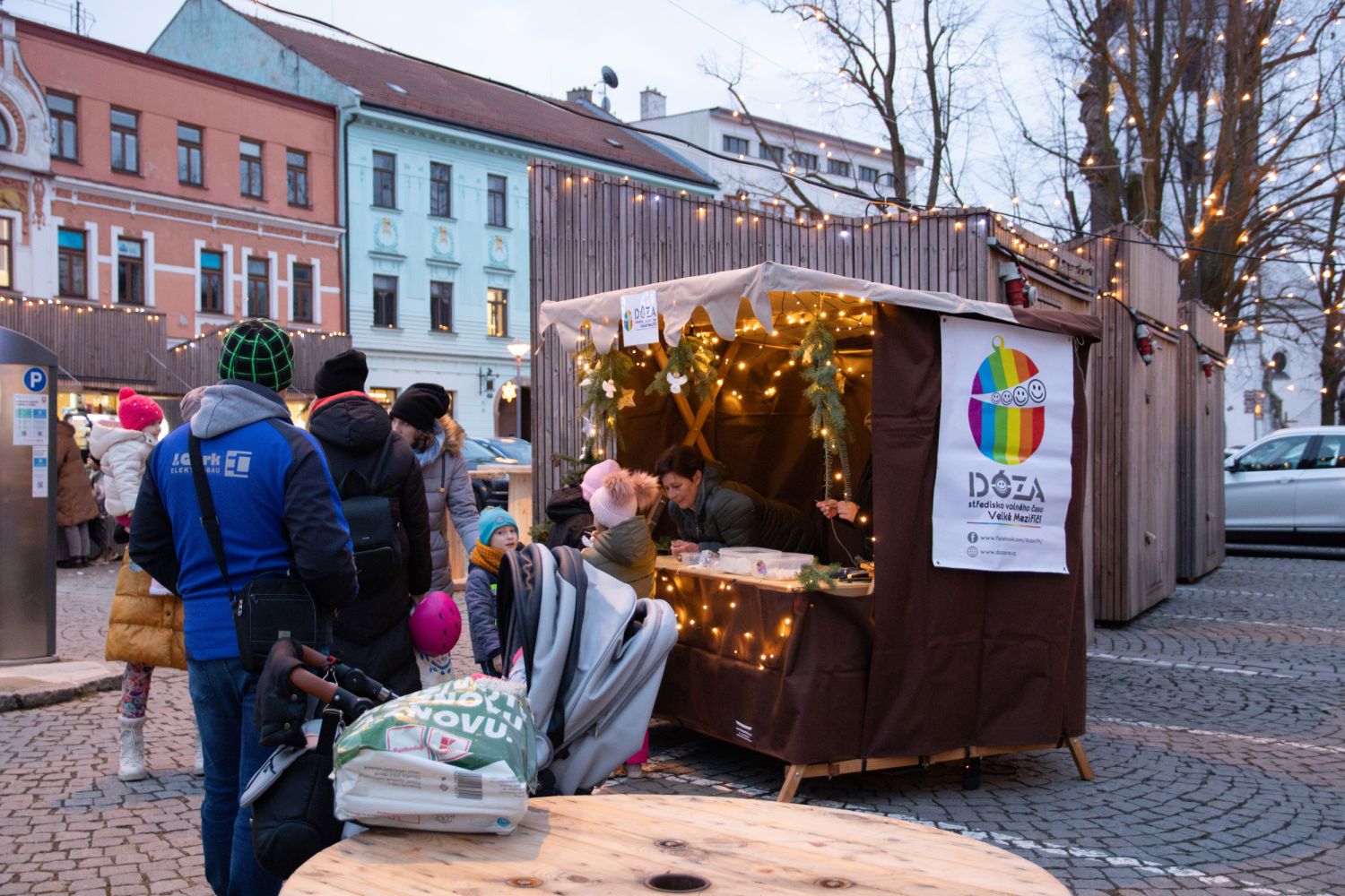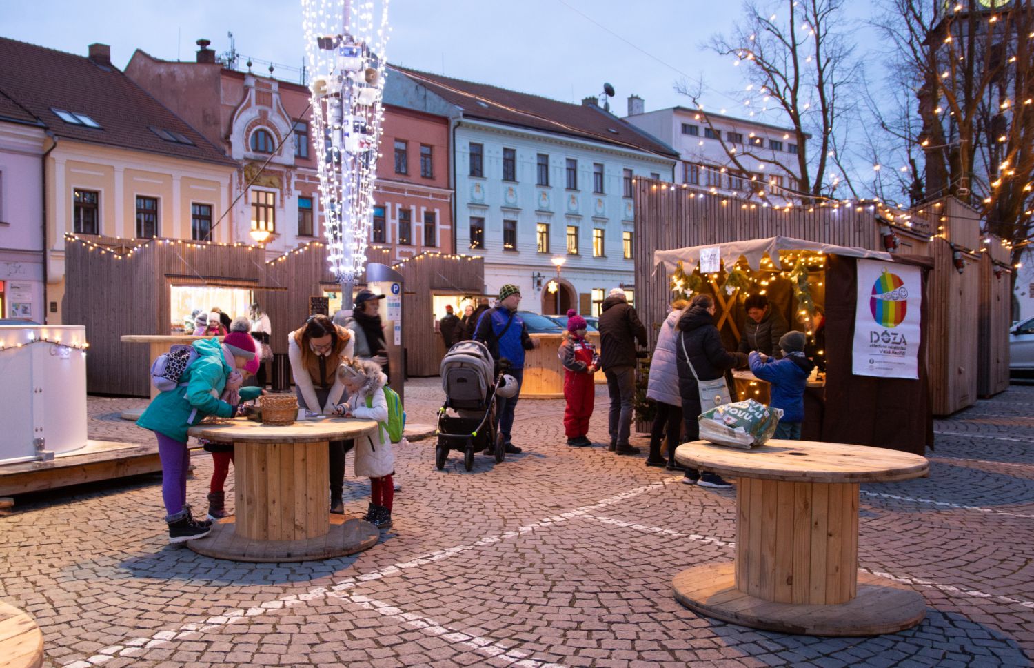 V rámci vánočního náměstí nabídla Dóza SVČ dětem možnost vyrobit si andělíčka na stromeček. Prvním úkolem bylo vybarvit papírový perníček, podepsat jej a následně zavěsit na strom organizace, který stál vedle stánku. Po splnění si mohl každý vyrobit andělíčka a sám si jej dle představy ozdobit. Na hlavičce byl vždy instalován provázek, ten slouží k zavěšení na vánoční stromeček.