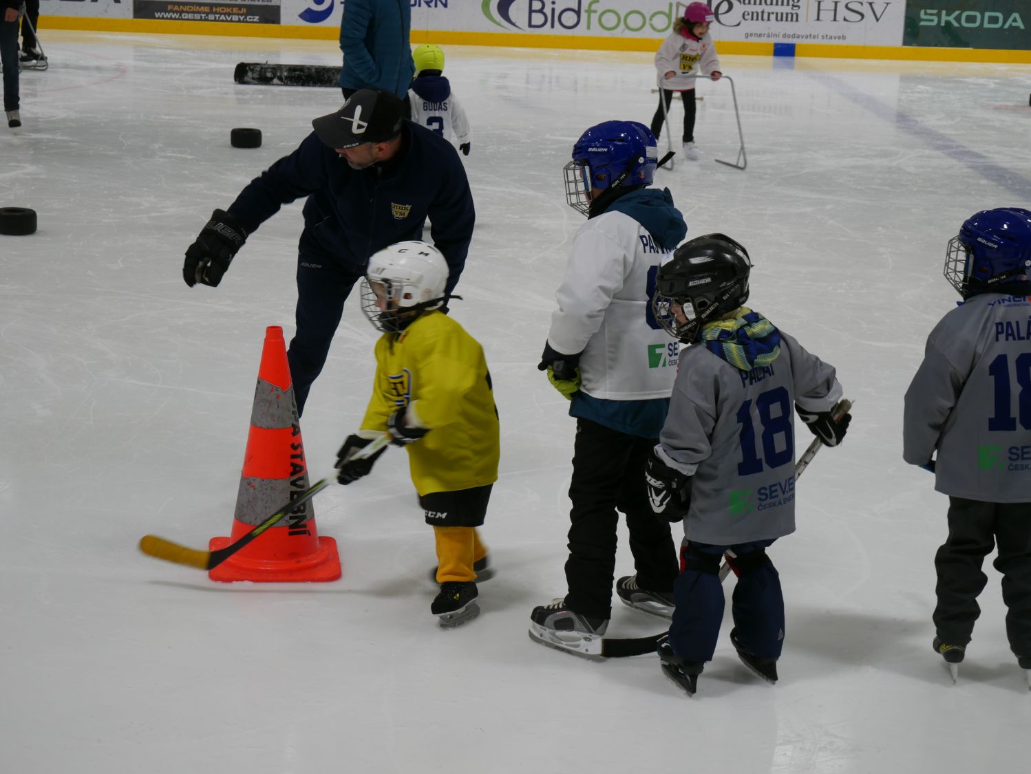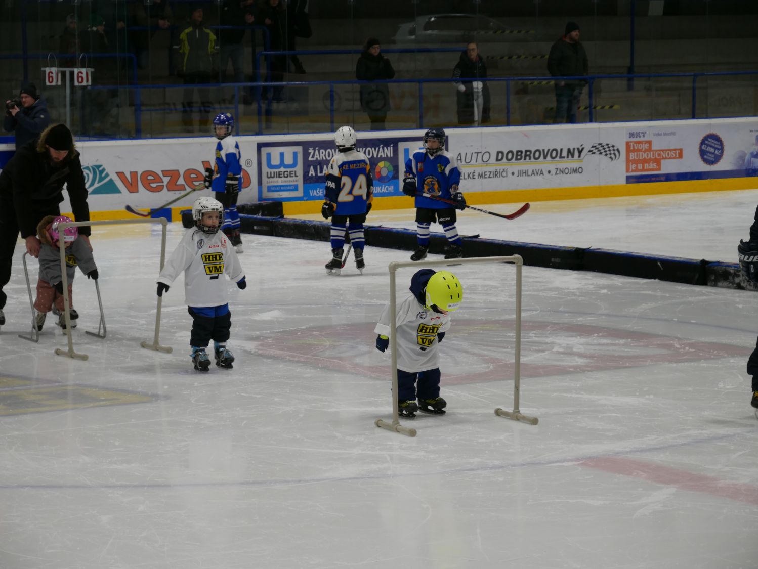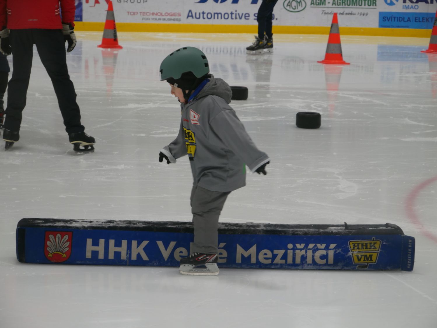 Na led dorazilo dvacet pět dětí. Nejprve si vyslechly krátkou prezentaci šéftrenéra mládeže Lukáše Nováka o hokeji ve Velkém Meziříčí a také o tom, co je na zimním stadionu čeká. A pak už šly na led, kde si mohly vyzkoušet tréninkové metody. Pro některé to byly první krůčky s bruslemi na nohou.