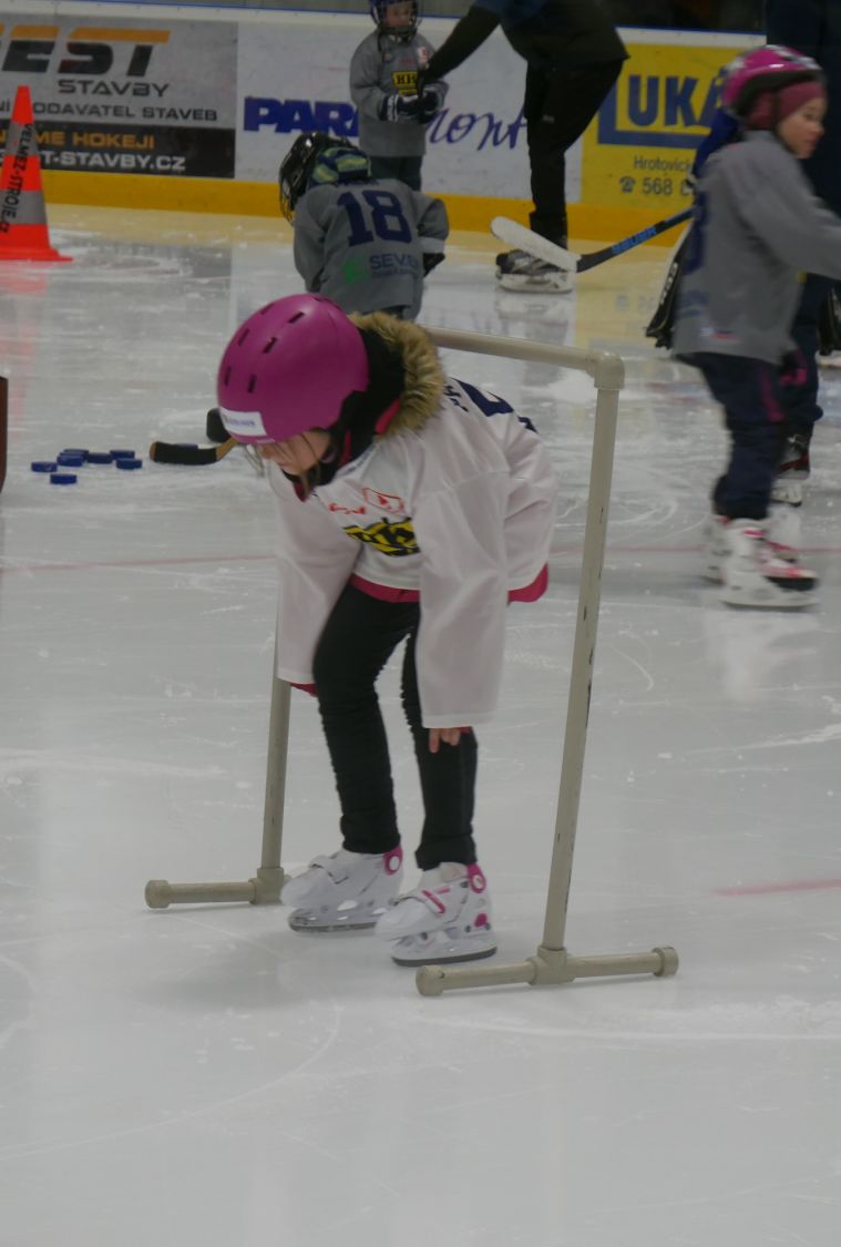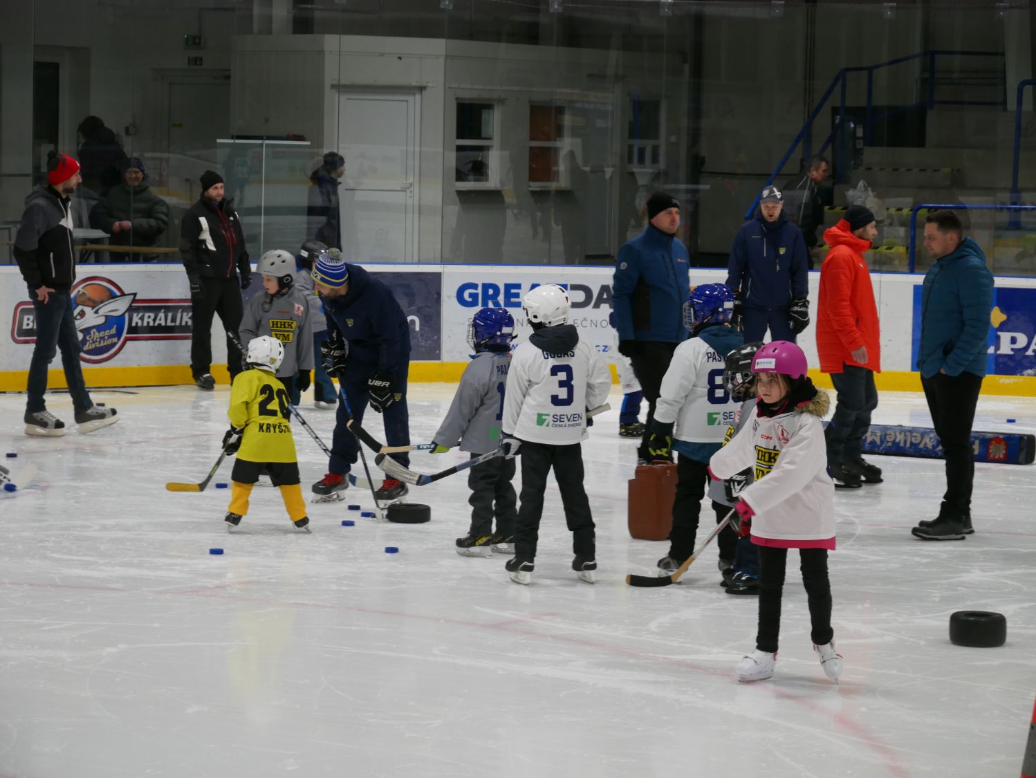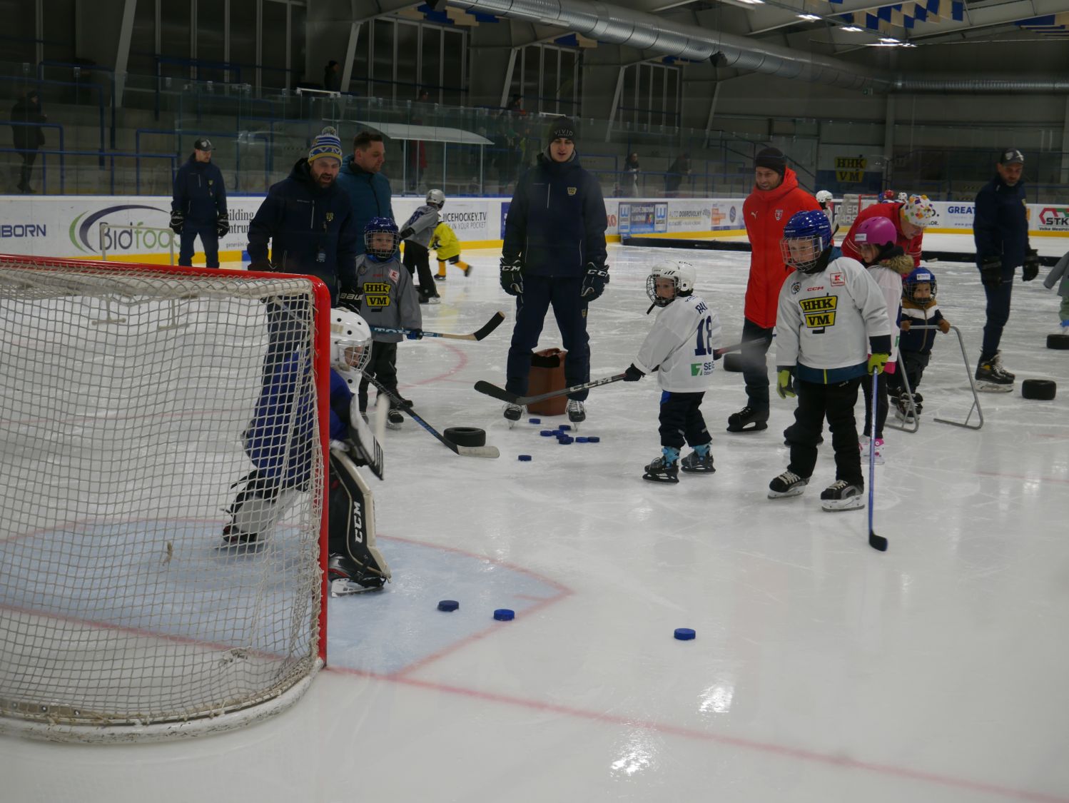 Na led dorazilo dvacet pět dětí. Nejprve si vyslechly krátkou prezentaci šéftrenéra mládeže Lukáše Nováka o hokeji ve Velkém Meziříčí a také o tom, co je na zimním stadionu čeká. A pak už šly na led, kde si mohly vyzkoušet tréninkové metody. Pro některé to byly první krůčky s bruslemi na nohou.