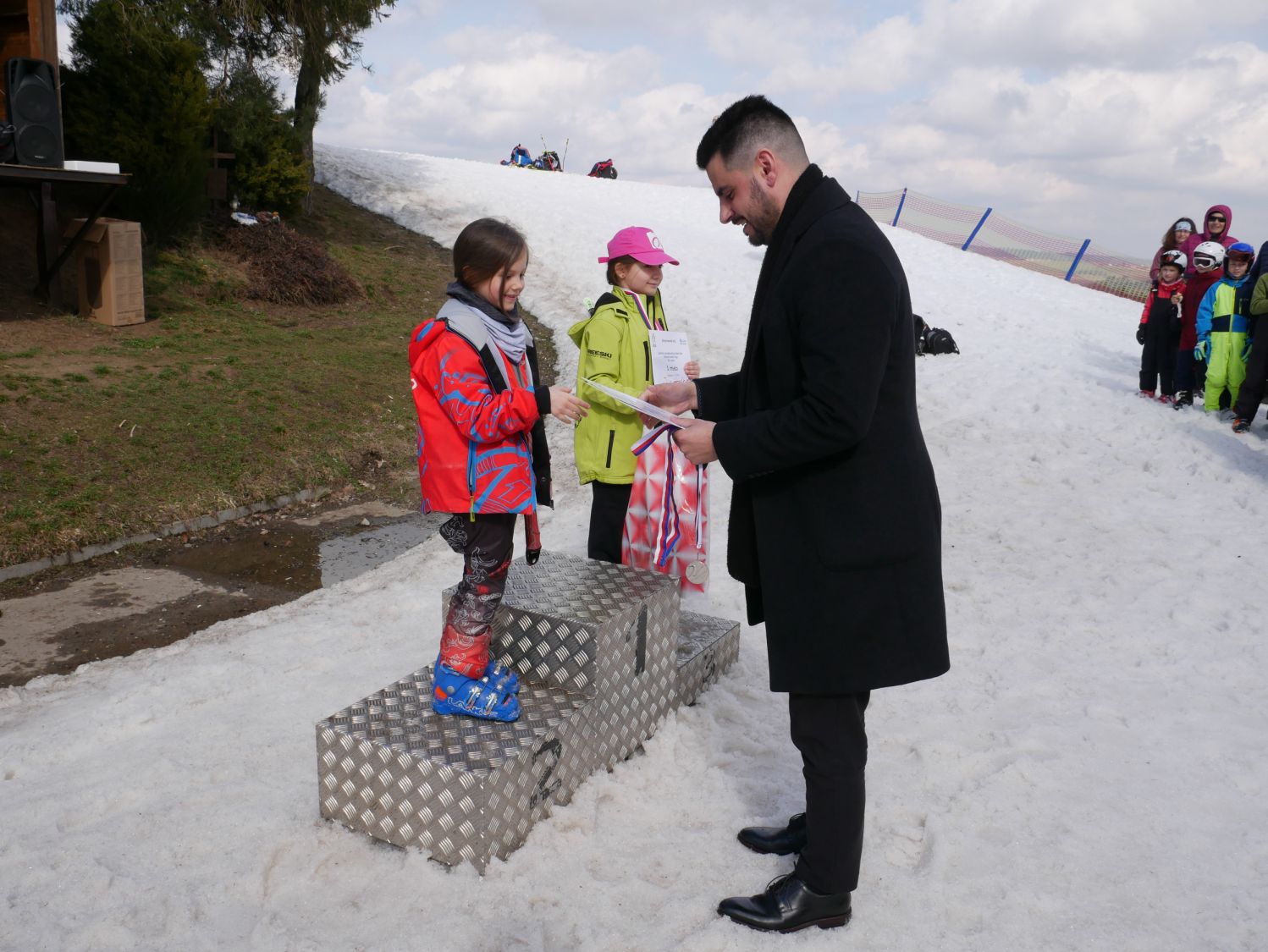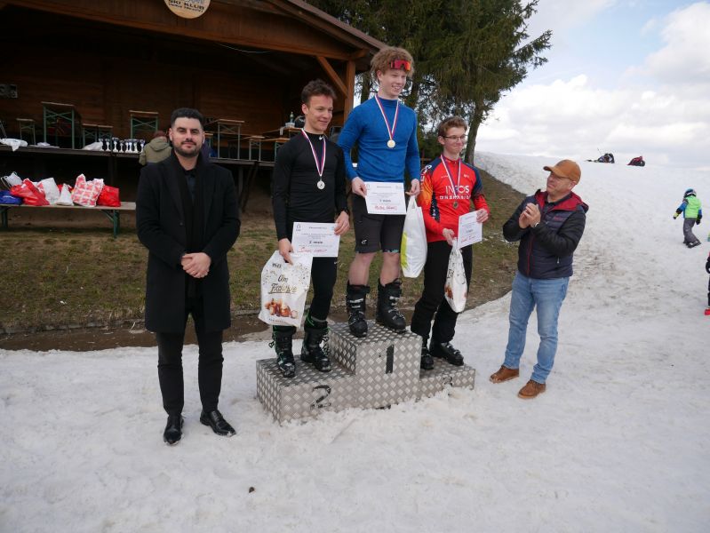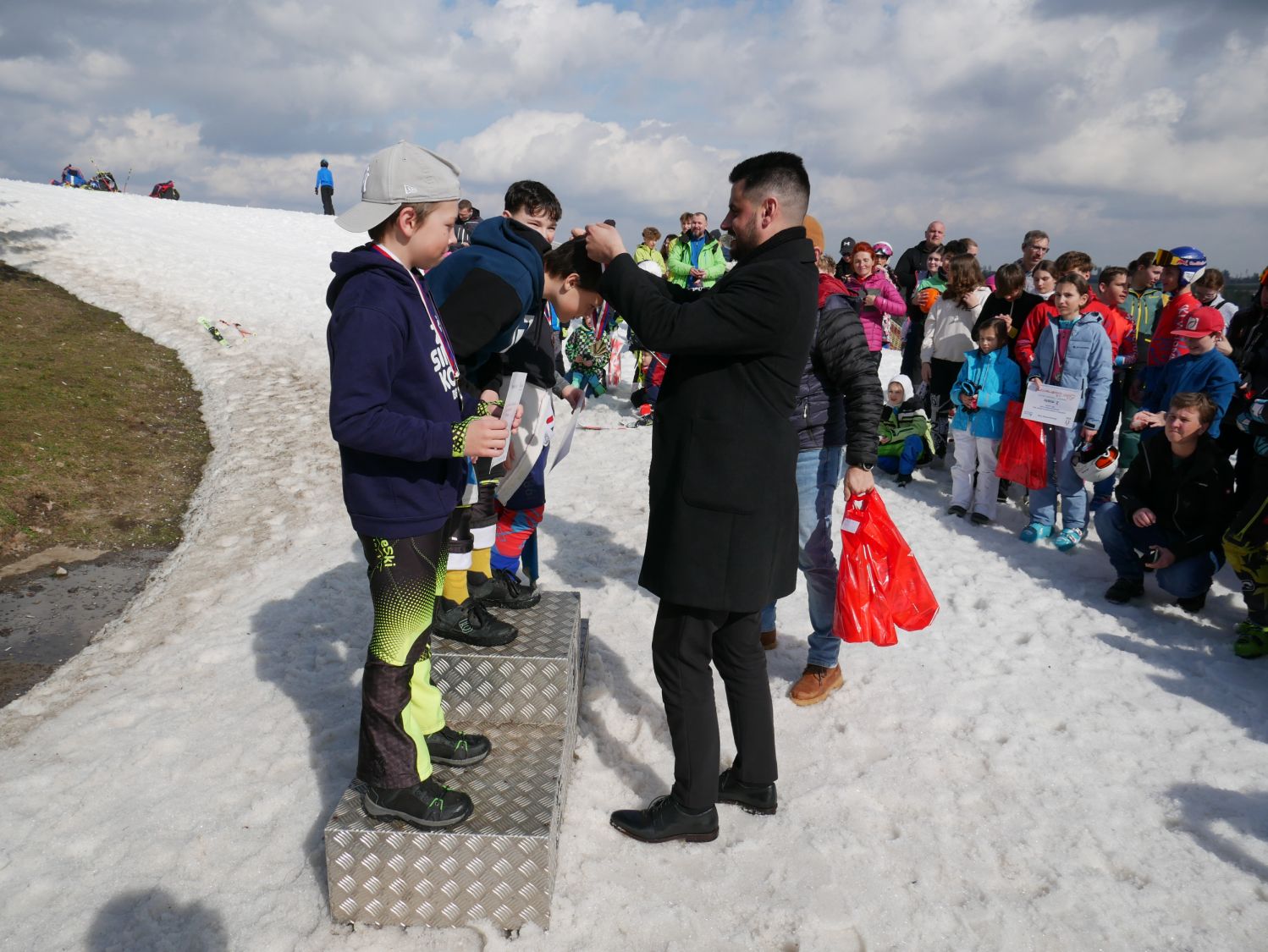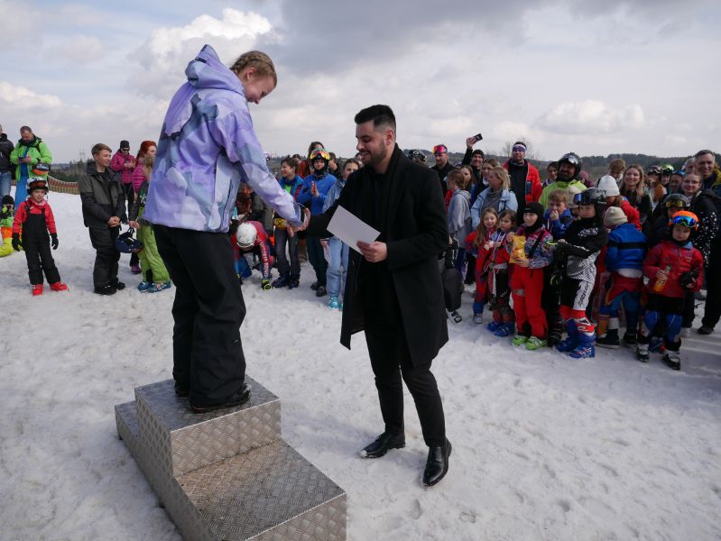 Půl hodiny po poledni došlo na slavnostní vyhlášení výsledků úterního zápolení. Předávání cen se ujal, vedle představitelů jihomoravského lyžařského svazu, starosta města Velké Meziříčí Alexandros Kaminaras.