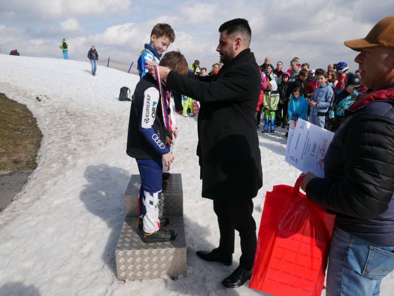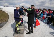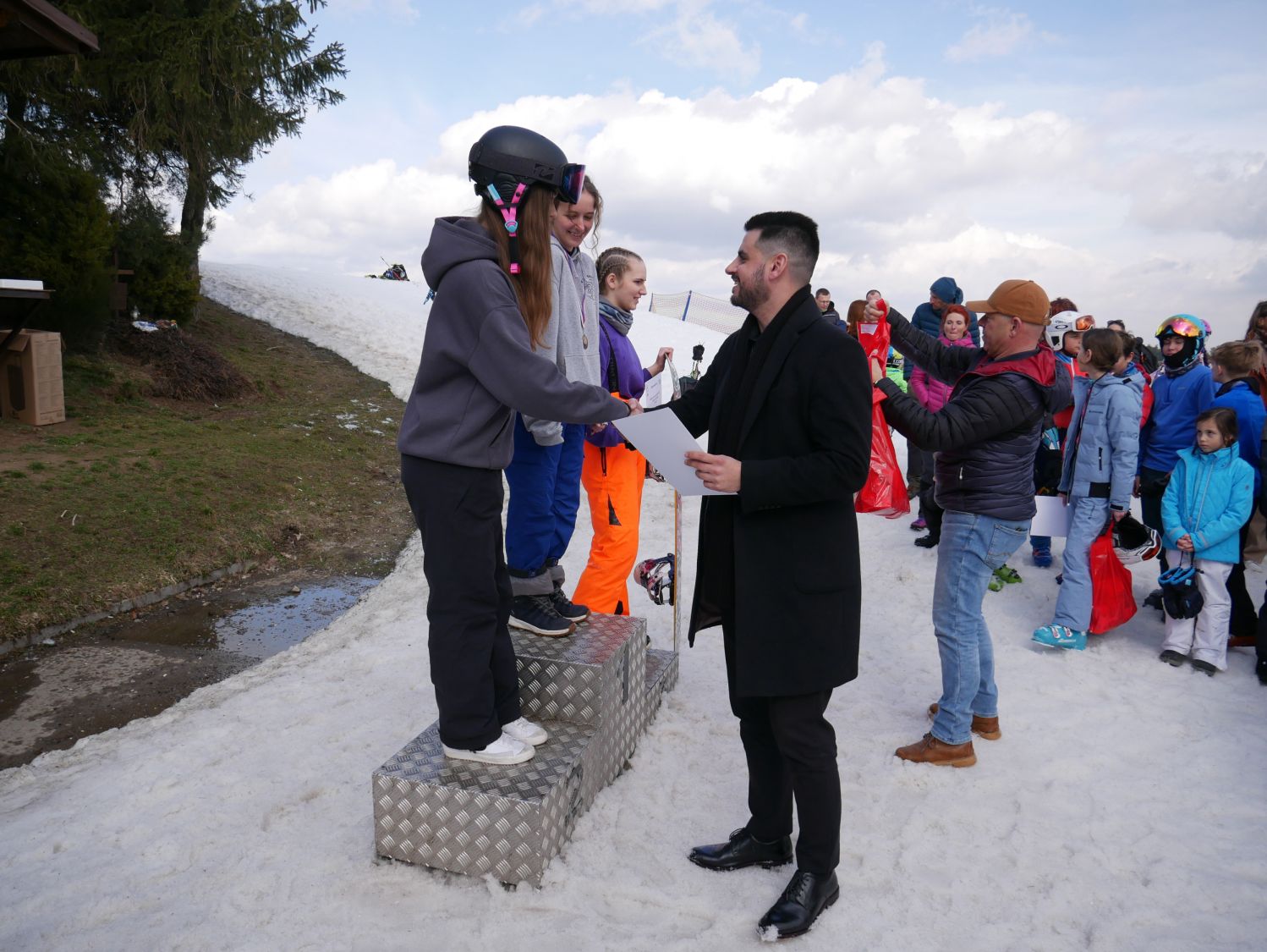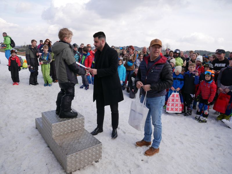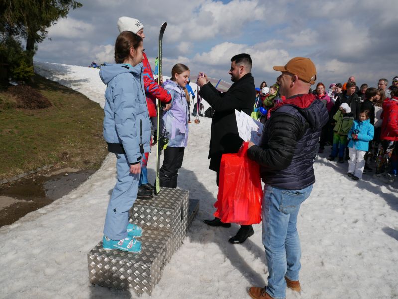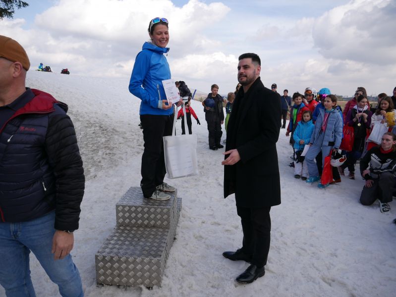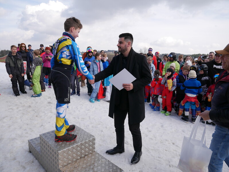 Půl hodiny po poledni došlo na slavnostní vyhlášení výsledků úterního zápolení. Předávání cen se ujal, vedle představitelů jihomoravského lyžařského svazu, starosta města Velké Meziříčí Alexandros Kaminaras.