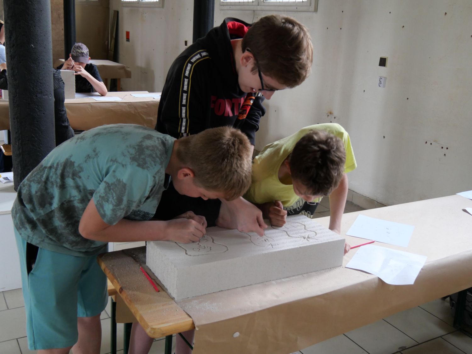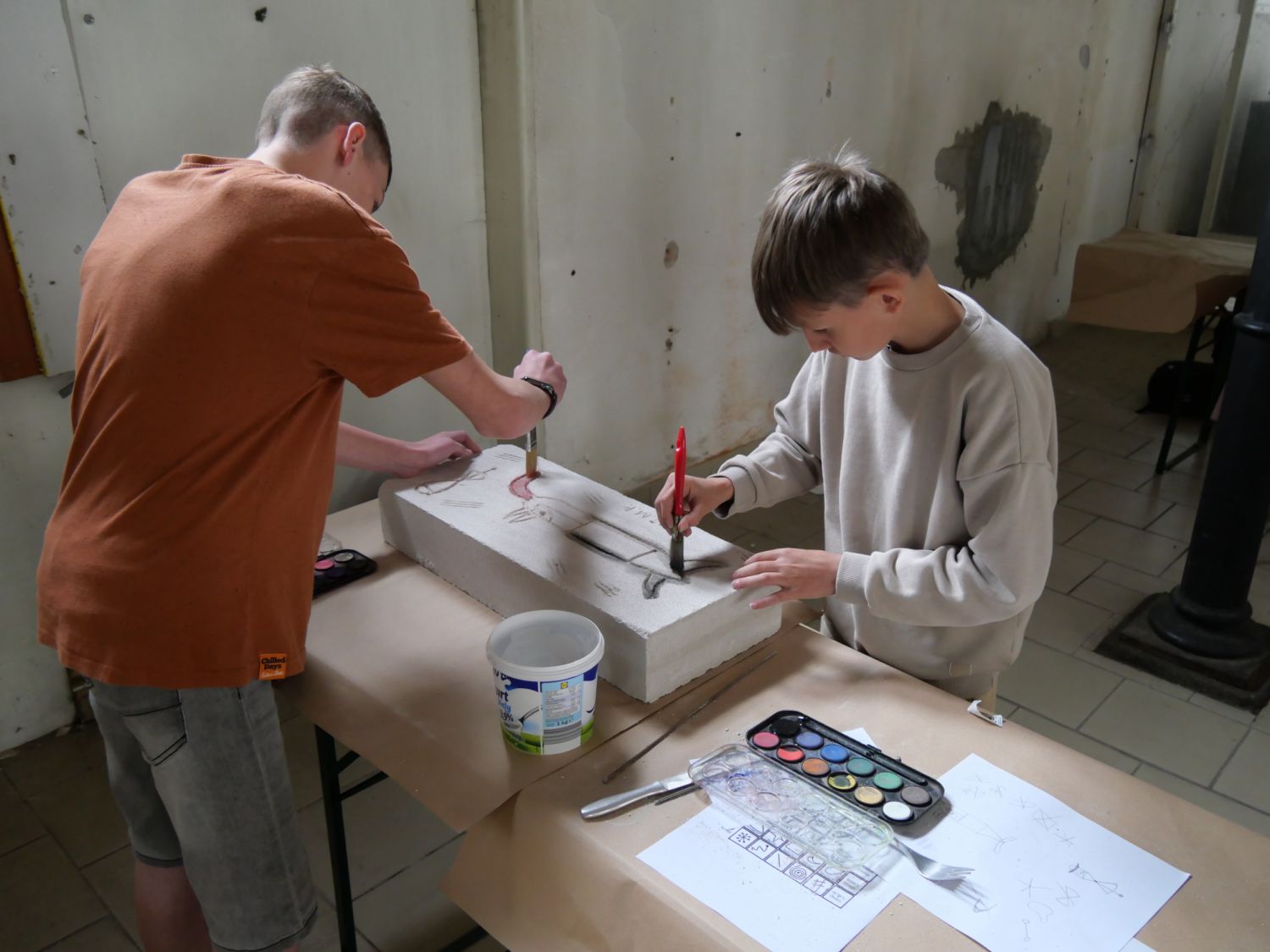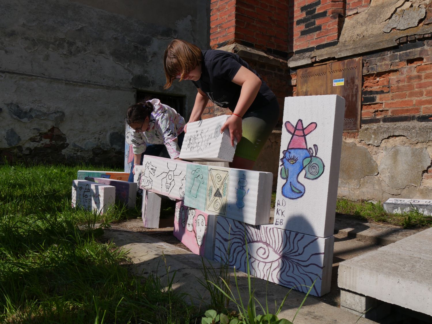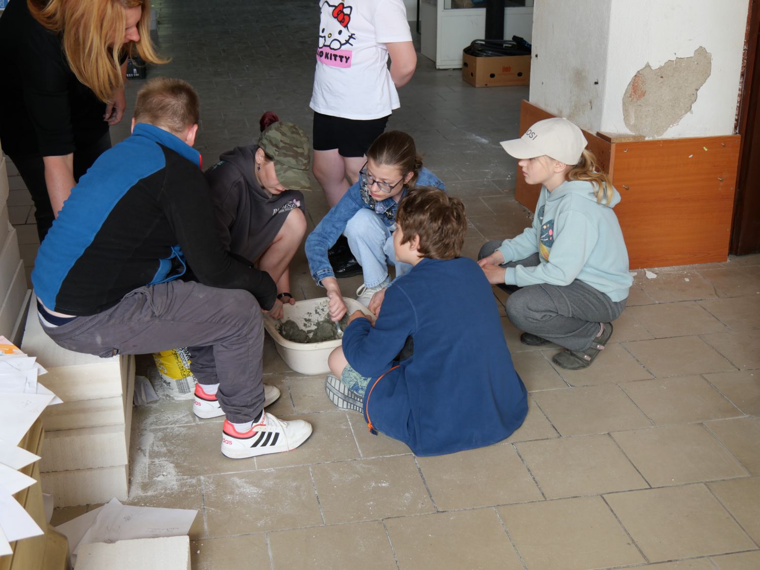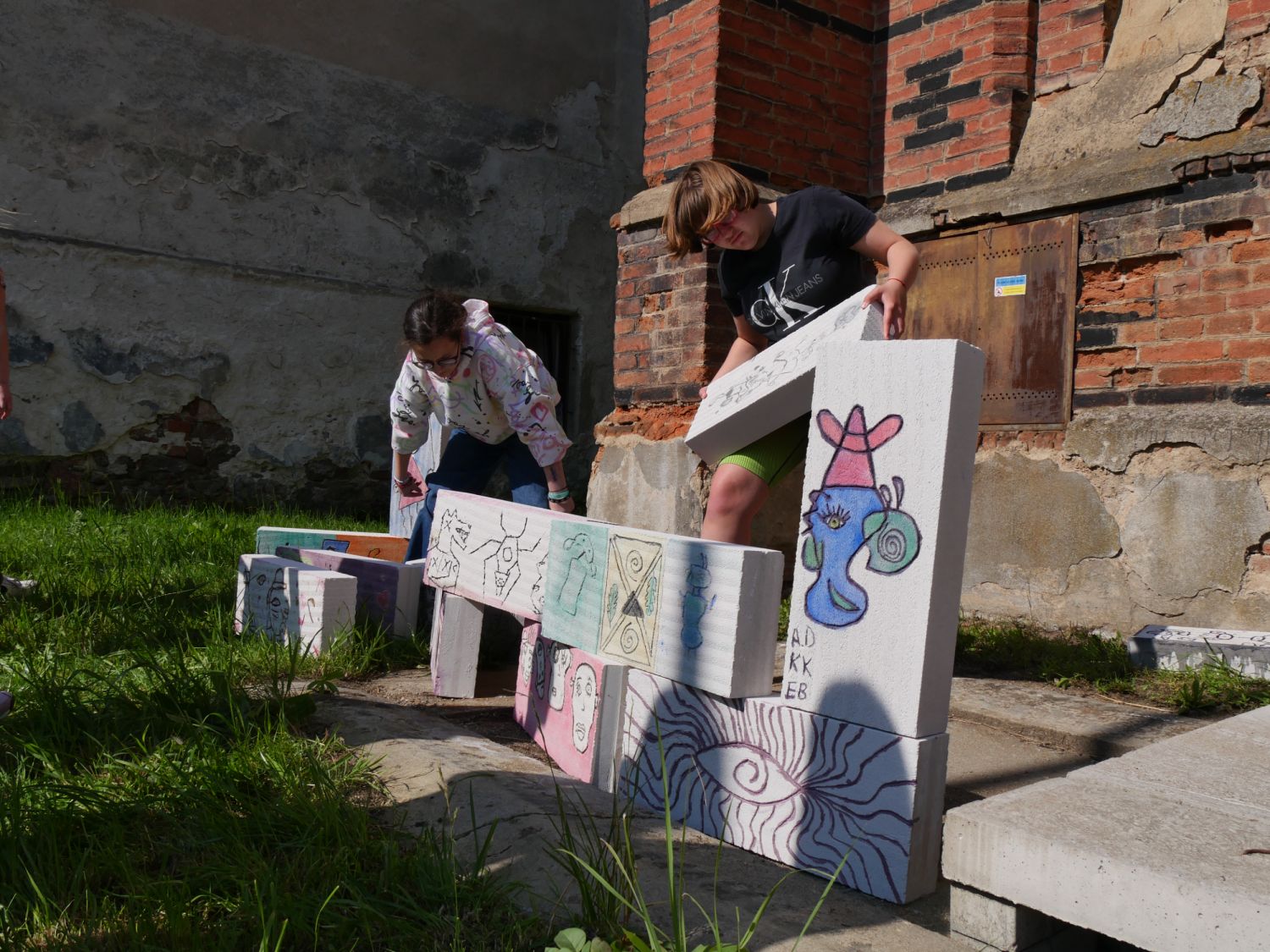 Náčrty pak přenesli na pórobetonovou cihlu a konečný obraz vyryli pomocí ostrých nástrojů. Ve finále pak svá díla barevně doplnili. Vznikla celá řada zajímavých obrazů. V synagoze děti pracovaly pod vedením Alice Trojanové, Marie Kudláčkové a Jany Štursové.