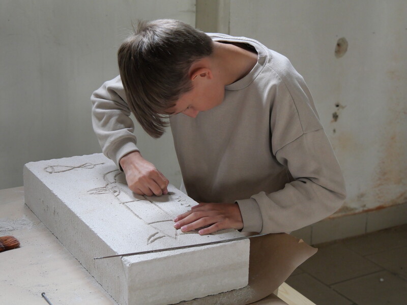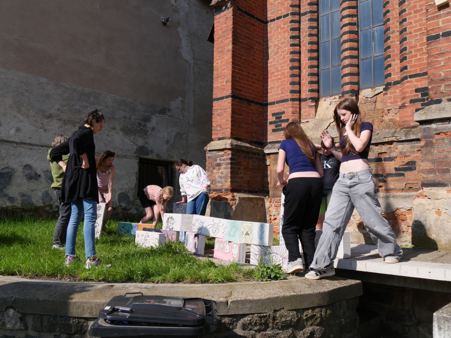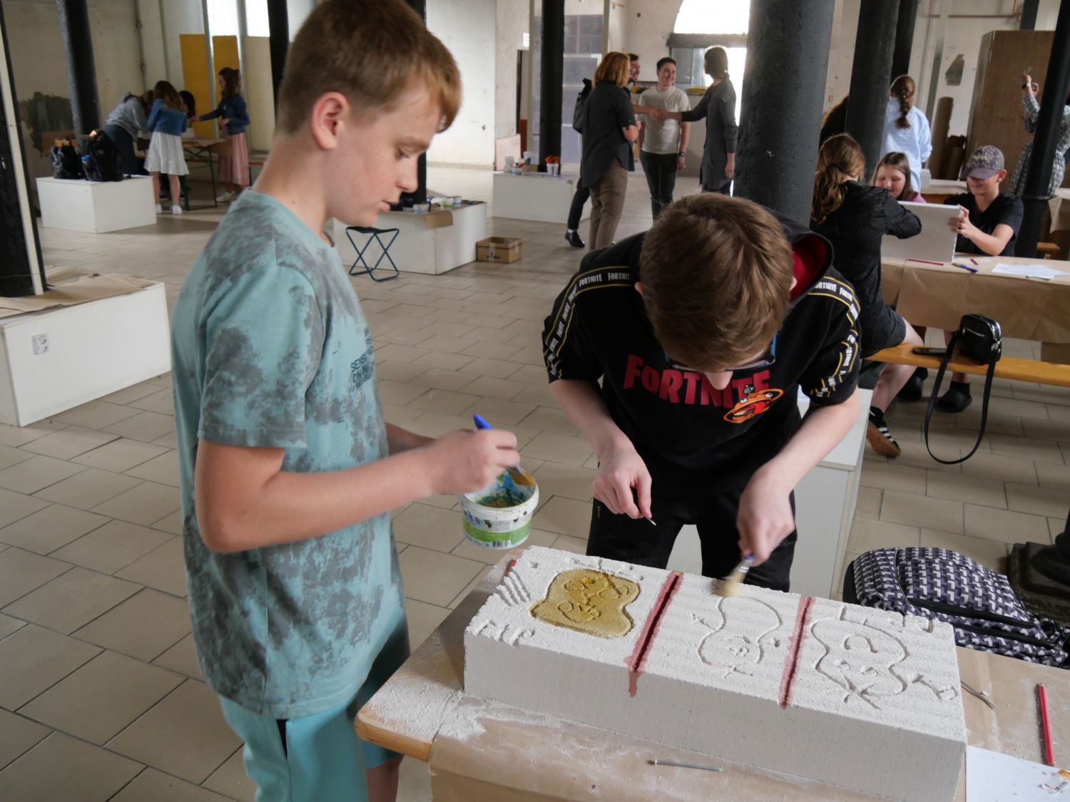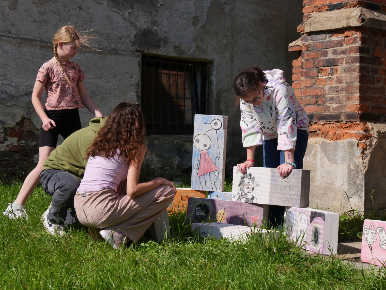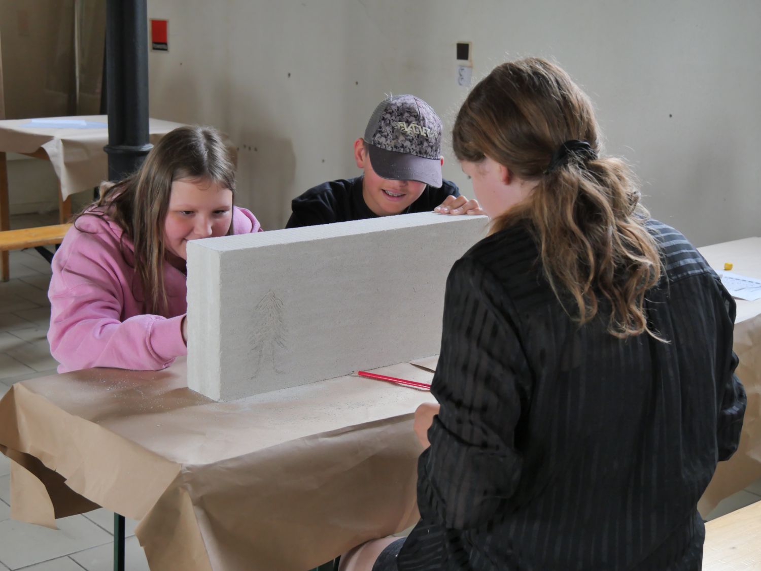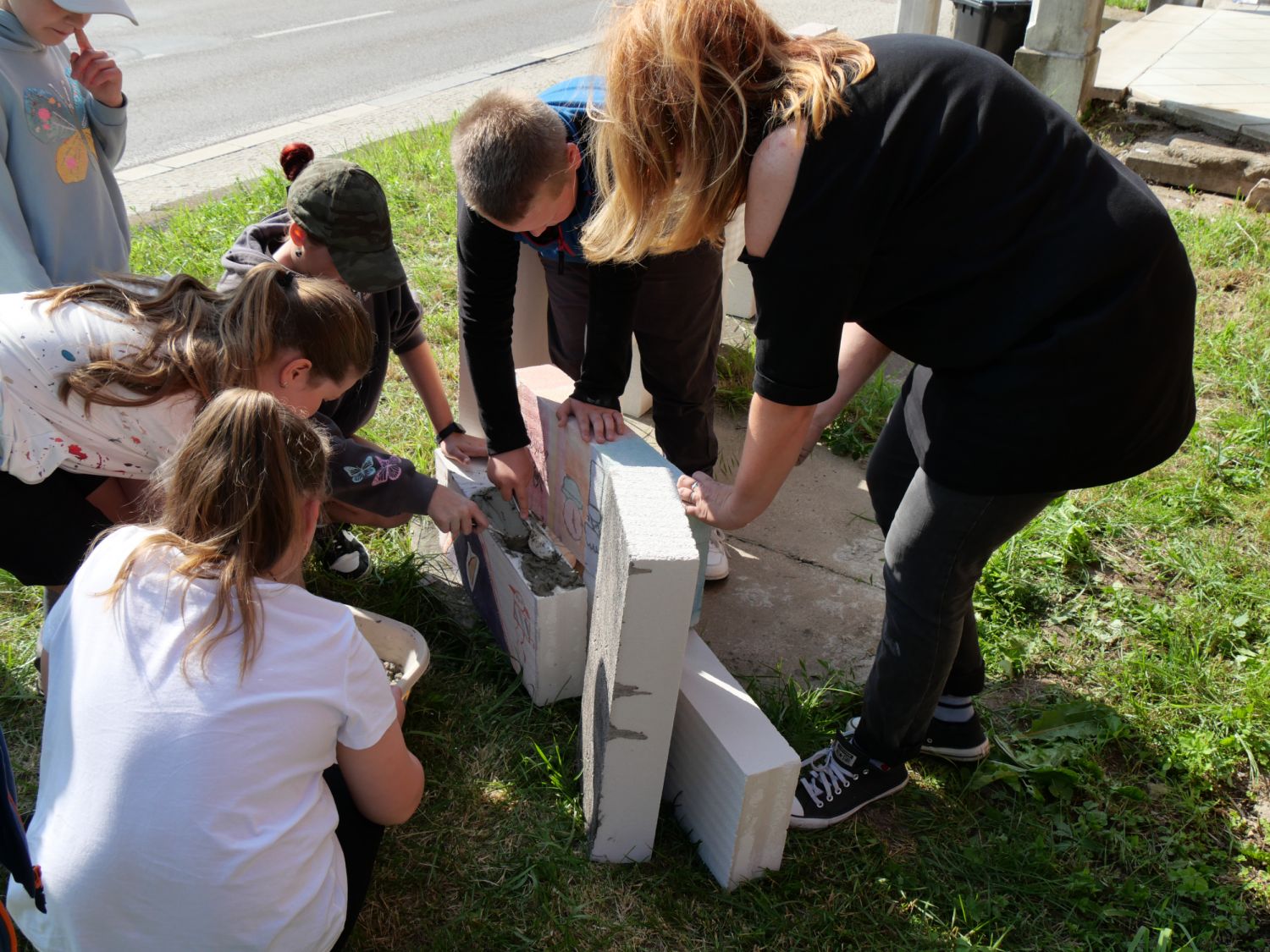 Náčrty pak přenesli na pórobetonovou cihlu a konečný obraz vyryli pomocí ostrých nástrojů. Ve finále pak svá díla barevně doplnili. Vznikla celá řada zajímavých obrazů. V synagoze děti pracovaly pod vedením Alice Trojanové, Marie Kudláčkové a Jany Štursové.