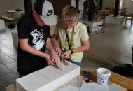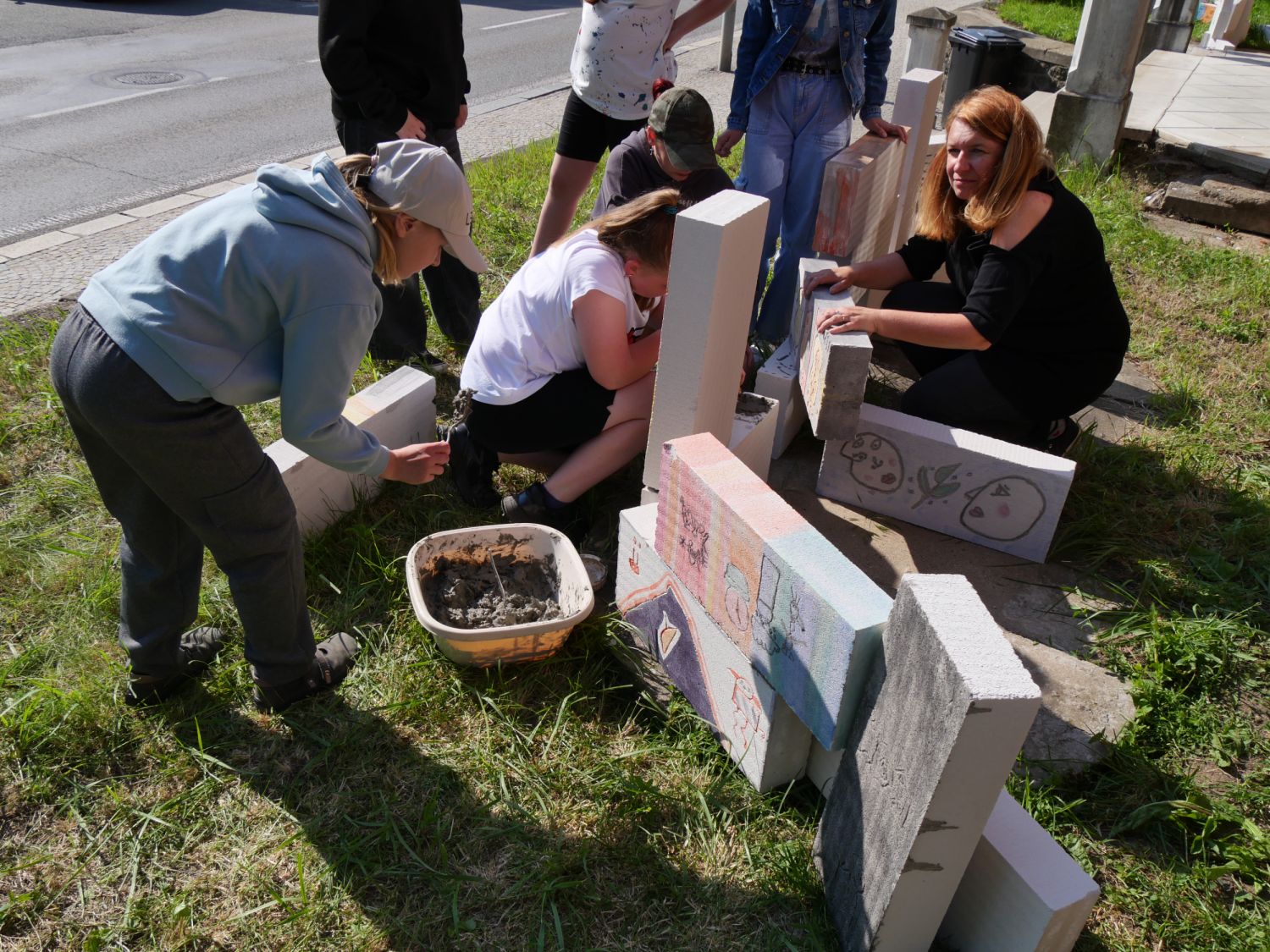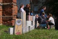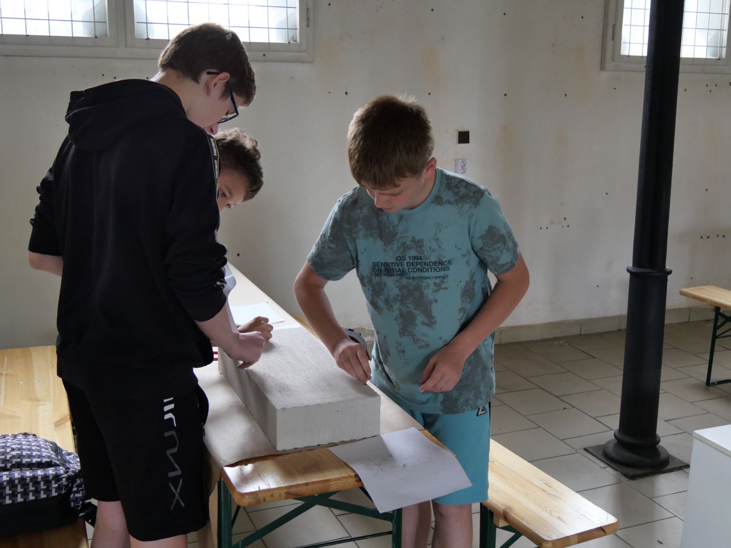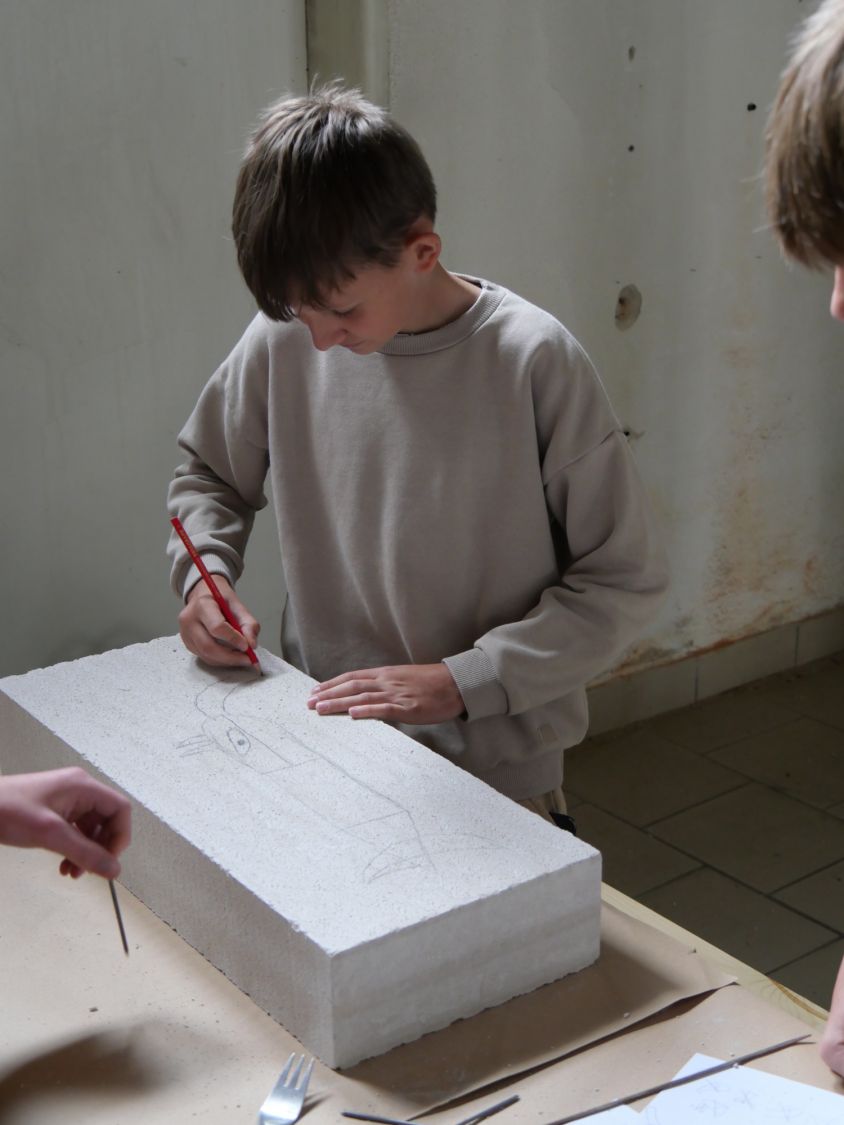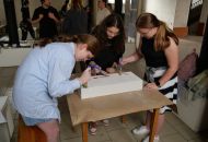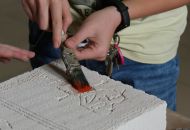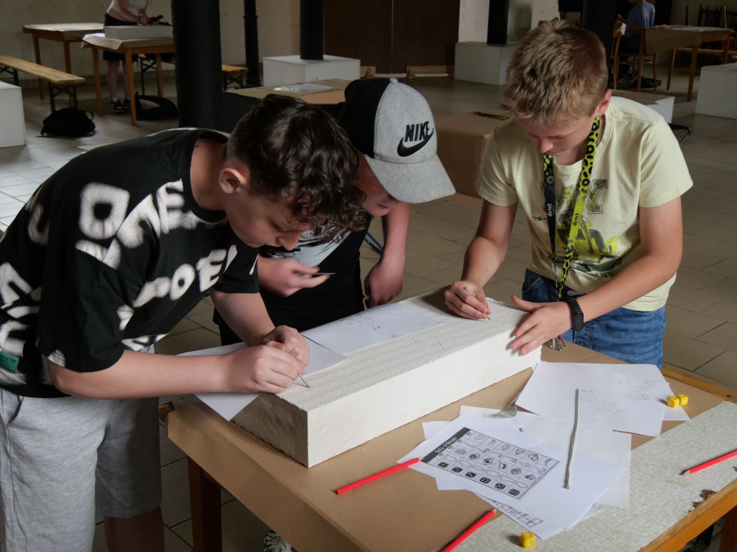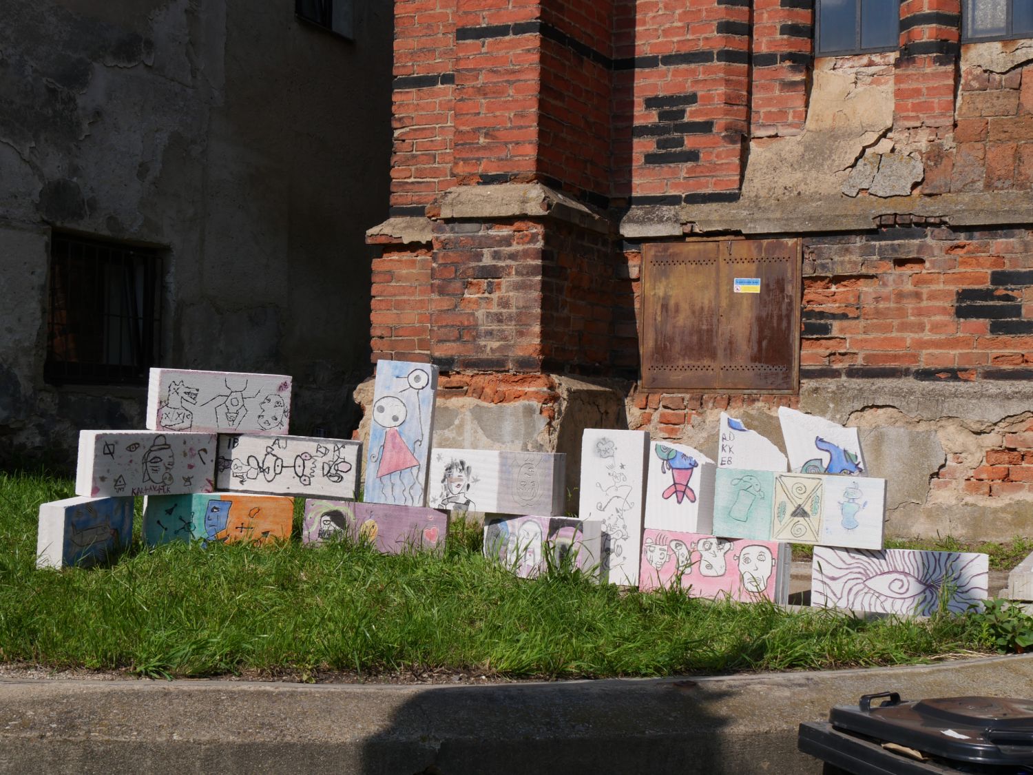 Náčrty pak přenesli na pórobetonovou cihlu a konečný obraz vyryli pomocí ostrých nástrojů. Ve finále pak svá díla barevně doplnili. Vznikla celá řada zajímavých obrazů. V synagoze děti pracovaly pod vedením Alice Trojanové, Marie Kudláčkové a Jany Štursové.