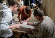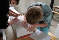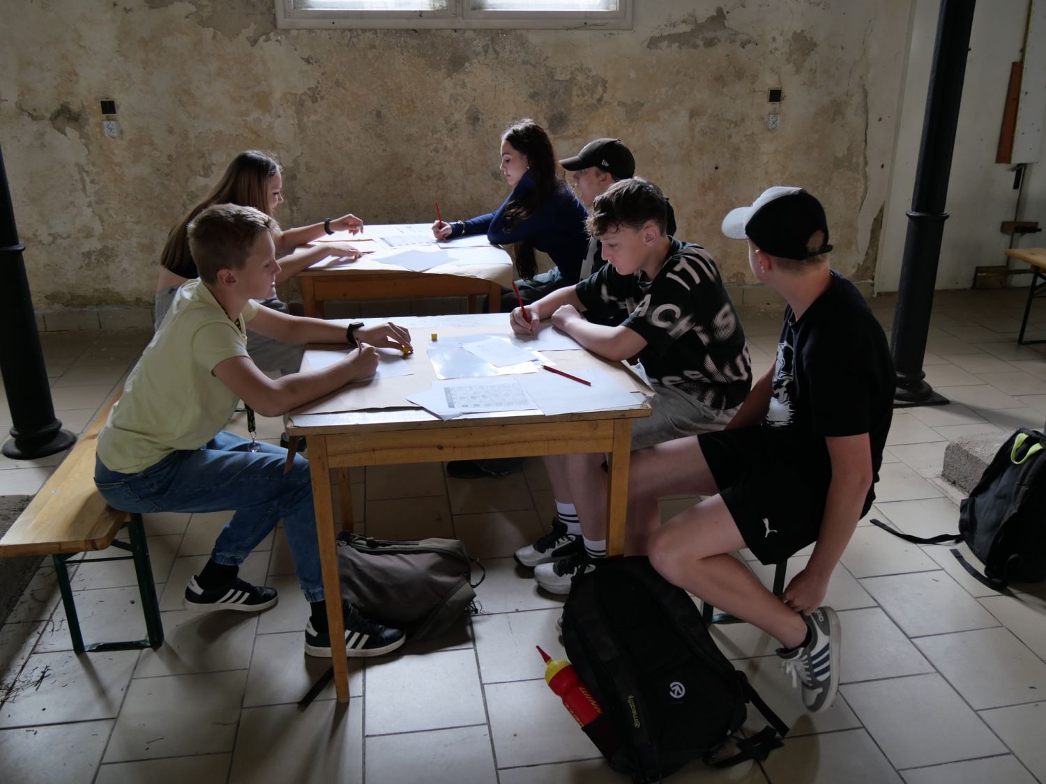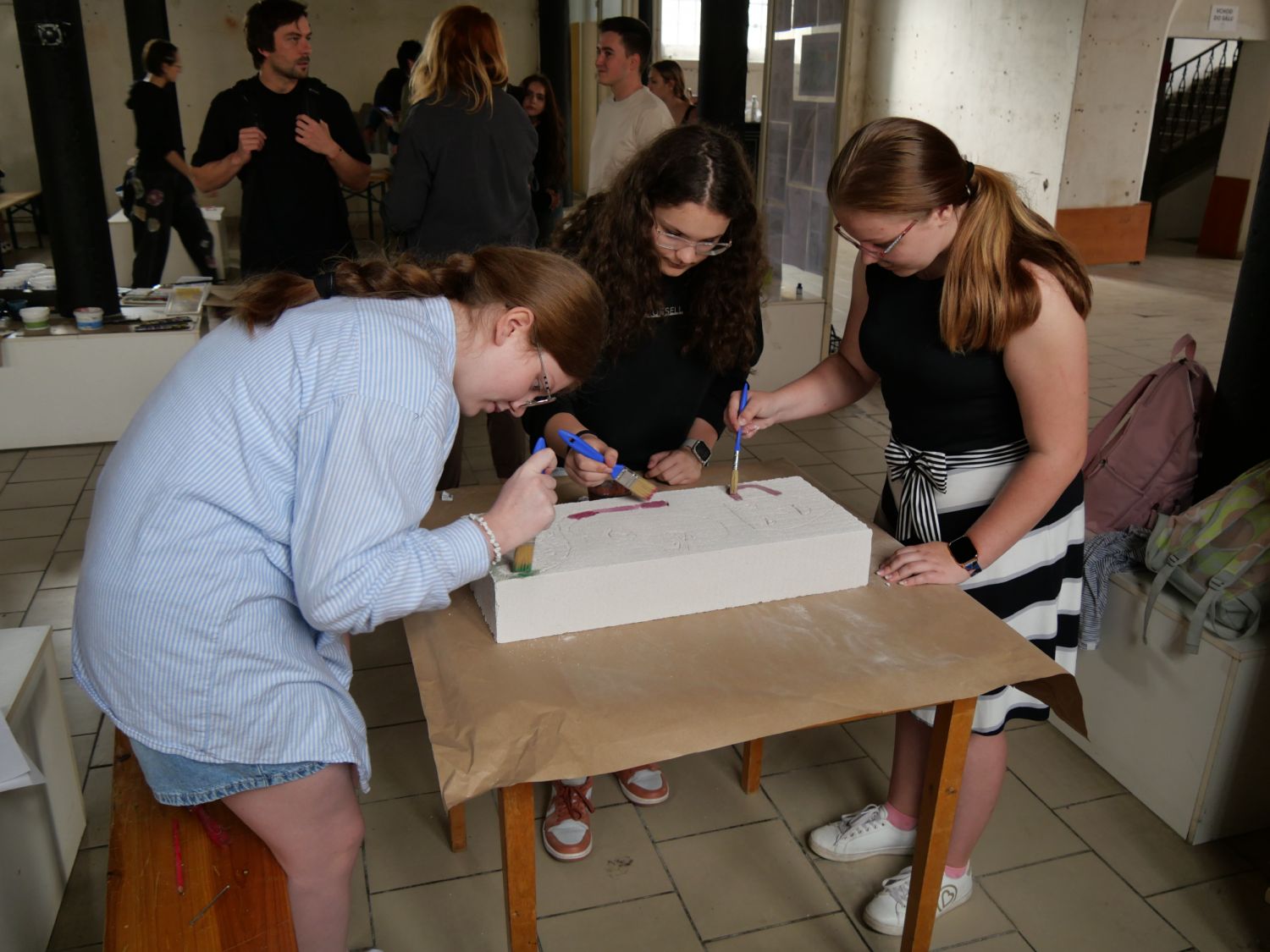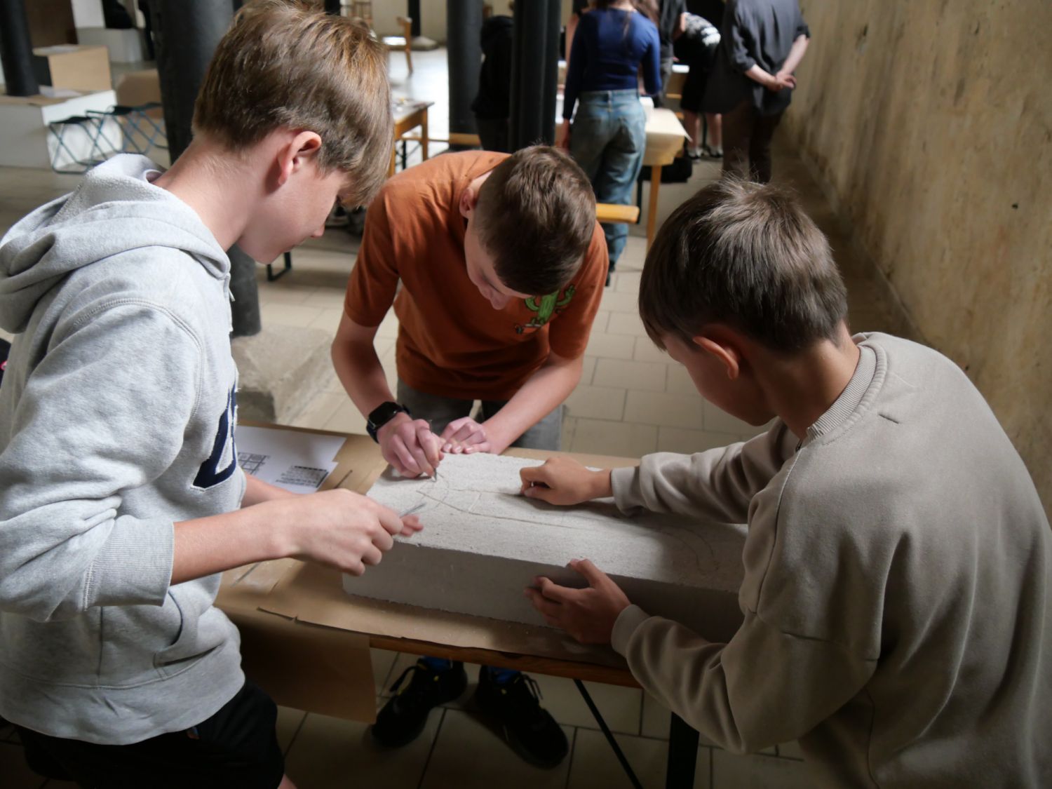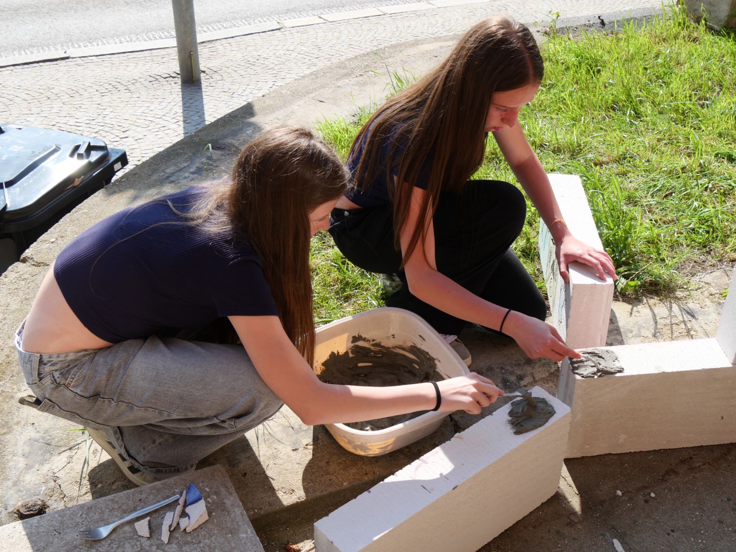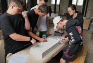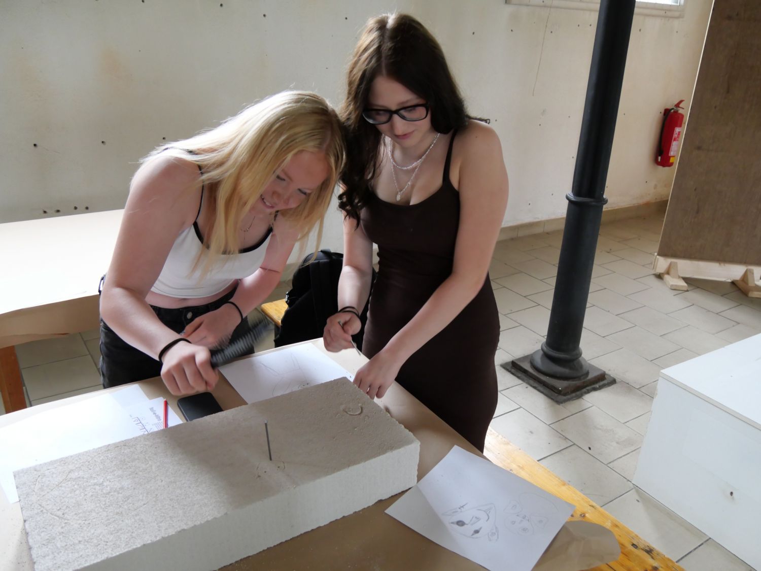 Náčrty pak přenesli na pórobetonovou cihlu a konečný obraz vyryli pomocí ostrých nástrojů. Ve finále pak svá díla barevně doplnili. Vznikla celá řada zajímavých obrazů. V synagoze děti pracovaly pod vedením Alice Trojanové, Marie Kudláčkové a Jany Štursové.