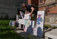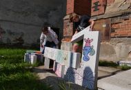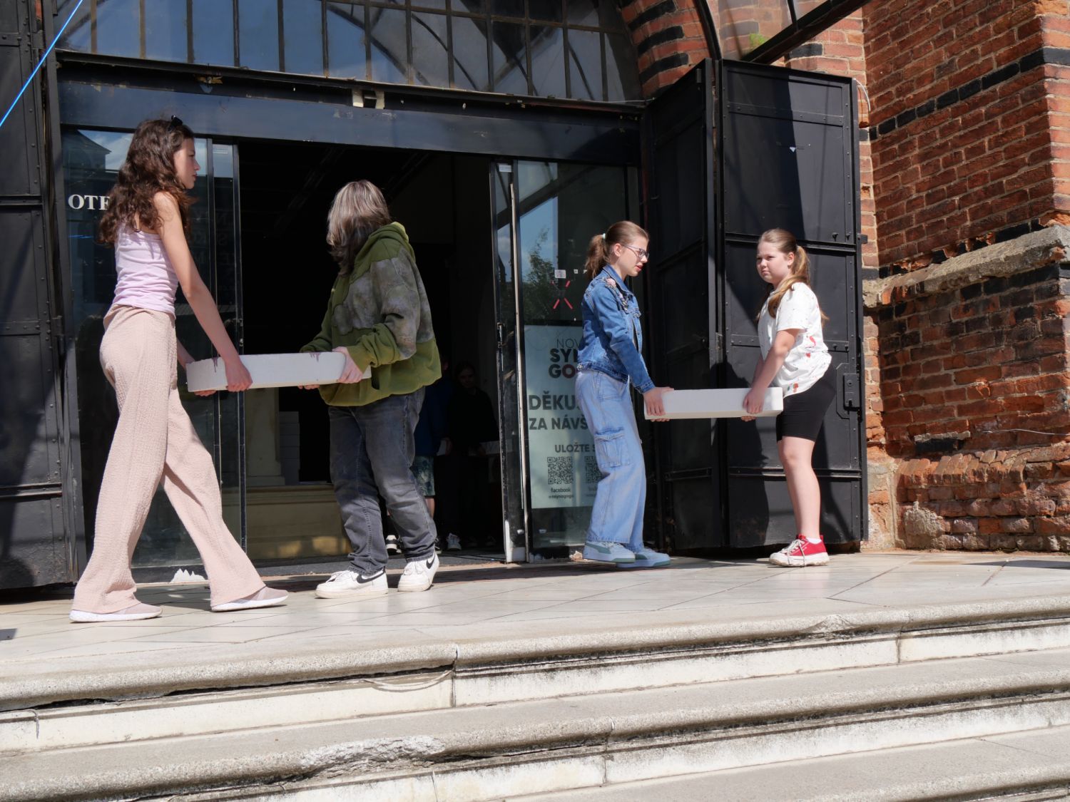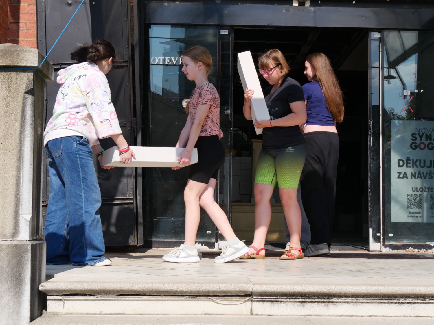 Ve středu a ve čtvrtek je pak děti nainstalovaly své výtvory před synagogu, kde vznikla improvizovaná galerie pod širým nebem.