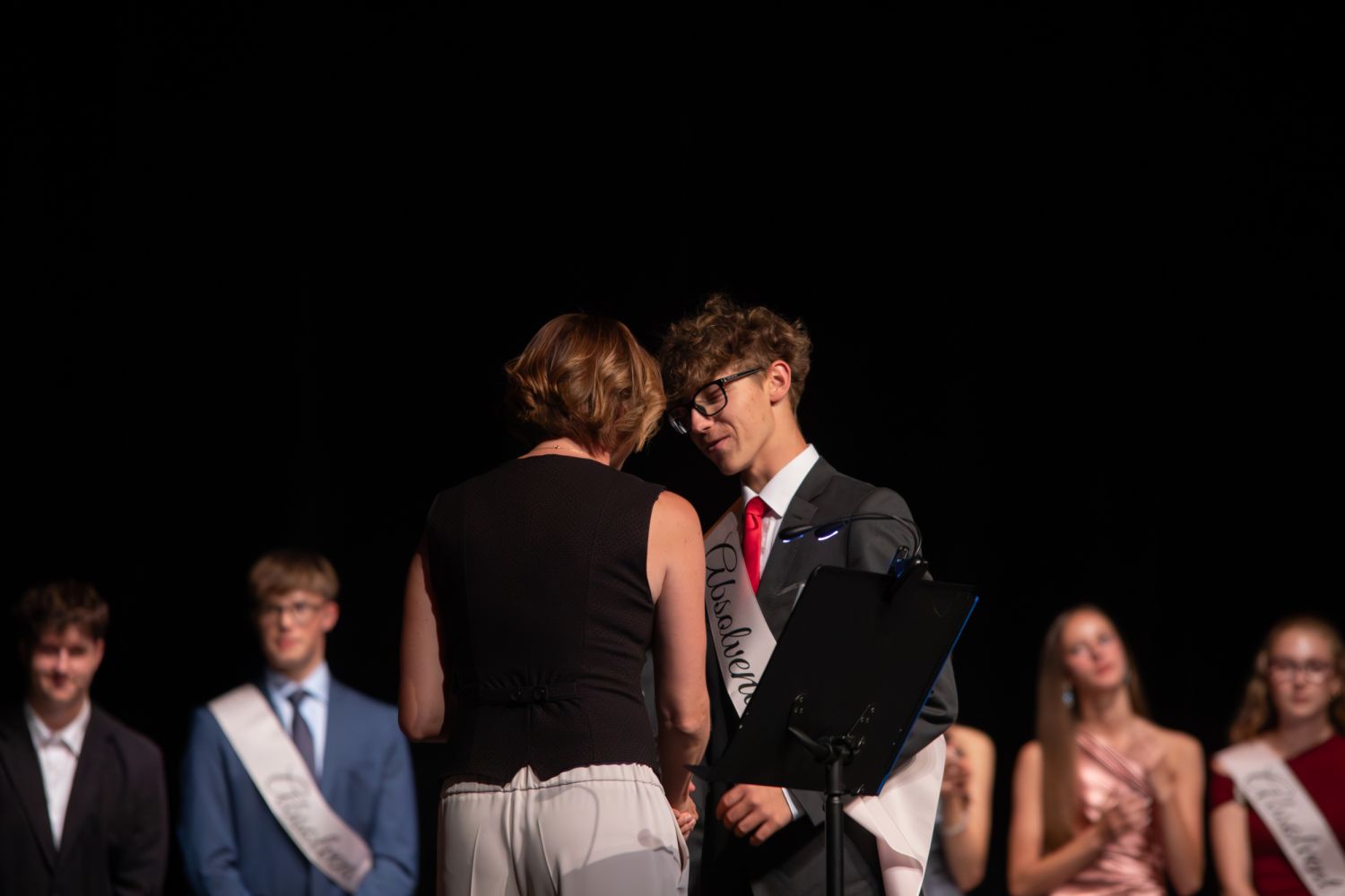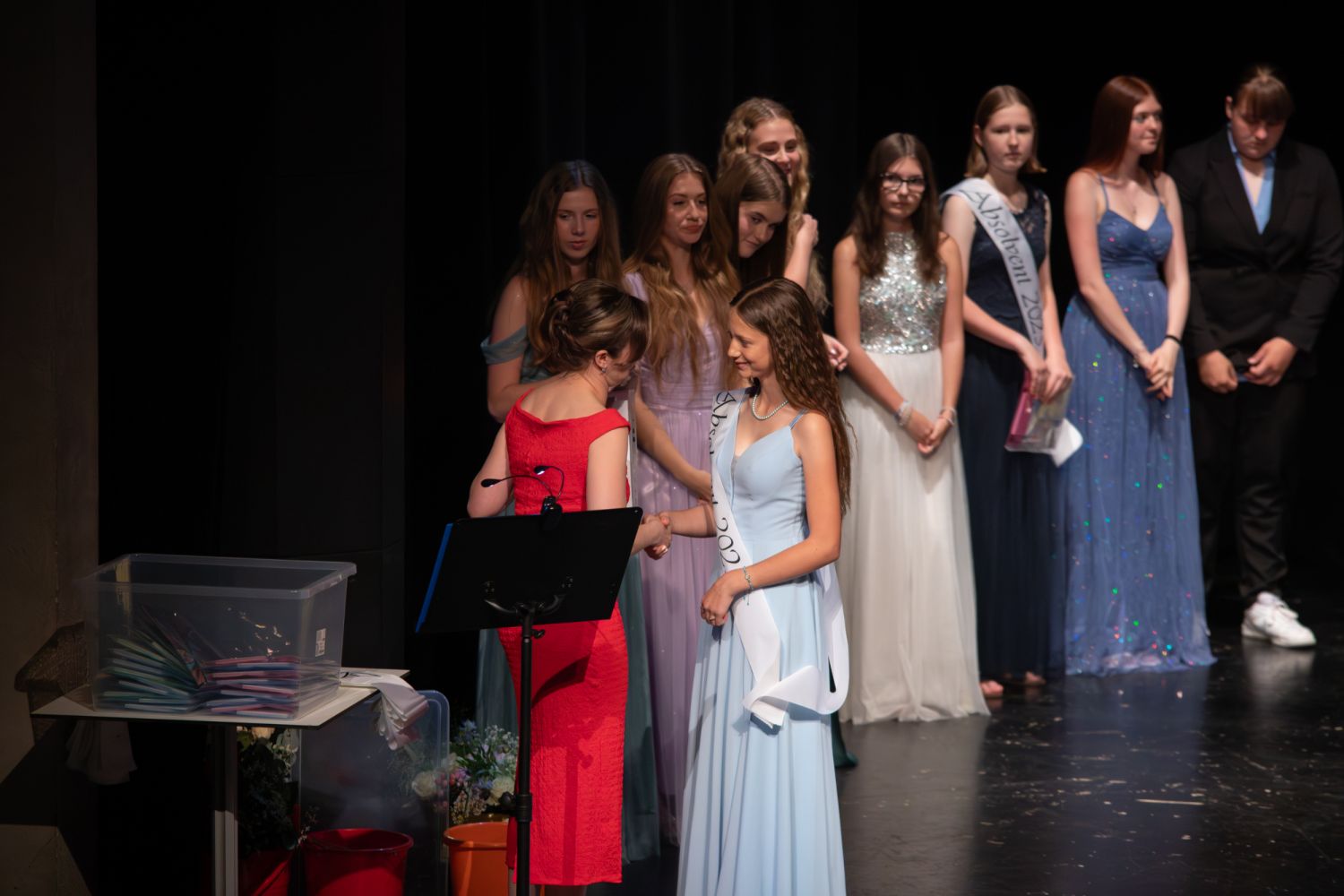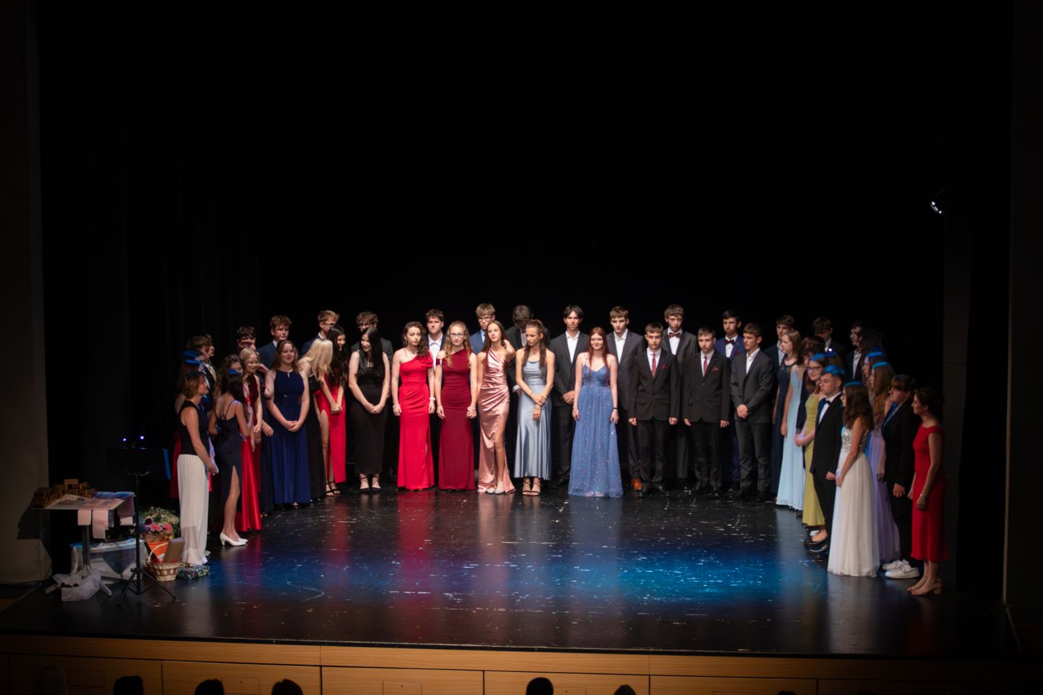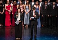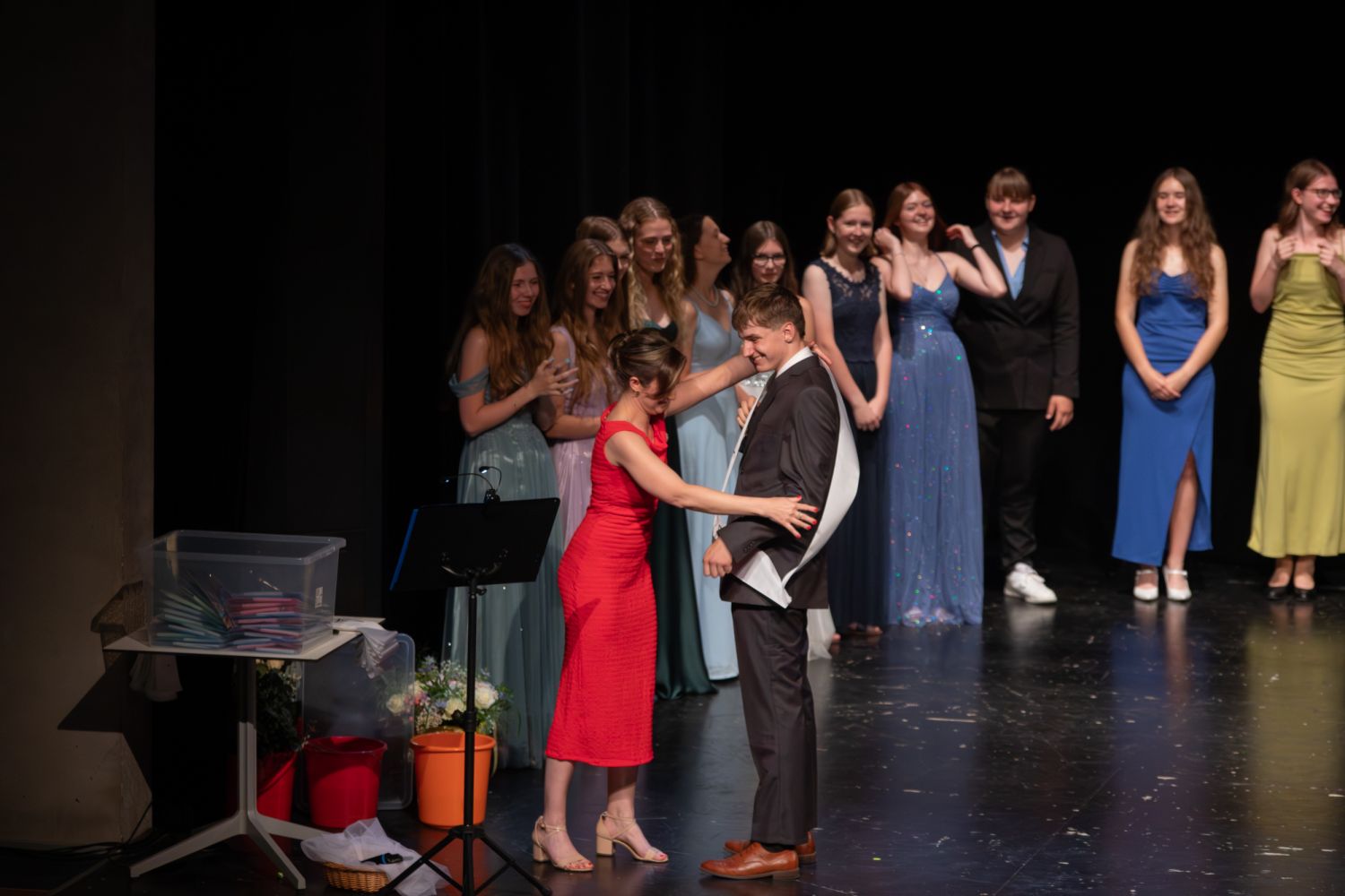 Kolem 15. hodiny zhasla světla ve velkém sále Jupiter clubu a zakončení školního roku mohlo začít. Na pódiu se nejprve ukázaly obě třídy 9. A i 9. B. Po úvodních slovech ředitelky školy Evy Bednářové a starosty města Alexandrose Kaminarase oficiálně započalo slavností rozloučení včetně předání vysvědčení, šerp a drobných dárečků. Děti na oplátku poděkovaly všem svým učitelům, uklízečkám a školníkovi květinami.