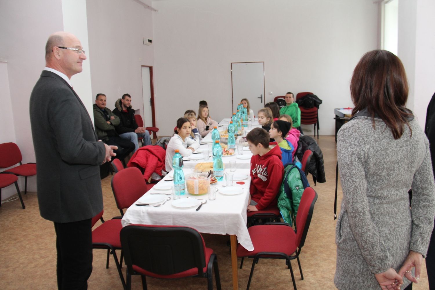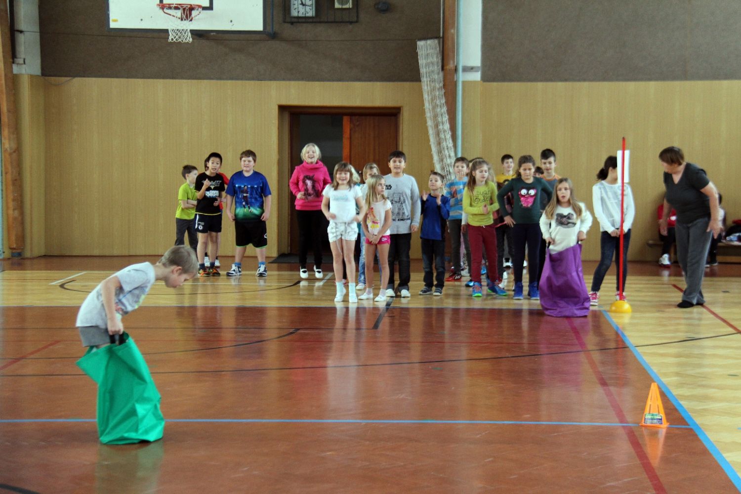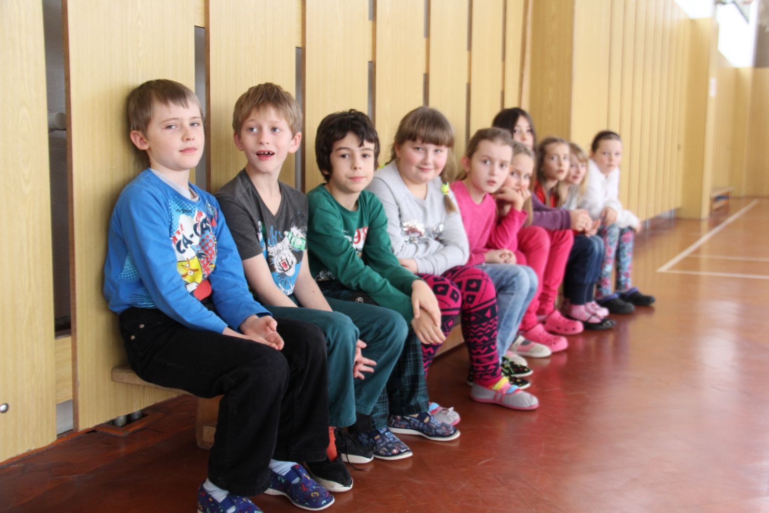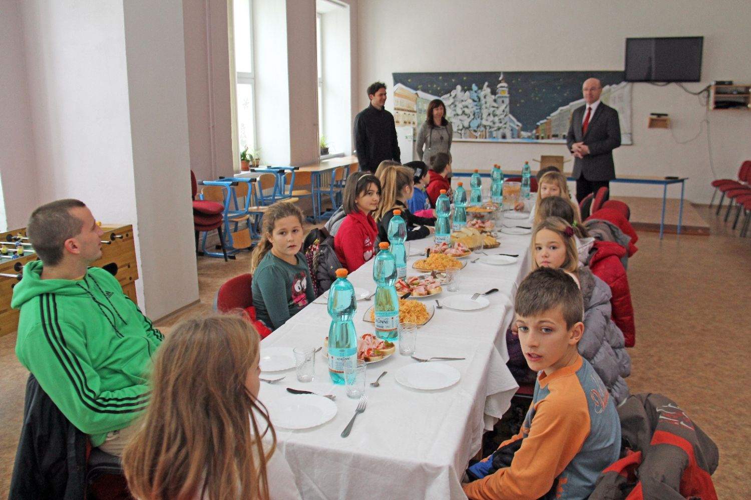 Při tom všem se seznamují se zdejšími dětmi a jejich výukou ve škole. Žáci ze ZŠ Komenského si pro ně se svými vyučujícími dnes připravili program – zejména různé soutěže v tělocvičně u kostela. Baví se při nich všichni společně. Možná jim zbude čas i na prohlídku školy.