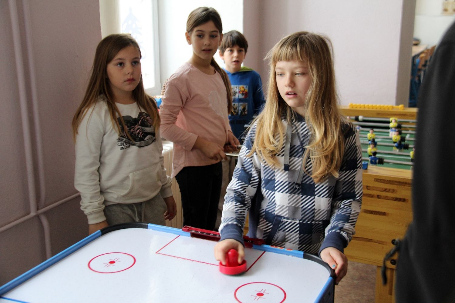 Děti z chorvatského Tisna, které jsou ve Velkém Meziříčí na týdenní návštěvě, dnes tráví čas v základní škole na Komenského ulici.