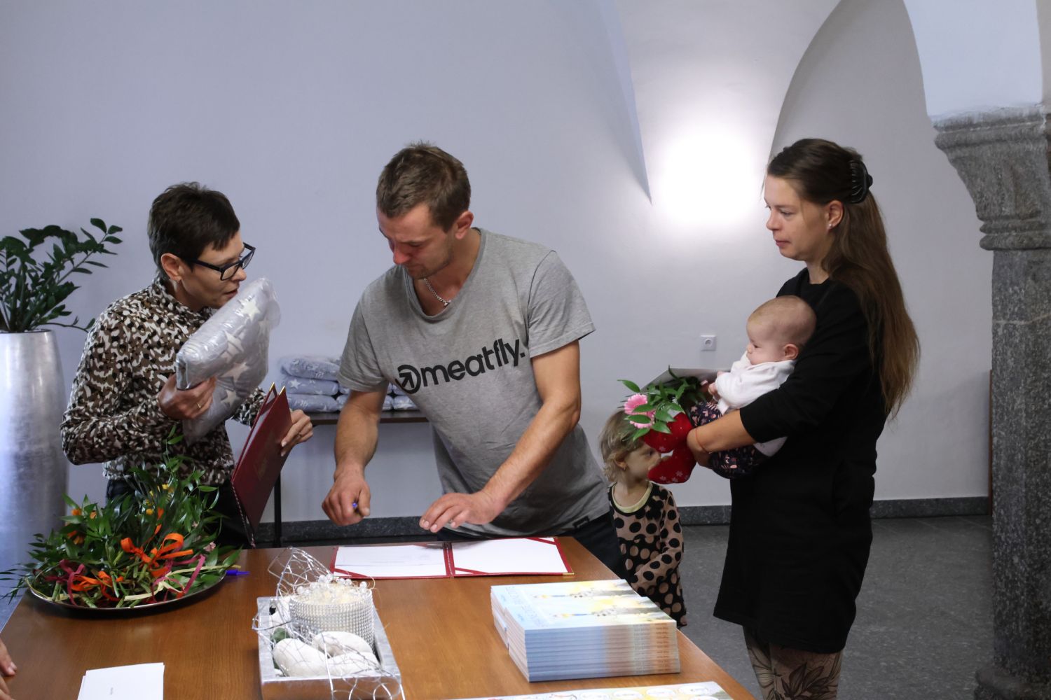 Šestnáct malých dětí zažilo v sobotu 18. října svůj první slavnostní okamžik. Starosta města Alexandros Kaminaras je přivítal mezi občany města Velké Meziříčí.