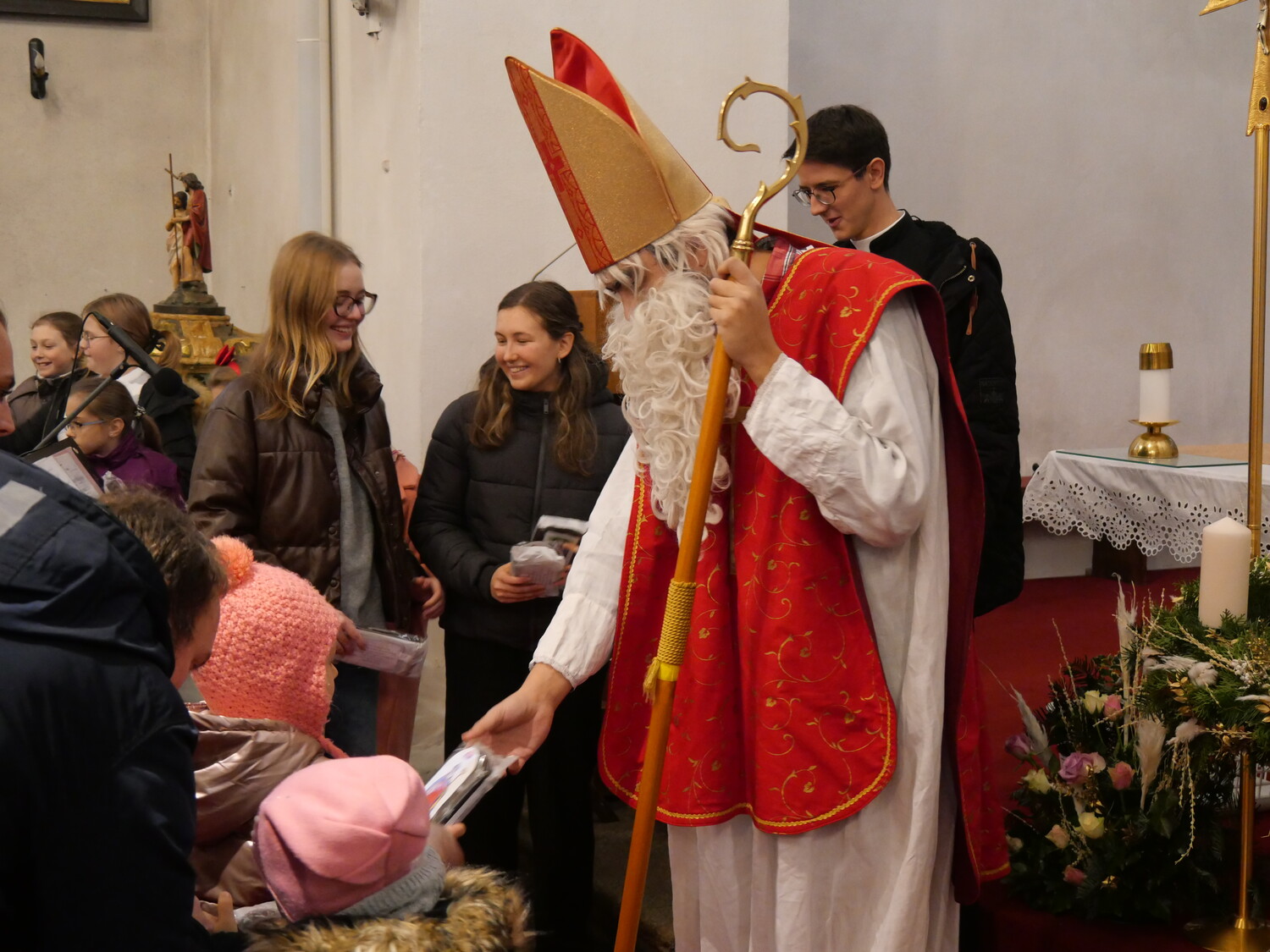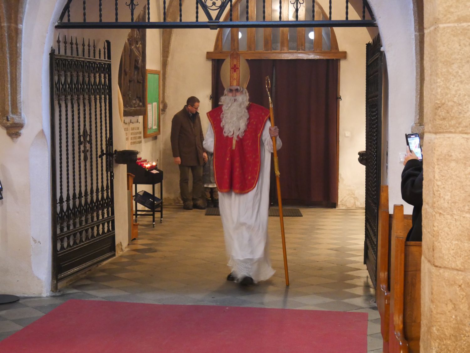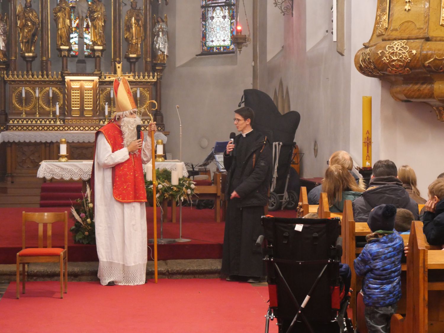 Stalo se tak v neděli 7. prosince ve dvě hodiny odpoledne. Kostel se krátce před touto hodinou zaplnil dětmi, které pak svým hlasitým voláním svatého Mikuláše přivolaly. Světec byl hned podroben příjemnému interview. Poté dětem předal své poselství a dárek v podobě velkého mikulášského perníku s modlitbou, kterou se pak děti s vzácným hostem rozloučily.