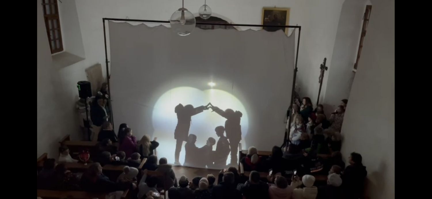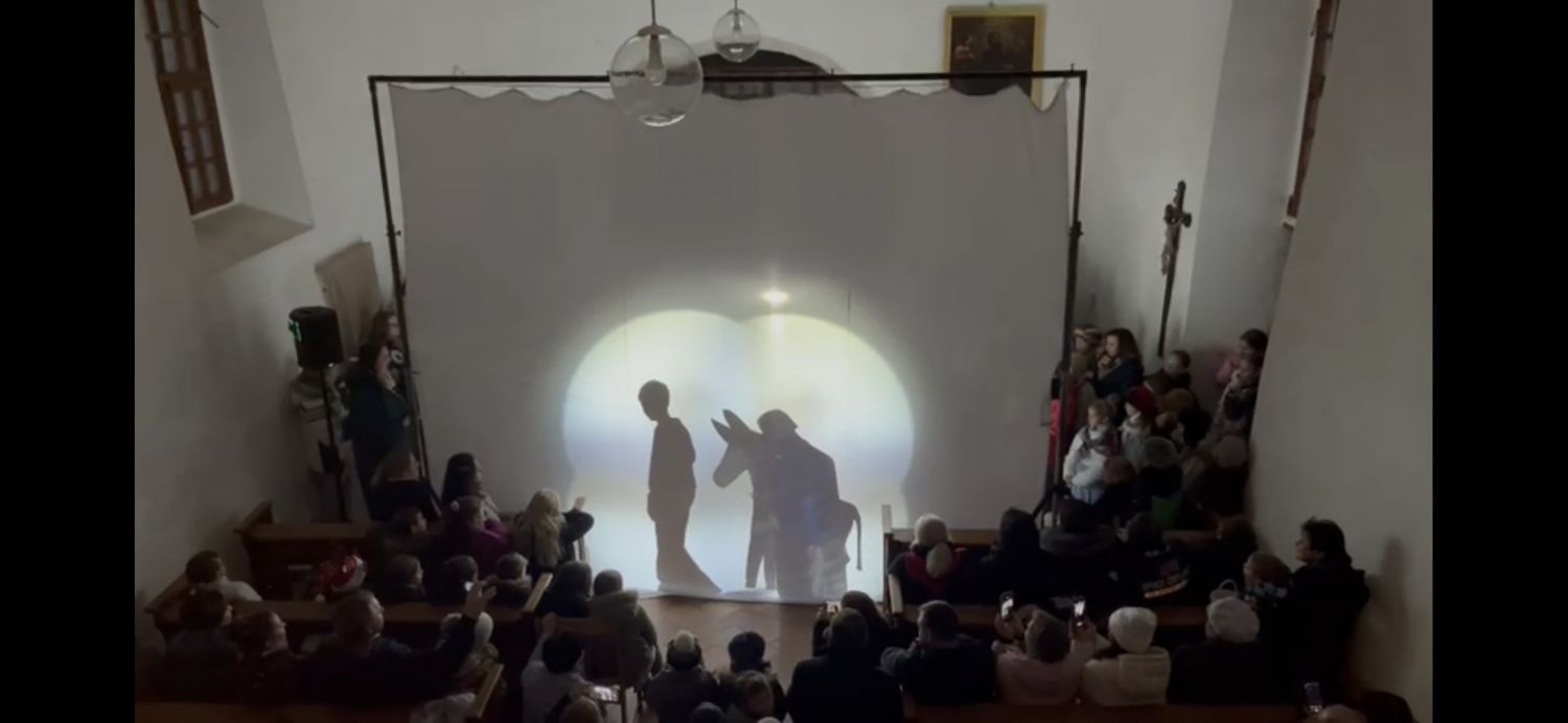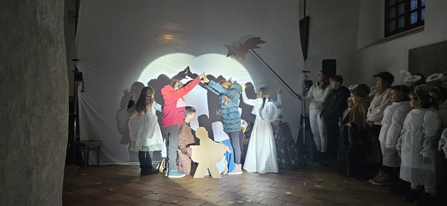 Jedna z nejpůsobivějších scén byl ten starý a zároveň stále nový příběh o narození toho, který pro nás vymyslel Vánoce – totiž Ježíška – ztvárněný jako stínohra. Děj, jak nám jej zachytili evangelisté, hrály děti za osvětlenou oponou a byl „vyprávěn" ostatními spolužáky zpěvem přetextované písně Halelujah.
