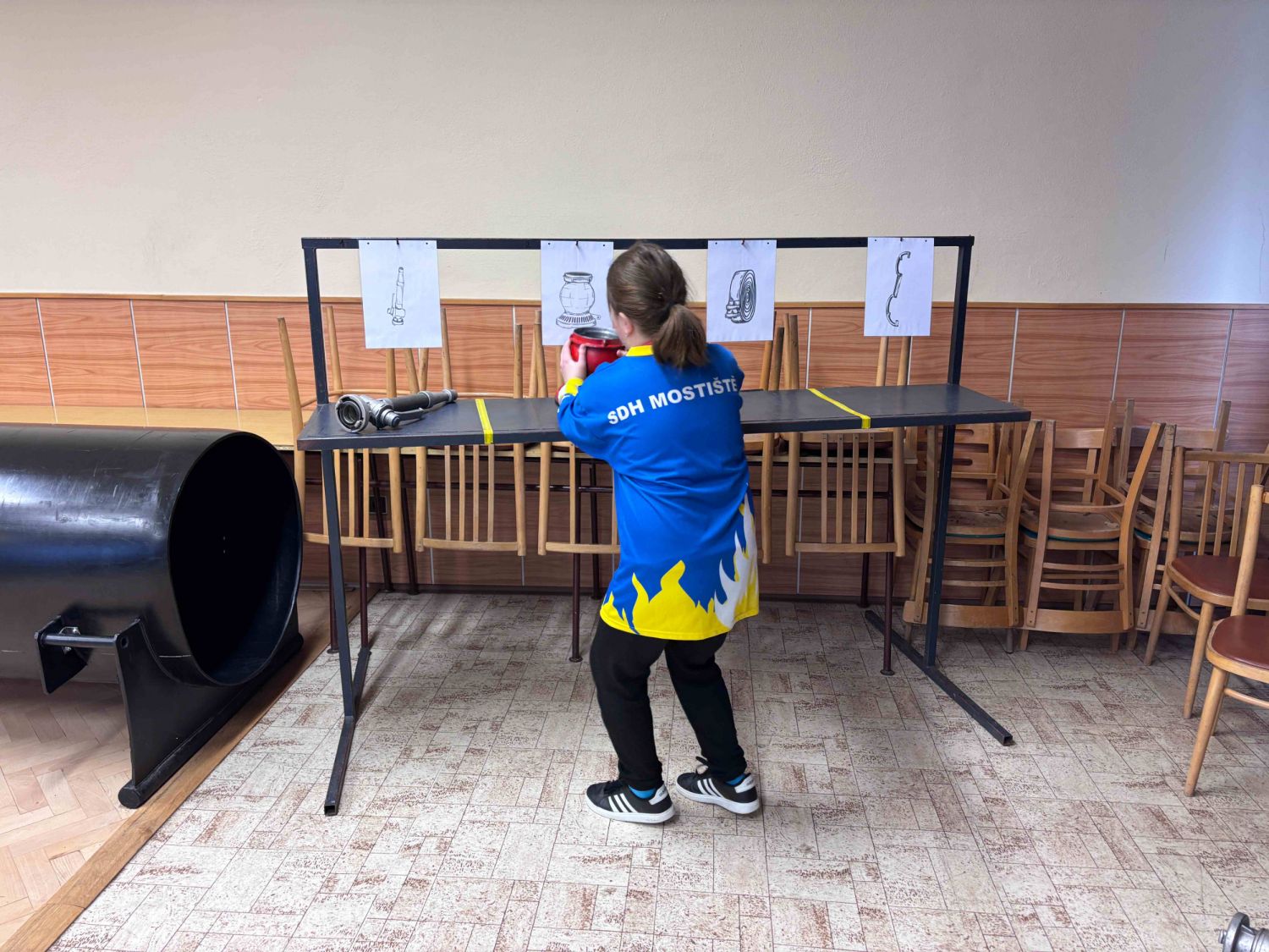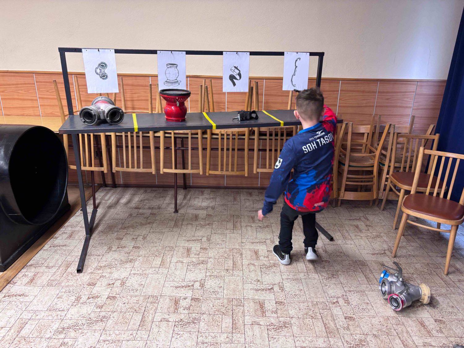 Hlavní „uzlová" soutěž byla ještě doplněna další disciplínou. A to technickým stojanem, kde závodníci přiřazovali technické požární prostředky k obrázkům na technickém stojanu. Opět se jednalo o dovednostní a časovou soutěž. Celá soutěž probíhala dvoukolově. Obě části naší soutěže v podstatě vychází z celostátní hry – soutěže pro Mladé hasiče, hry Plamen. Hra Plamen se těší více než padesáti leté historii. V jedné ze soutěžních disciplín této hry se nachází oba stojany, jak technický, tak uzlovací, a děti, tedy mladí hasiči v ní plní stejné úkoly jako v naší soutěži. Tyto uzlové štafety jsou tedy takovým částečným tréninkem na velkou celostátní soutěž.