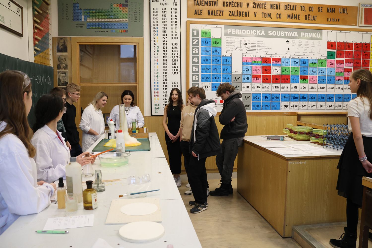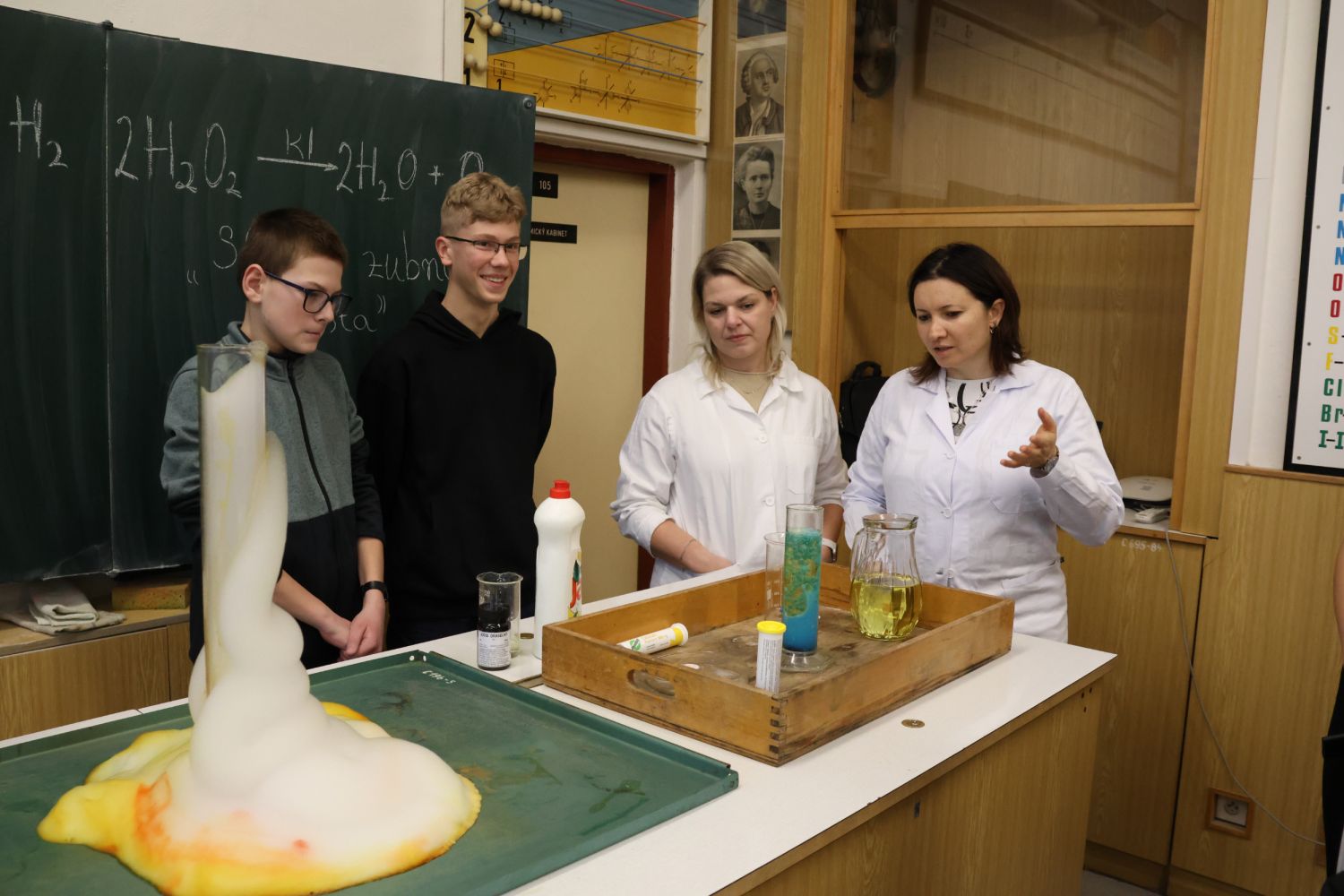 Návštěvníci si užili i spoustu zábavy nejen při pěveckém vystoupení, ale třeba i při prezentaci atraktivních pokusů v učebnách chemie a fyziky, vyplňování kvízů, prohlídce historických zoologických preparátů v učebně biologie a podobně.