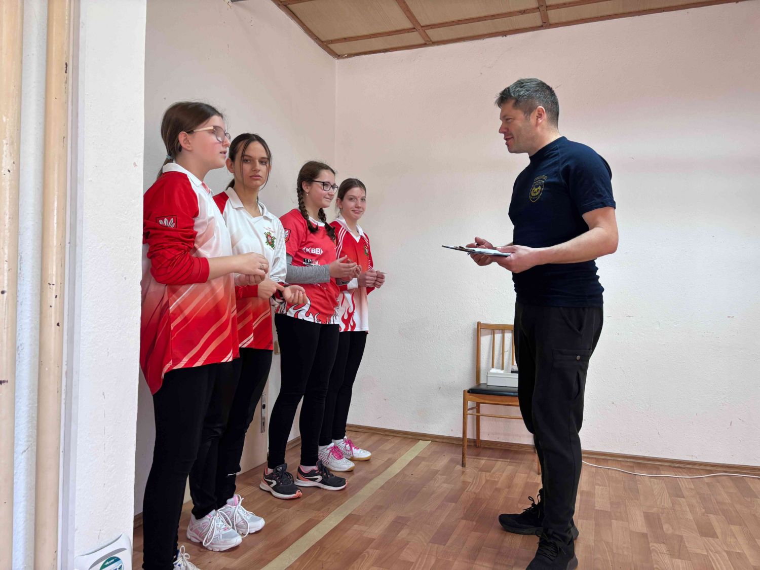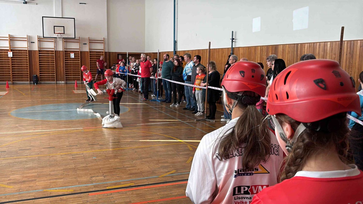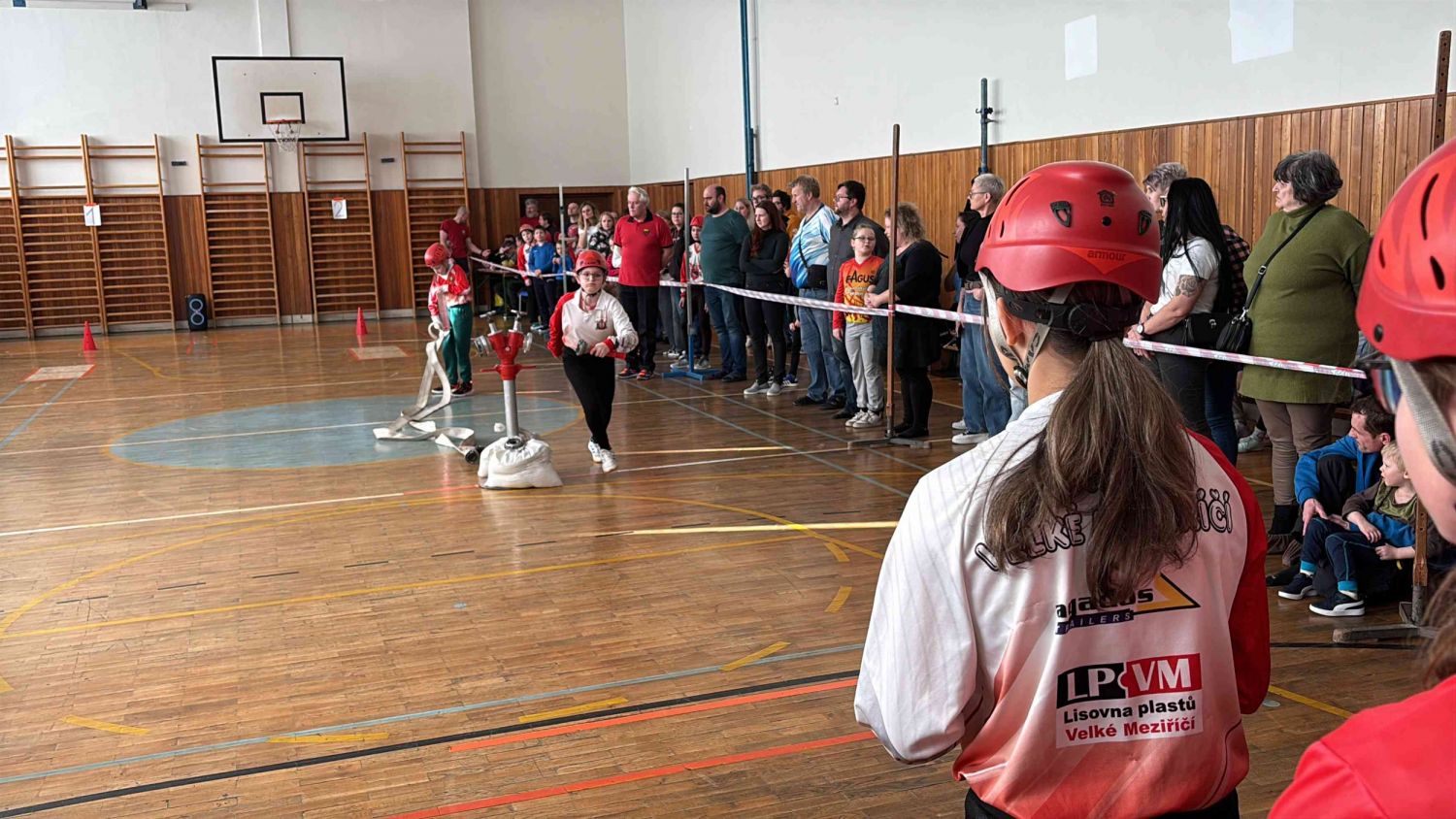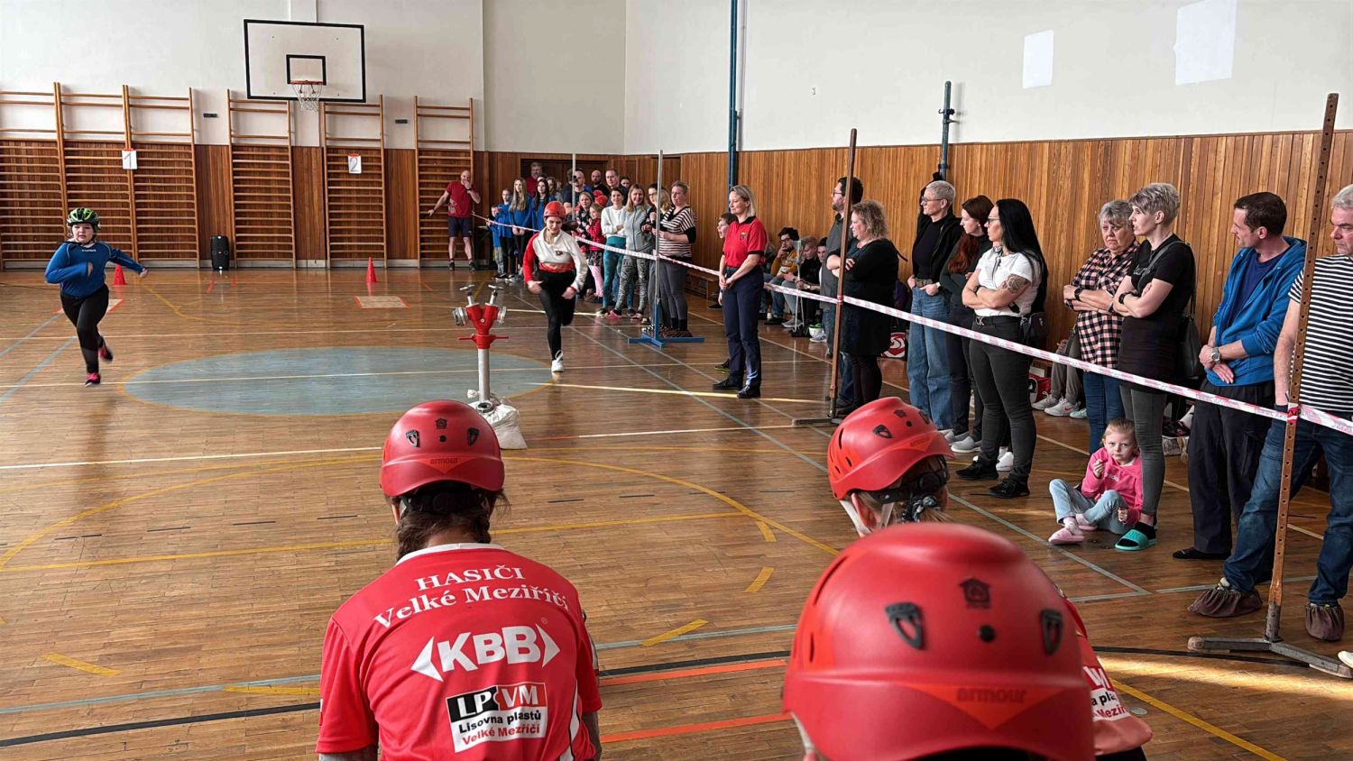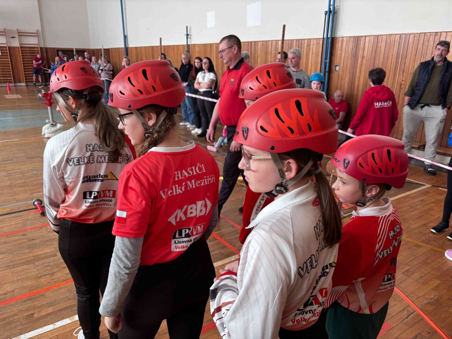 Po snězení dortu jsme se pouze s týmem starších žáků vydali na druhou odpolední soutěž dne, do Moravských Budějovic. Zde probíhal 14. ročník Moravskobudějovického rytíře. Probíhala zde soutěž – Štafeta požárních dvojic. Disciplína soutěže opět vychází z celostátní soutěže Plamen. Soutěžní družstvo sestává z pěti členů, kdy první je velitel a jeho úkolem je na dané trati naběhnout celému družstvu co nejrychlejší čas. Po jeho návratu na startovní čáru již na dráhu vybíhá první dvojice a po cestě si berou hadici a proudnici. První z dvojice na dráze hadici rozhodí a připojí k hydrantovému nástavci, druhý z dvojice na hadici připojí proudnici a hadici roztáhne. Oba potom obíhají metu na konci dráhy a vrací se na start. Po jejich doběhu startuje druhá dvojice. Ta po oběhnutí metu na konci dráhy hadici přeloží napůl, odpojí proudnici a odpojí od hydrantového nástavce. Druhý z dvojice má za úkol hadici smotat a doběhnout s ní do cíle. I tato soutěž probíhala dvoukolově. Disciplínu jsme dokončili bez trestných bodů, ale náš čas 42.23 s nakonec stačil pouze na hezké 6.místo. I tak jsme po celém soutěžním dnu domů odjížděli spokojeni s hezkými výsledky a pěknou prezentací našeho Sboru a domovského města.