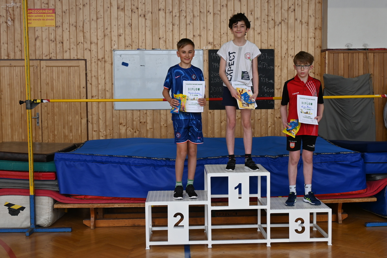 Blamáž mizerného zájmu a nechuti domácích chlapců o soutěžní atletickou disciplínu nakonec zachránili v kategorii 6. tříd soutěžící z Tasova. Ti ukázali svoji soutěživost, radost z pohybu a předvedli i nejlepší výkony. Prvenství nakonec při shodném výkonu 130 cm uhájil Matěj Mikulášek, druhý na pokusy byl Mikola Klim, domácí barvy „zachránil" s velkým odstupem Jakub Krejčí 115 cm.