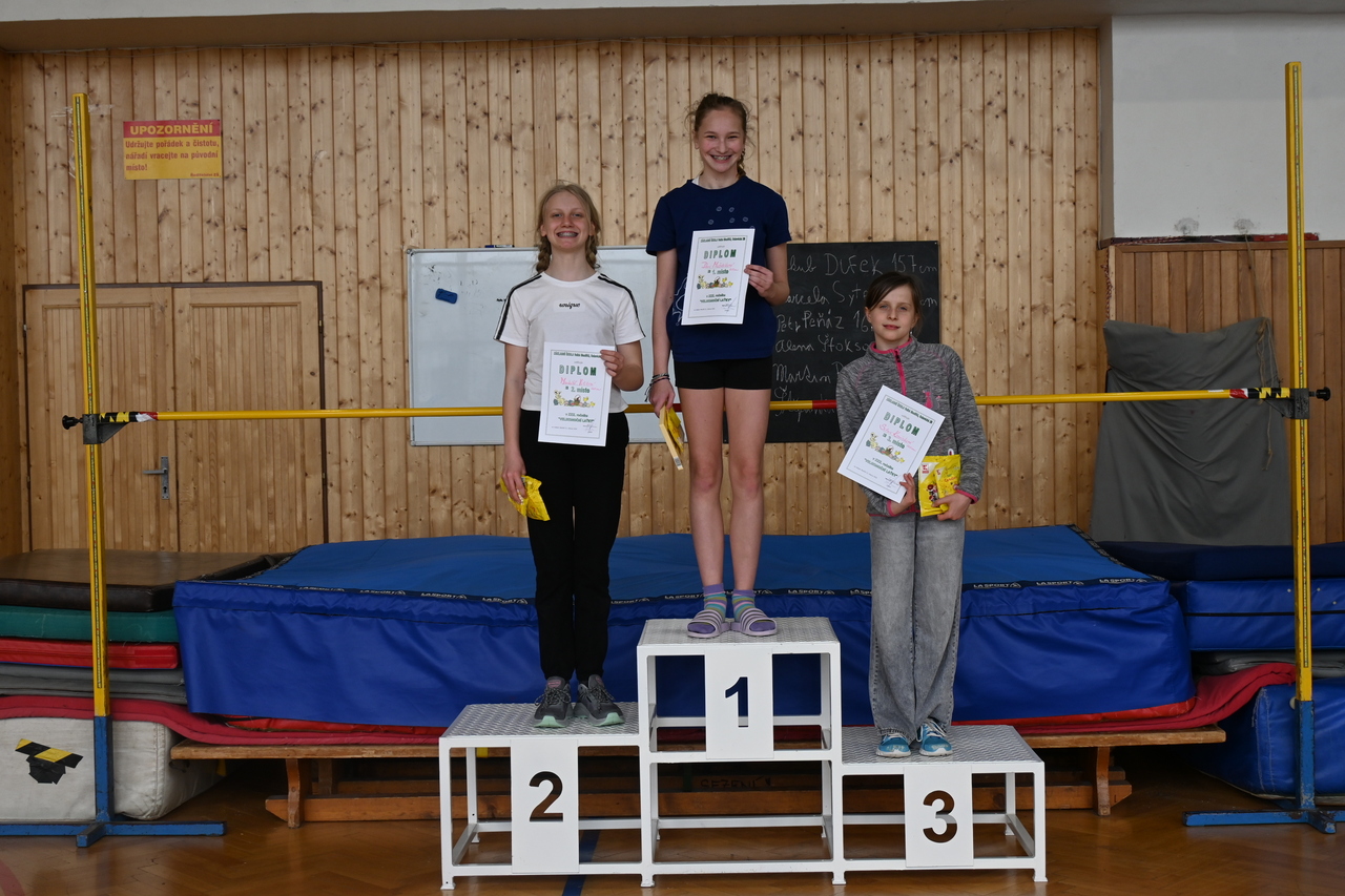V nejpočetnější kategorii dívek 5. tříd, čítající 19 závodnic si nejlépe vedla Daria Matušíková, která jako jediná zdolala 125 cm, o pět centimetrů za ní zaostala v pořadí druhá Markéta Vilišová, třetí místo obsadila po horším zápise nezdařených pokusů Silvie Komínková.