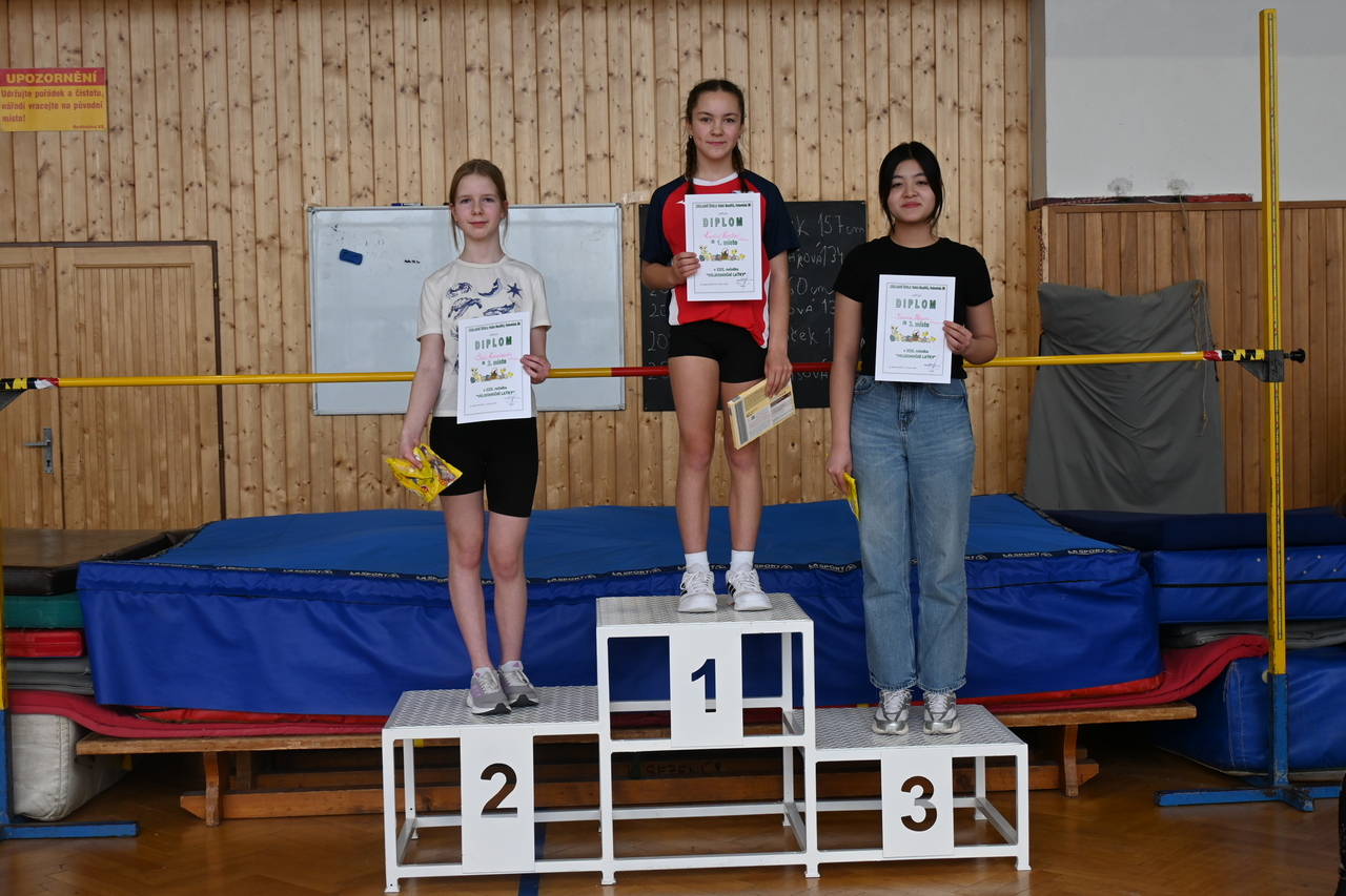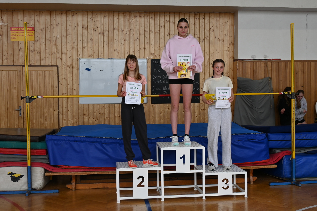 Nejvyrovnanější a nejhodnotnější výkony předvedla mezi devíti závodnicemi 7. tříd vítězka Elen Světelská 137 cm, která se pokoušela i o vyrovnání letitého rekordu mítinku z let 2006 a 2023 v hodnotě 141 cm, leč prozatím marně. O druhém a třetím místě opět rozhodovaly nezdařené pokusy na předchozích výškách. Nakonec výkonem 132 cm druhá skončila tasovská Emma Marini před nadějnou velkomeziříčskou atletkou Vanesou Prokopovou.