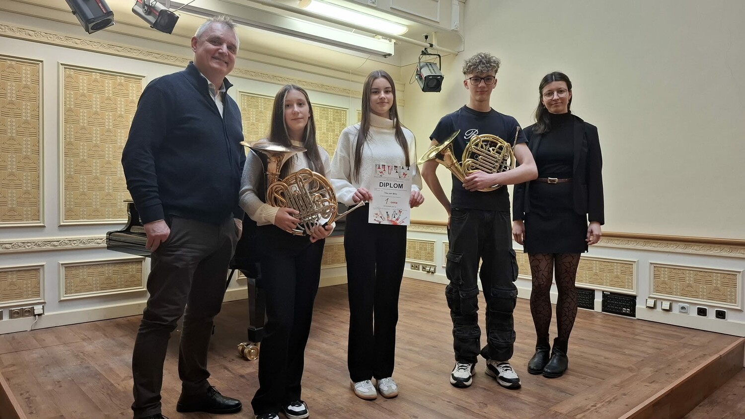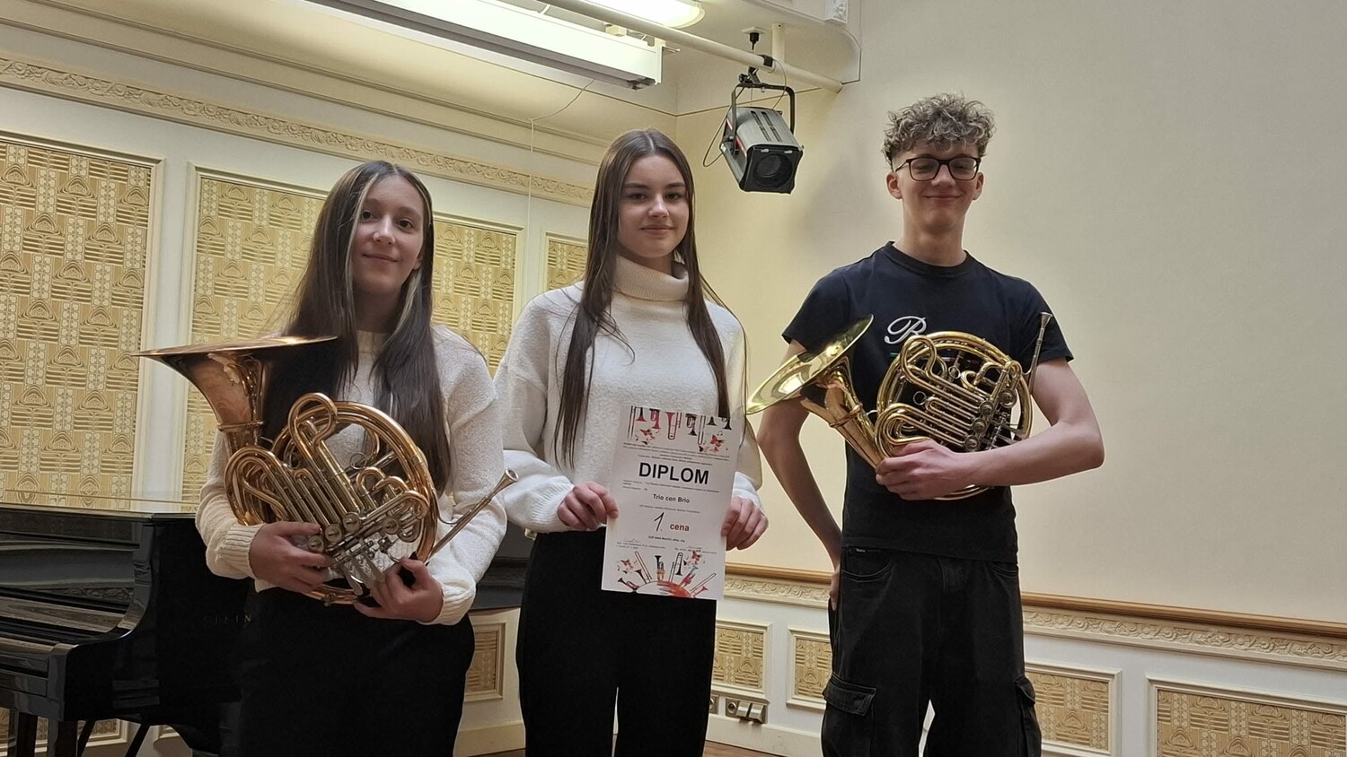 TRIO CON BRIO ve složení Vít Nedoma (lesní roh), Kateřina Nedomová (lesní roh) a Barbora Tomandlová (klavír) dosáhlo ve velké konkurenci vynikajícího úspěchu a po výborném výkonu získalo 1. místo s postupem do celostátního kola. Moc gratulujeme a děkujeme za skvělou reprezentaci naší školy i Města Velké Meziříčí. A velké díky a gratulace patří také jejich pedagogům Bc. Petře Mackové, Dis. a Radovanu Hajnému za výbornou přípravu.