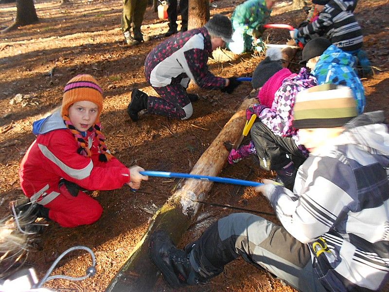 Ve dnech 25. 1. až 28. 1. 2016 se naše škola ve Lhotkách se zúčastnila zimního výukového pobytu „Tajemství staré hájenky" na Lipce - Jezírku v Brně Soběšicích, hrazeného z grantu Islandu, Lichtenštejnska a Norska v rámci projektu „Výchova a podpora vzdělanosti v oblasti lesních ekosystémů a podmínek pro zachování diverzity". Většina přírodovědných her probíhala v lese. Učili jsme se poznávat druhy jehličnatých i listnatých stromů podle tvaru koruny, listů, větviček nebo šišek, určovali značky na stromech, měřili obvod kmene stromu a počítali, jaké množství dřeva nám poskytne jeden strom. Fotografovali jsme přírodniny a jejich vytištěné obrázky lepili do kroniky. Velkým překvapením pro nás byly fotky kuny v námi nainstalované fotopasti. Pozorovali jsme kácení stromu motorovou pilou, vlastními silami kmen stromu rozřezali pilkami a dřevo odnosili z lesa. Společně s lektorem jsme pak v ohništi rozdělali oheň a opékali si na něm jablíčka. Část výukového programu probíhala i v místnosti s nově postavenou hliněnou pecí. V této peci jsme pekli vlastnoručně připravené sladké i slané koláče. Práce se nám dařila a koláče chutnaly výborně. Celý program se nám všem moc líbil a dověděli jsme se plno nových informací.