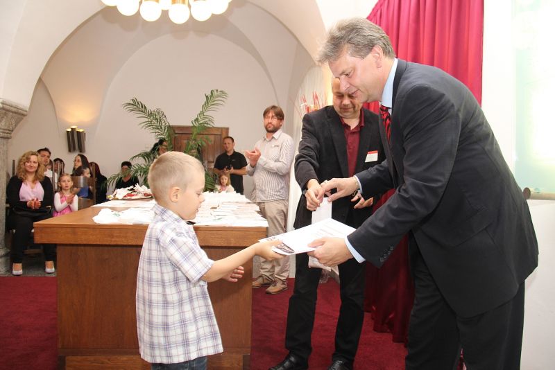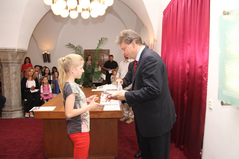 Šestadvacet dětí z více než dvou stovek zúčastněných ve výtvarně-literární soutěži Naše náměstí včera na radnici převzalo z rukou starosty cenu pro vítěze.