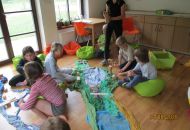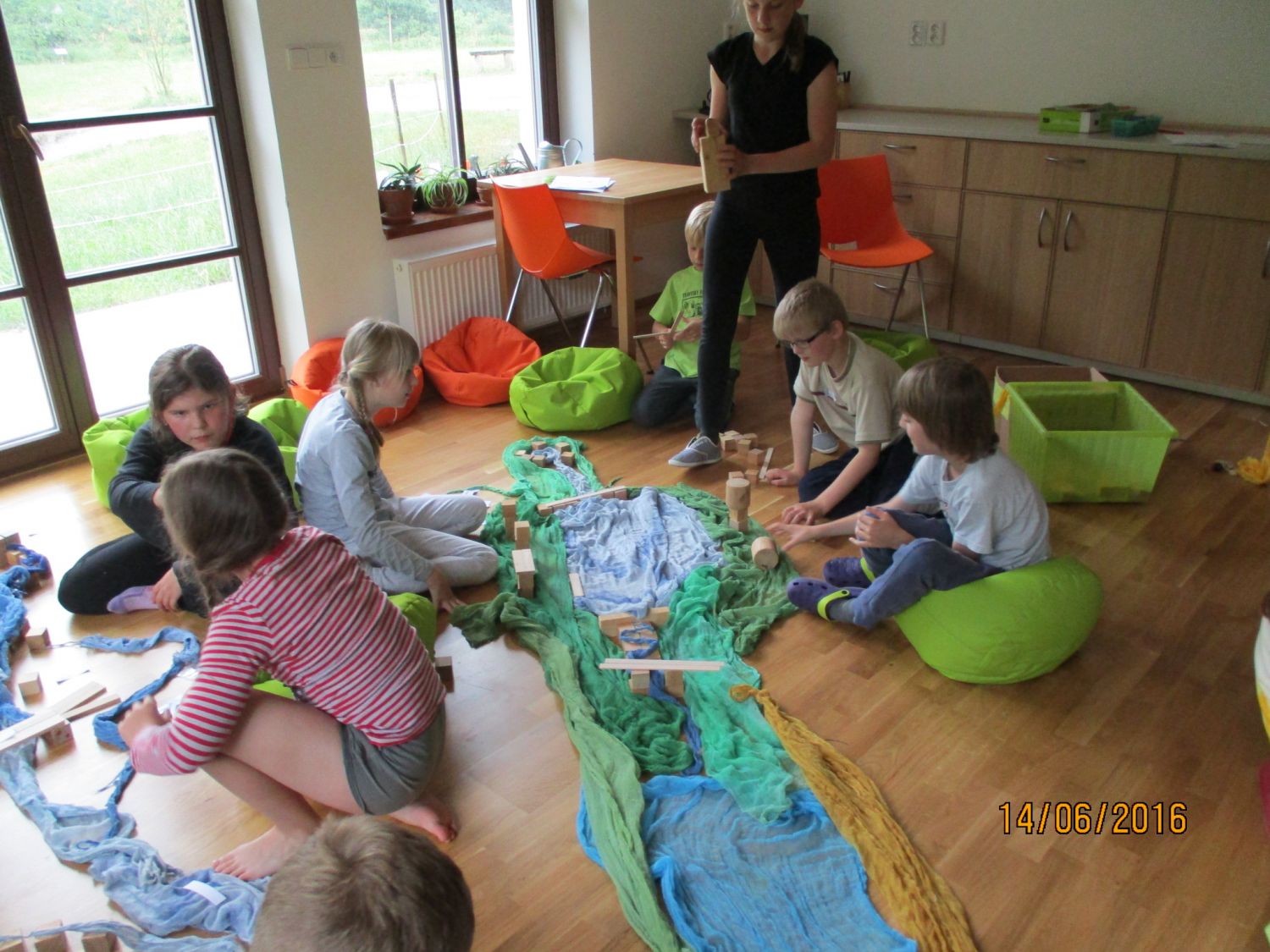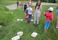 Významná část programu byla věnována terénnímu průzkumu, v němž se srovnávají dva různé vodní ekosystémy z hlediska podmínek pro organizmy a jejich druhového zastoupení. V programu jsme se vydali po stopách potůčku, sami si lovili a určovali živočichy vázané na stojaté i tekoucí vody. Stali jsme se autory vlastního příběhu vodního živočicha. Získali jsme přehled o měnícím se vodním prostředí, prozkoumali působení člověka na vodu v krajině, na modelu vodního toku určovali záplavová území, rozlišovali mezi přirozeným a regulovaným vodním tokem, zabývali se základními otázkami povodňové prevence. Už umíme vyrobit energii pomocí vody, prakticky jsme si některé možnosti vyzkoušeli a sílu vody zkoumali na modelech říčních koryt. Program byl doplněn prací s fotoaparátem a stmelovacími týmovými hrami.