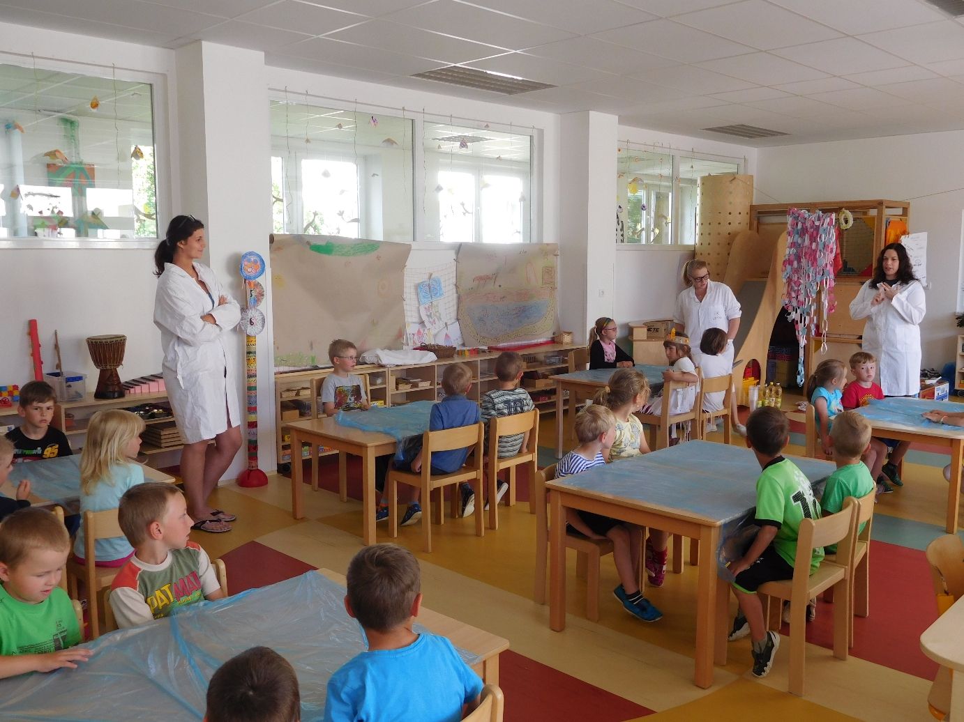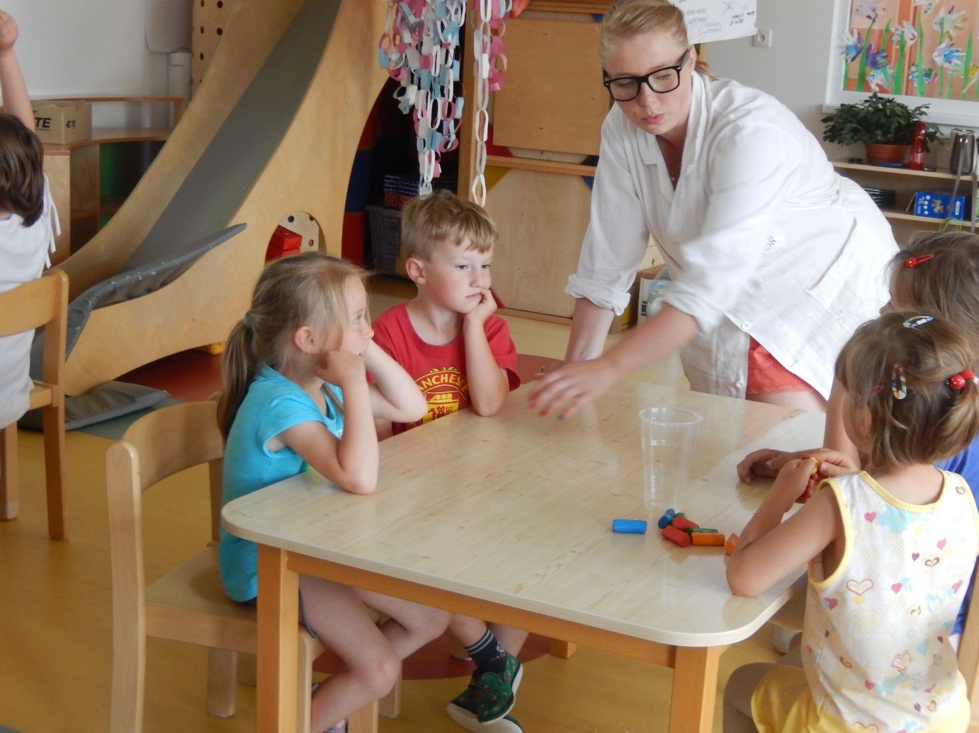 Dopoledne 22. června zavítaly do křižanovské školky čtyři dámy v bílých pláštích, Markéta Červková, Veronika Stodolová, Veronika Beličková a Kateřina Semerádová, lektorky brněnské pobočky projektu Věda nás baví. Téměř čtyřiceti žáčkům dvou tříd mateřské školy, Žabiček a Motýlků, nenuceně a zábavně přiblížily svět vědy, a to nejinak než pokusy.