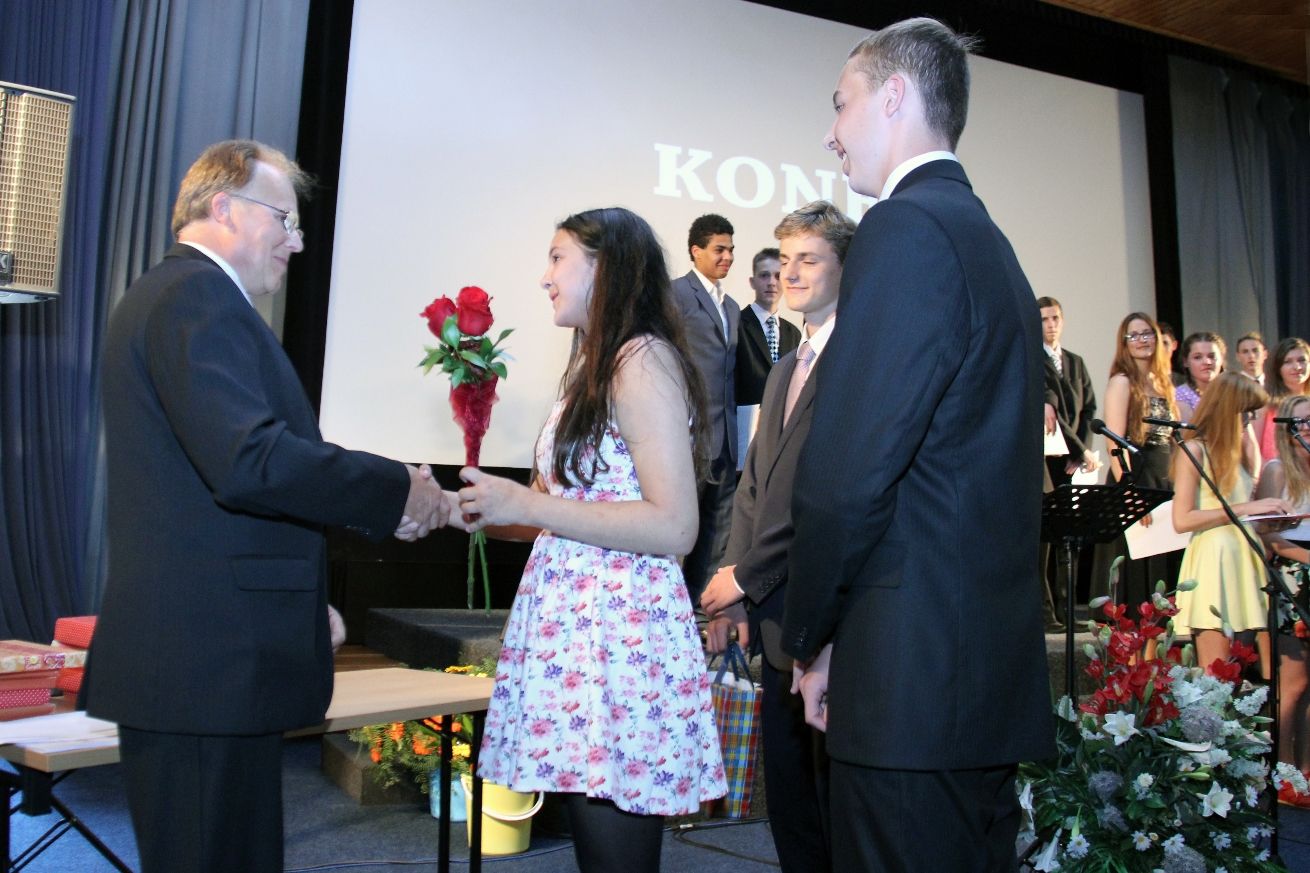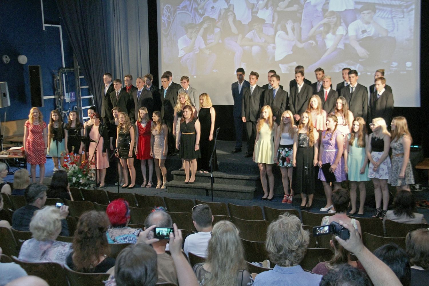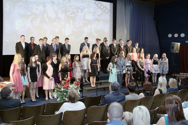 Žáci pak převzali vysvědčení z rukou svých třídních učitelů Josefa Vošmery a Hany Beranové. Poděkovali svým vyučujícím, předvedli připravené prezentace svých tříd a zazpívali.
