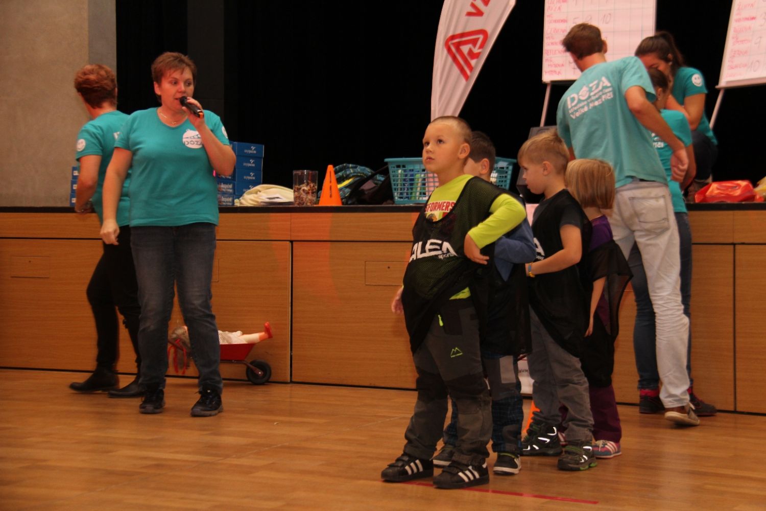 Včera se do velkého sálu Jupiter clubu dostavila soutěžní družstva dětí z mateřských škol na Den bez bolístek. Plnily různé úkoly, například hledaly v labyrintu lékárničku pro zraněného kamaráda, musely zvládnout bez chyb test bezpečnosti či třeba převézt v kotouči zraněného kamaráda slalomovou dráhou.
