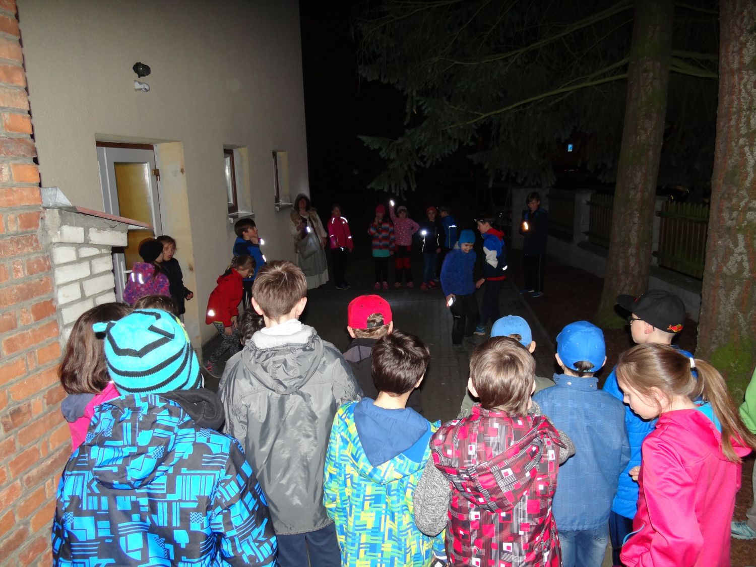 A honem k Moráňskému hřbitovu. Už z dálky byl viděn krejčík, který tam dle pověsti uvízl v bráně. Než jsme ale dorazili blíž, byl pryč. Po jednom projít pěšinkou mezi náhrobky a ještě najít pod nohama čamrdu, byla díky tomu poněkud strašidelná výzva. Ale zvládli to všichni a za chvíli už hráli s těmi nalezenými knoflíky u knihovny čáru. Před půlnocí došlo ještě na kvíz nazvaný: Jak se na Velkomeziříčsku kdysi pečovávalo o děti. Kolem půlnoci do spacáků čekajících ve výstavním sále a internetové studovně. Ráno nasnídat, umýt, sbalit a hybaj domů.