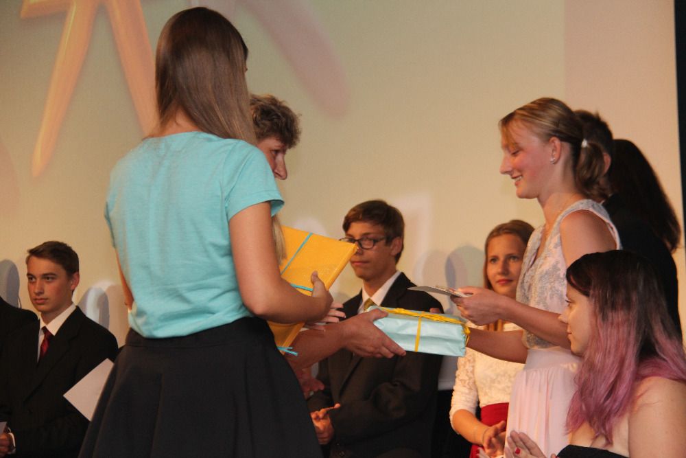 Třicet sedm letošních deváťáků se přišlo 28. června do Jupiter clubu rozloučit se svými kantory. Poděkovali především oběma třídním učitelkám, RNDr. Radomíře Kučerové a Mgr. Marii Smutkové, za nekonečnou trpělivost a za to, že za nimi vždy stály a věřily jim.