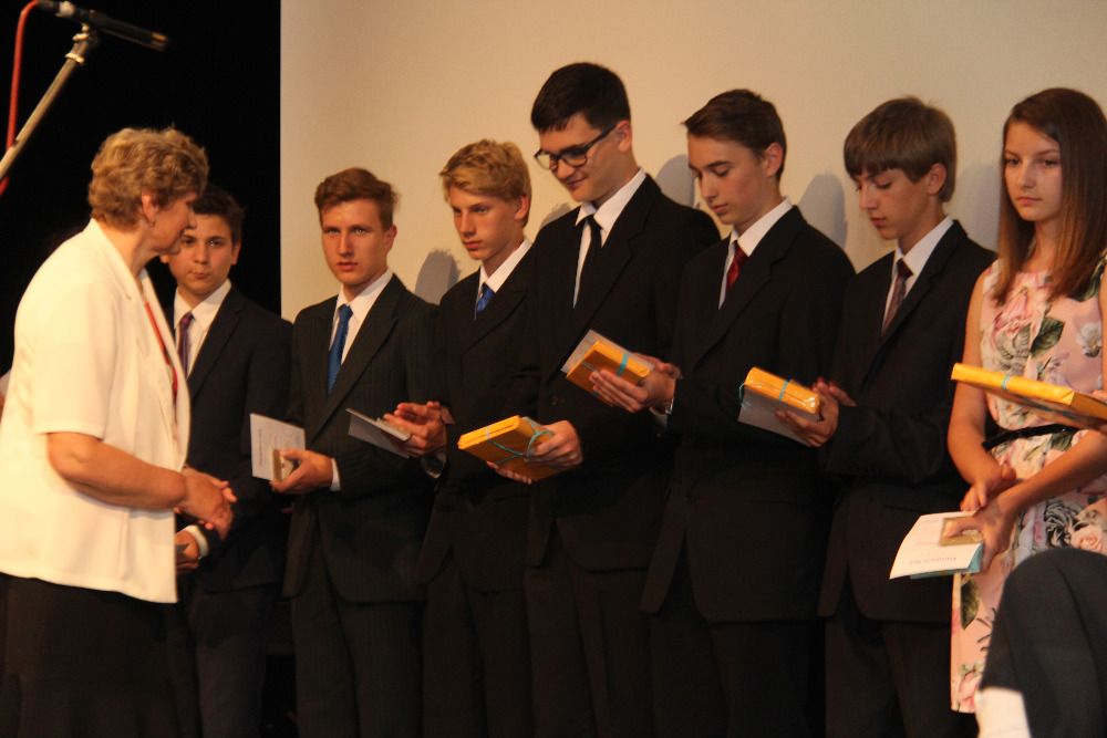 V připraveném programu představili rodinám i kantorům v krátkých prezentacích úsměvné momentky z jejich života na škole a nastínili své budoucí směřování. Nechyběly ani písně na rozloučenou.