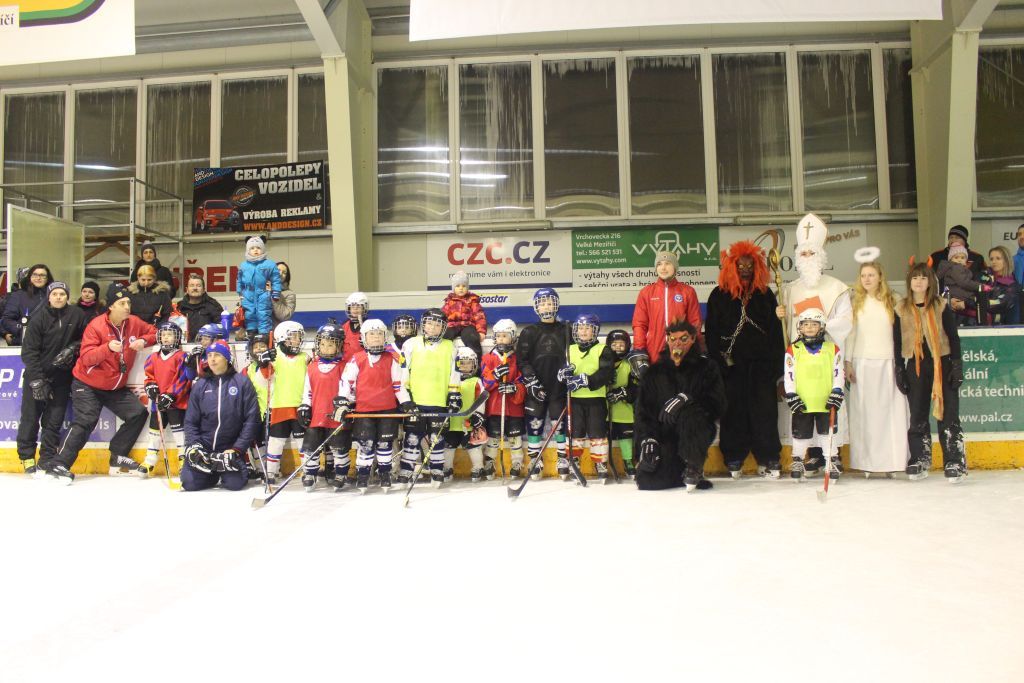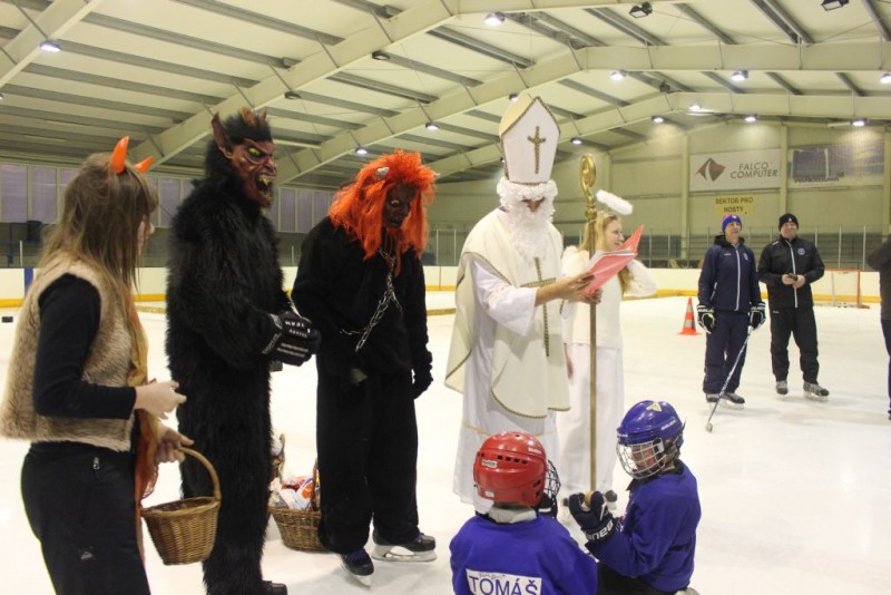 Na ledě se odehrálo vše, co k takové návštěvě patří... odnesení zlobivých hráčů do pekla, sliby neposlušných i předání sladkých odměn nejen dětem. Pokud by se i vaše dítě chtělo naučit hrát hokej a přitom se zapojit do podobných radovánek, nábory probíhají celou sezonu vždy v úterý a ve čtvrtek od 15:30 na místním zimním stadionu.